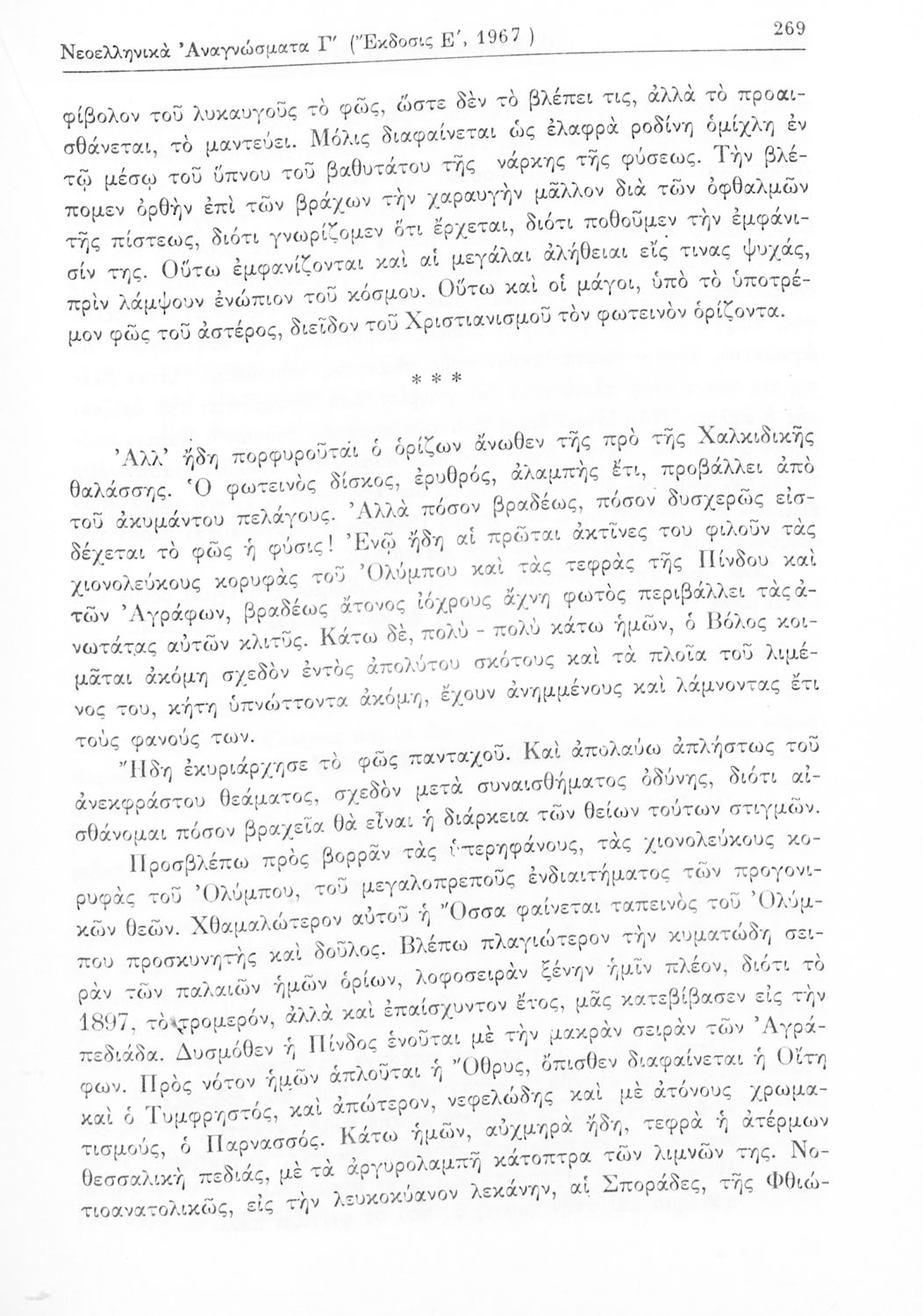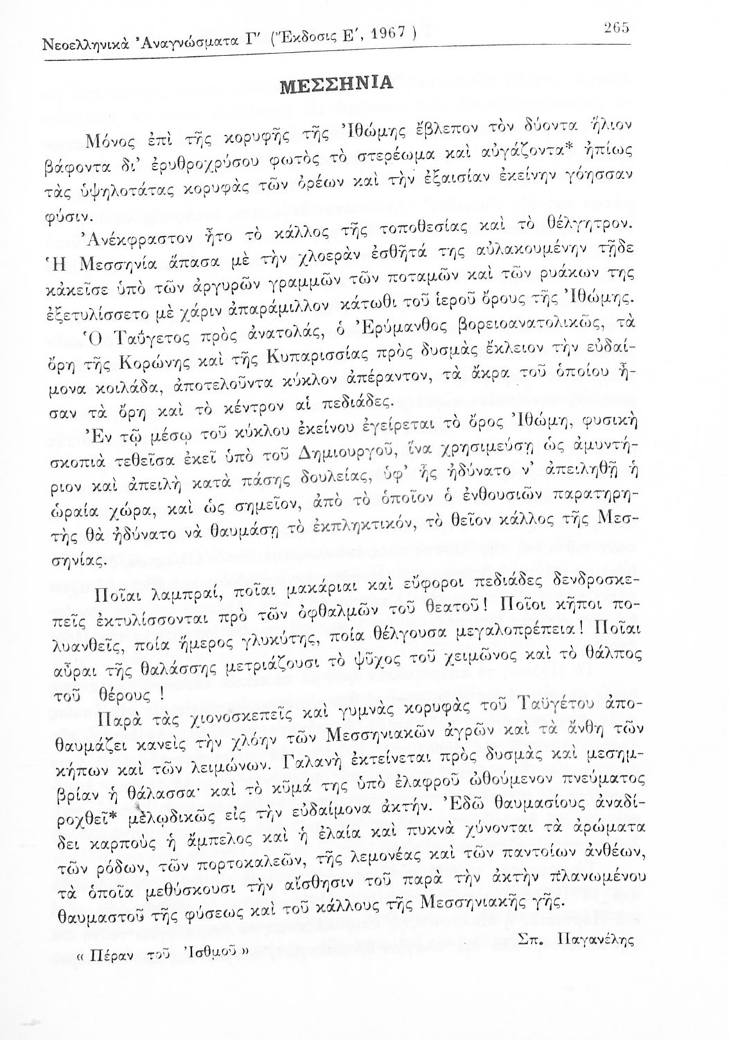 Σχολικό εγχειρίδιο Νέων Ελληνικών Γ΄ Γυμνασίου και Α' Αστικού Σχολείου που περιέχει πεζά και ποιήματα Ελλήνων συγγραφέων εμπνευσμένα από τη θρησκευτική και κοινωνική ζωή, την ελληνική μυθολογία, την αρχαία και