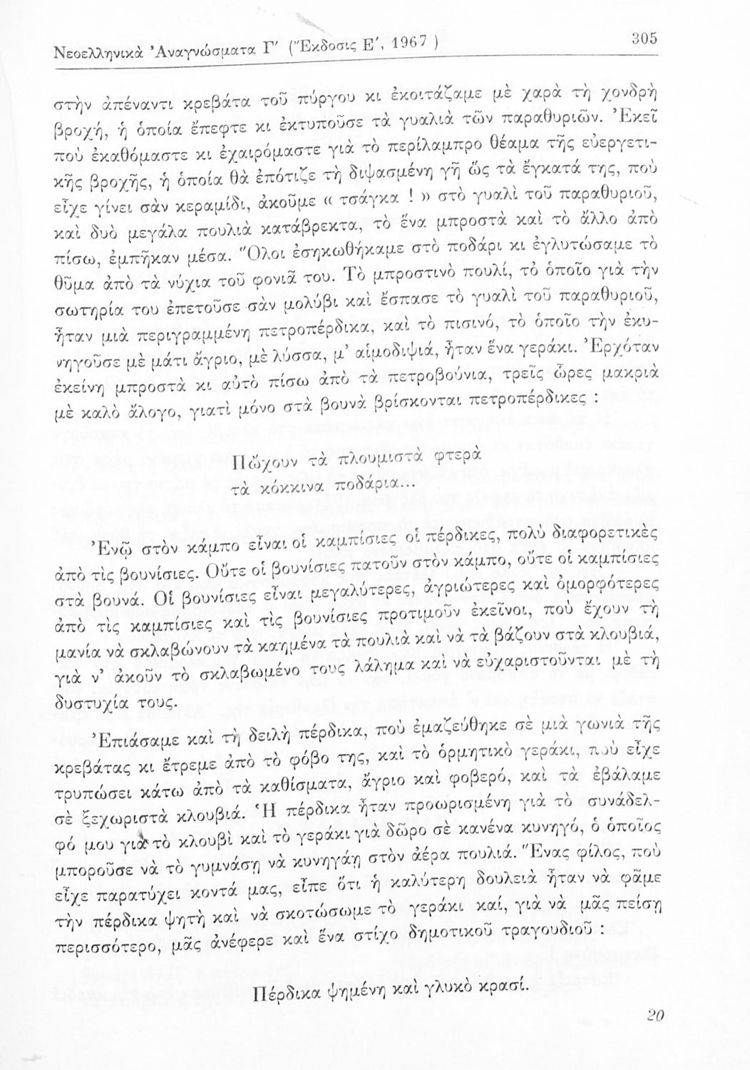 Σχολικό εγχειρίδιο Νέων Ελληνικών Γ' Γυμνασίου που περιέχει ποιήματα και πεζά Ελλήνων συγγραφέων εμπνευσμένα από τη θρησκευτική, οικογενειακή και κοινωνική ζωή, την σύγχρονή ελληνική ιστορία και την ελληνική φύση. Περιέχει παράρτημα με βιογραφίες των συγγραφέων και λεξιλόγιο.