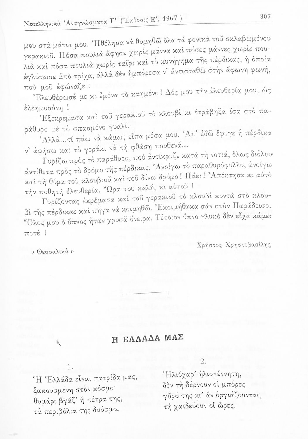 Σχολικό εγχειρίδιο Νέων Ελληνικών Γ΄ Γυμνασίου που περιέχει ποιήματα και πεζά Ελλήνων συγγραφέων εμπνευσμένα από τη θρησκευτική, οικογενειακή και κοινωνική ζωή, την σύγχρονή ελληνική ιστορία και την ελληνική ...