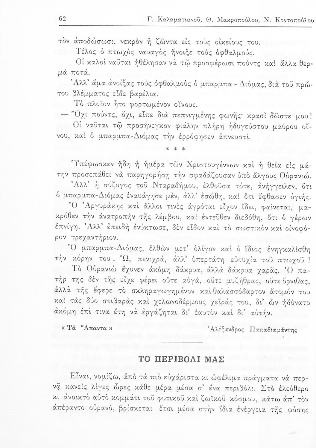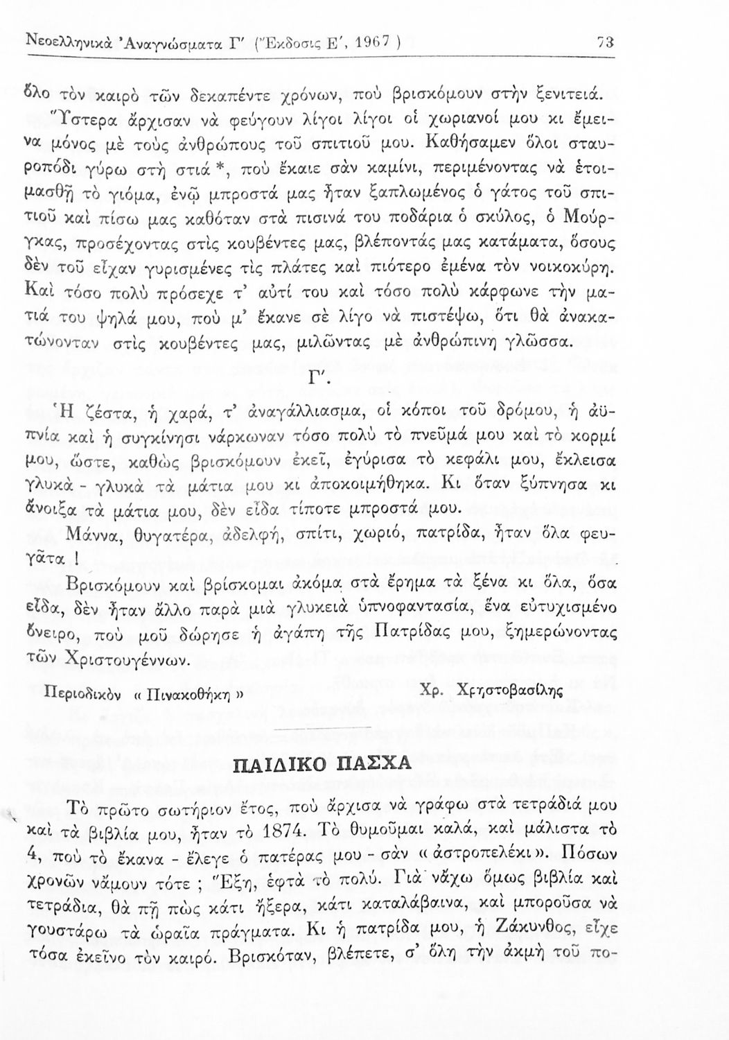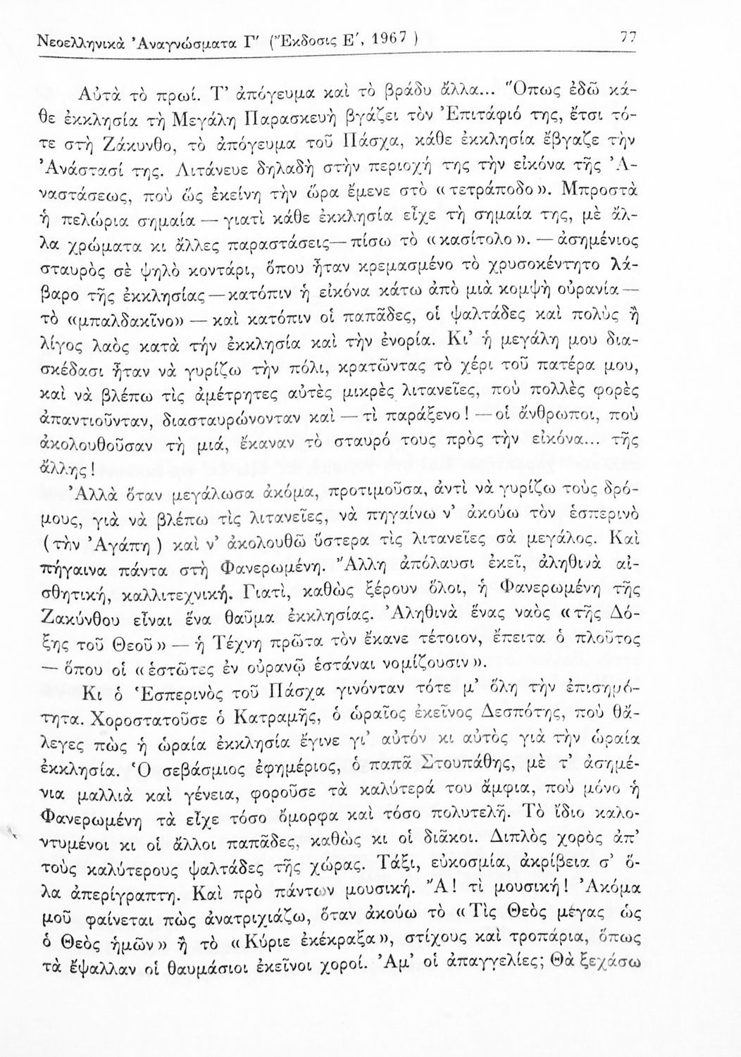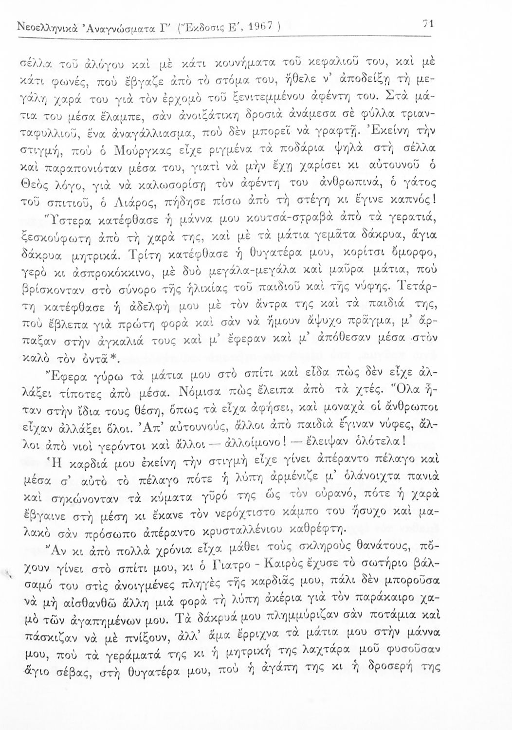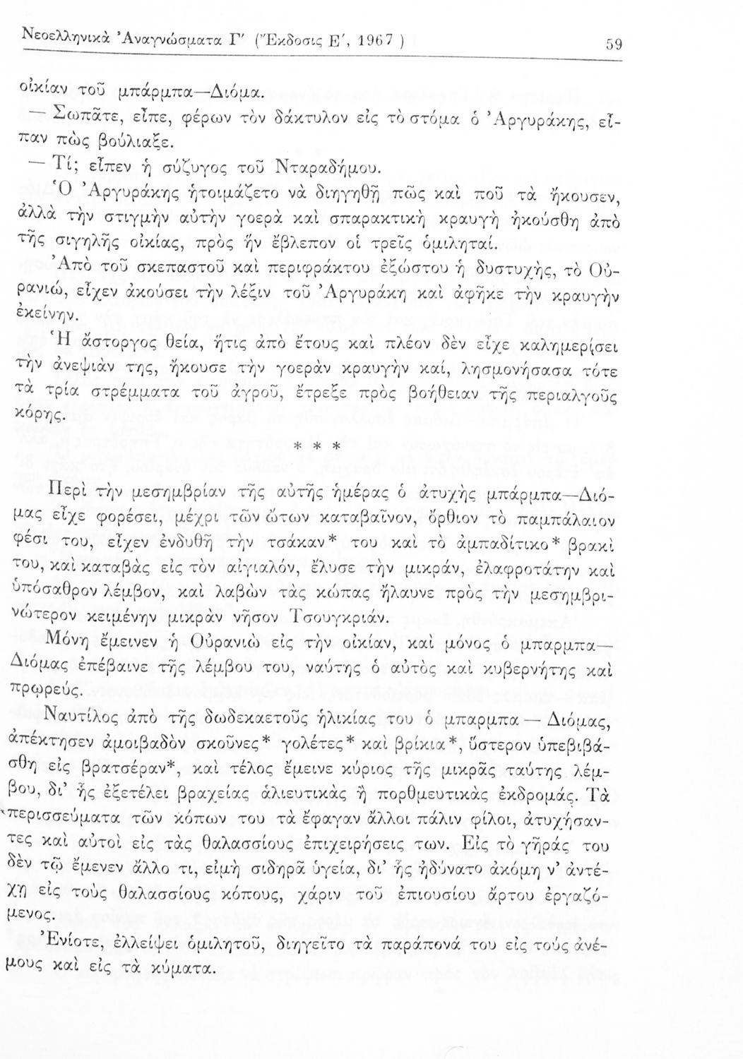 Σχολικό εγχειρίδιο Νέων Ελληνικών Γ' Γυμνασίου που περιέχει ποιήματα και πεζά Ελλήνων συγγραφέων εμπνευσμένα από τη θρησκευτική, οικογενειακή και κοινωνική ζωή, την σύγχρονή ελληνική ιστορία και την ελληνική φύση. Περιέχει παράρτημα με βιογραφίες των συγγραφέων και λεξιλόγιο.