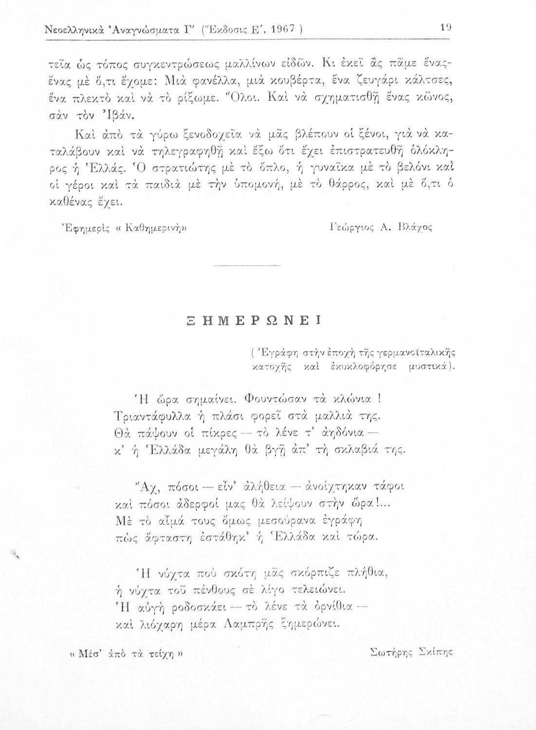 Σχολικό εγχειρίδιο Νέων Ελληνικών Γ΄ Γυμνασίου που περιέχει ποιήματα και πεζά Ελλήνων συγγραφέων εμπνευσμένα από τη θρησκευτική, οικογενειακή και κοινωνική ζωή, την σύγχρονή ελληνική ιστορία και την ελληνική ...