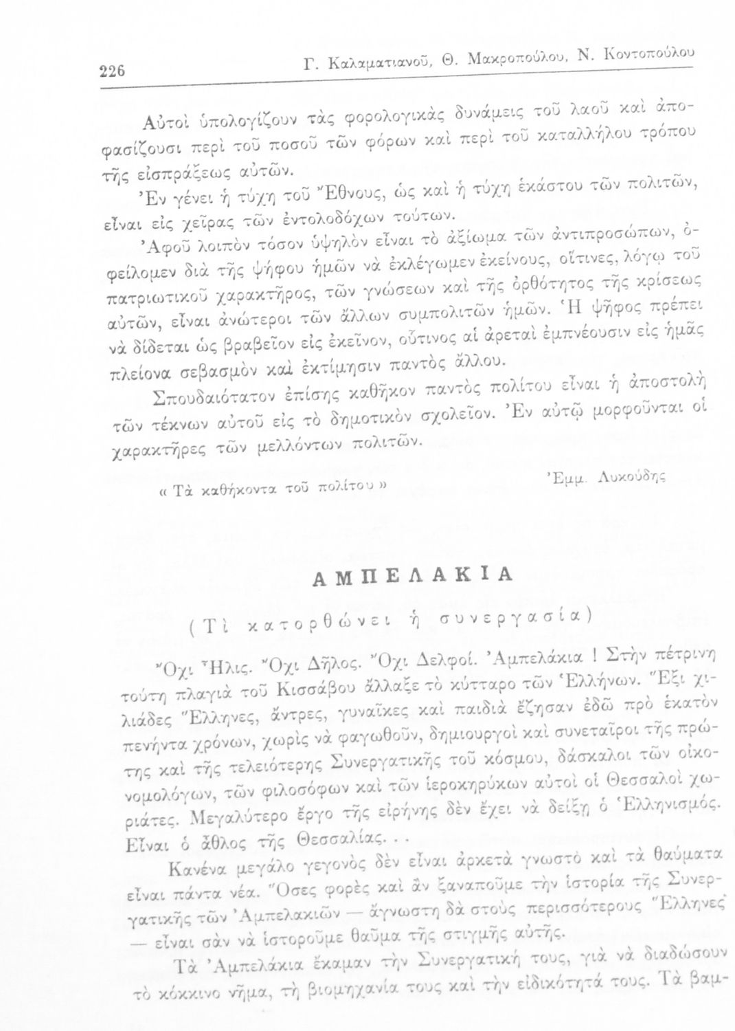 Συγγραφέας: Γ. Καλαματιανός, Θ. Μακρόπουλος, Ν. Κοντόπουλος