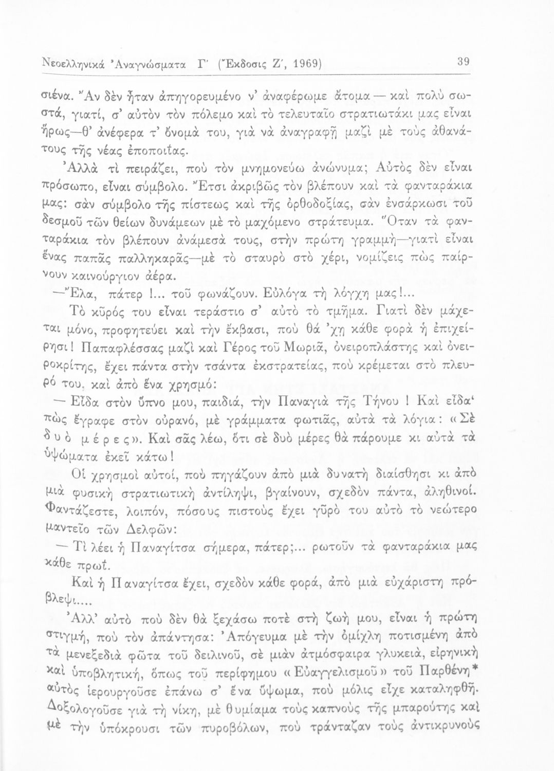Σχολικό εγχειρίδιο Νέων Ελληνικών Γ΄ Γυμνασίου και Α' Αστικού Σχολείου που περιέχει πεζά και ποιήματα Ελλήνων συγγραφέων εμπνευσμένα από τη θρησκευτική και κοινωνική ζωή, την ελληνική μυθολογία, την αρχαία και