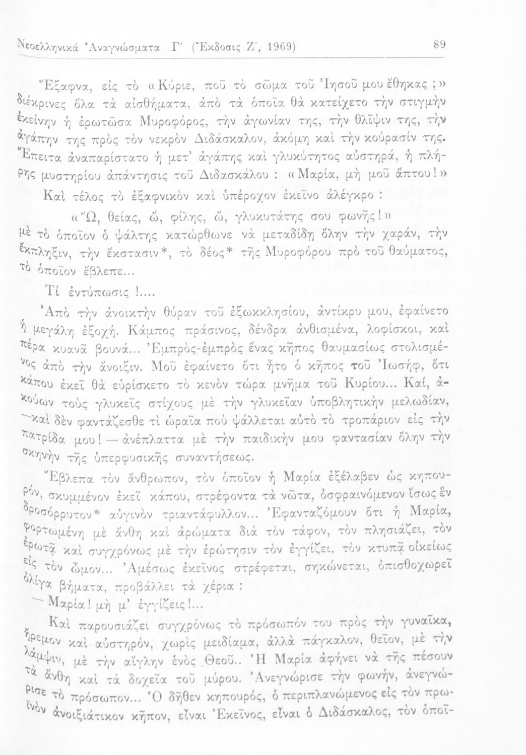 Σχολικό εγχειρίδιο Νέων Ελληνικών Γ΄ Γυμνασίου και Α' Αστικού Σχολείου που περιέχει πεζά και ποιήματα Ελλήνων συγγραφέων εμπνευσμένα από τη θρησκευτική και κοινωνική ζωή, την ελληνική μυθολογία, την αρχαία και