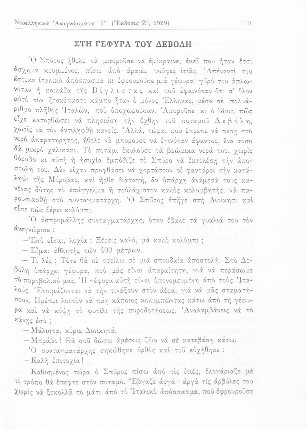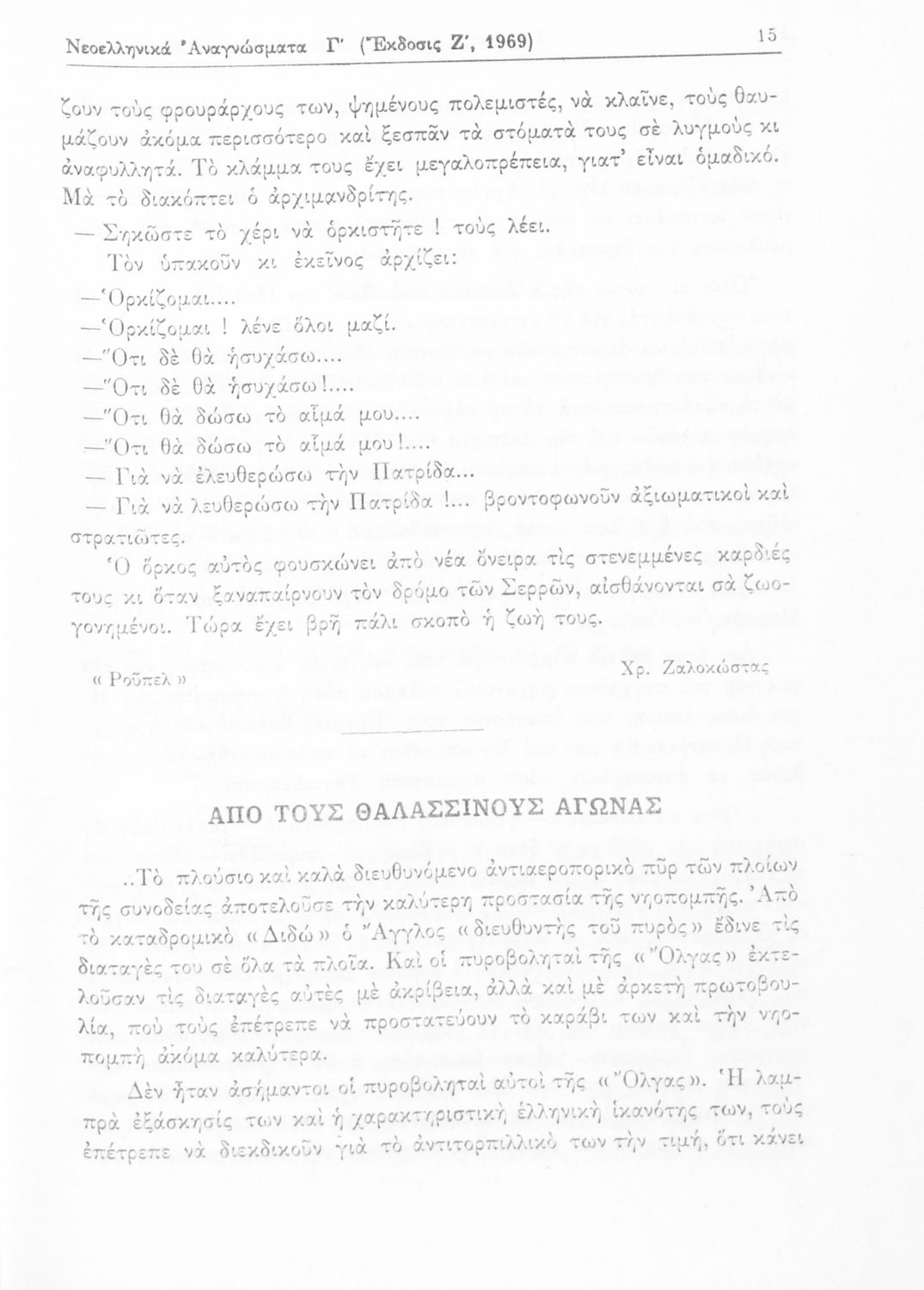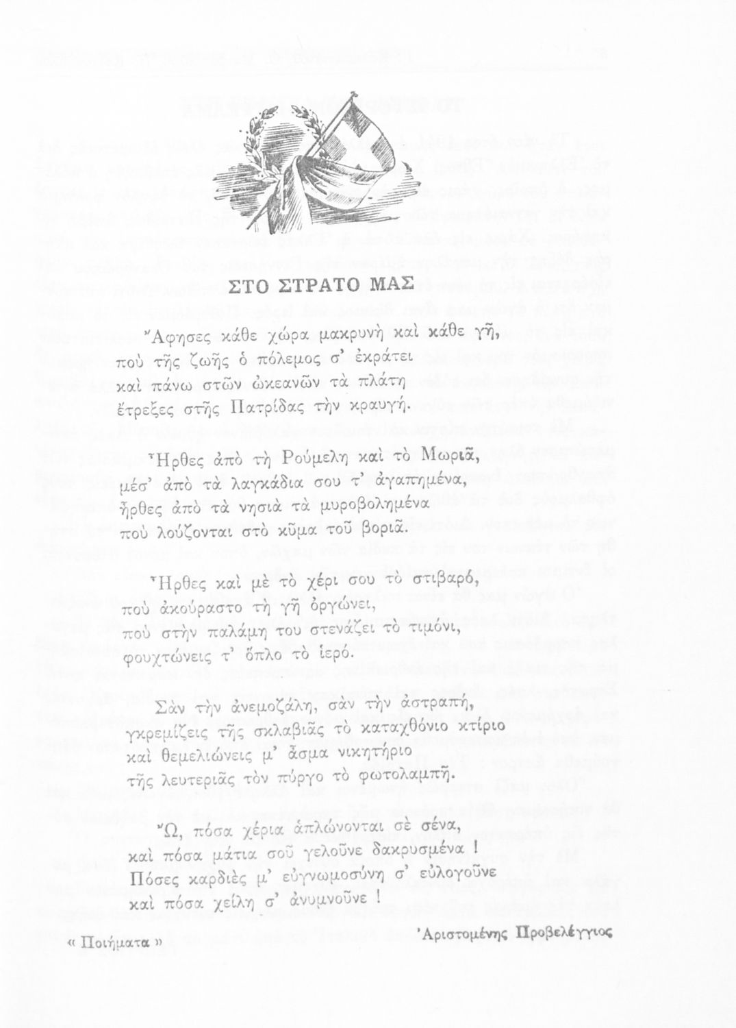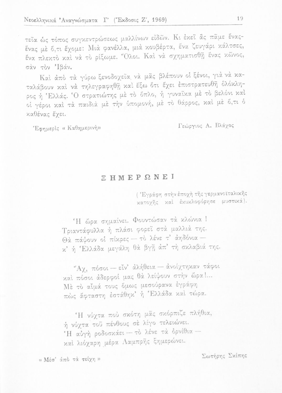 Σχολικό εγχειρίδιο Νέων Ελληνικών Γ΄ Γυμνασίου που περιέχει ποιήματα και πεζά Ελλήνων συγγραφέων εμπνευσμένα από τη θρησκευτική, οικογενειακή και κοινωνική ζωή, την σύγχρονή ελληνική ιστορία και την ελληνική φύση. Περιέχει παράρτημα με βιογραφίες των συγγραφέων και λεξιλόγιο. Φέρει το σύμβολο της δικτατορίας.