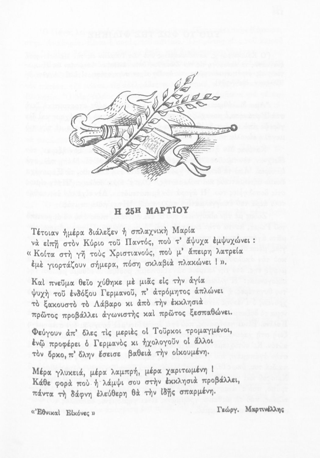 Σχολικό εγχειρίδιο Νέων Ελληνικών Γ΄ Γυμνασίου και Α' Αστικού Σχολείου που περιέχει πεζά και ποιήματα Ελλήνων συγγραφέων εμπνευσμένα από τη θρησκευτική και κοινωνική ζωή, την ελληνική μυθολογία, την αρχαία και