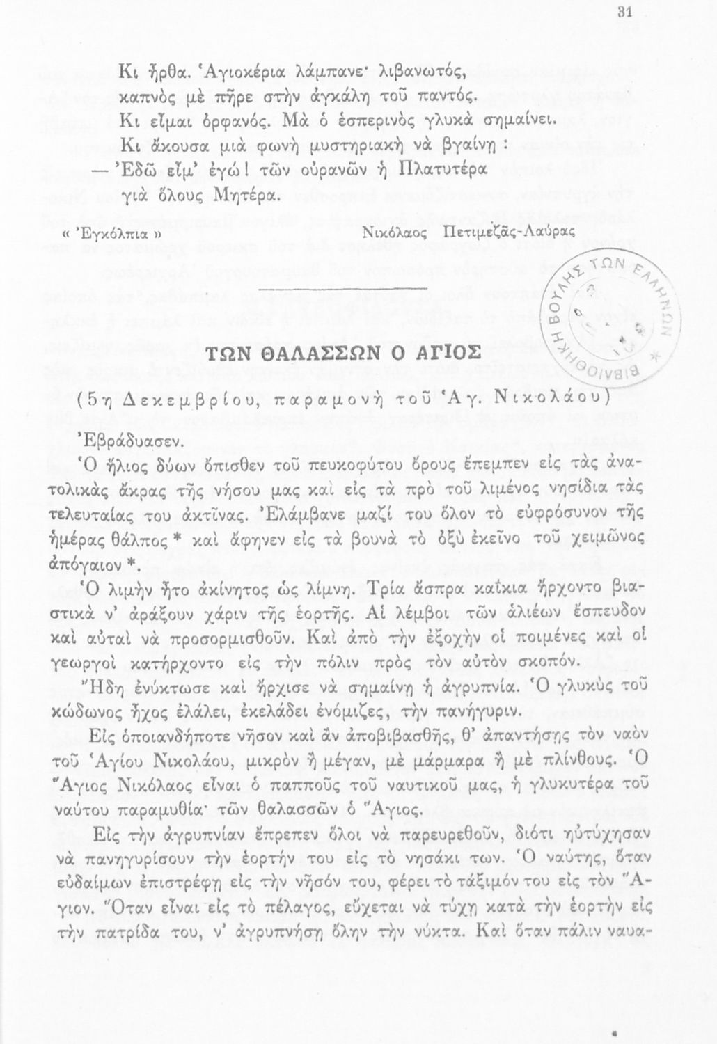 Σχολικό εγχειρίδιο Νέων Ελληνικών Γ΄ Γυμνασίου που περιέχει ποιήματα και πεζά Ελλήνων συγγραφέων εμπνευσμένα από τη θρησκευτική, οικογενειακή και κοινωνική ζωή, την σύγχρονή ελληνική ιστορία και την ελληνική φύση. Περιέχει παράρτημα με βιογραφίες των συγγραφέων και λεξιλόγιο. Φέρει το σύμβολο της δικτατορίας.