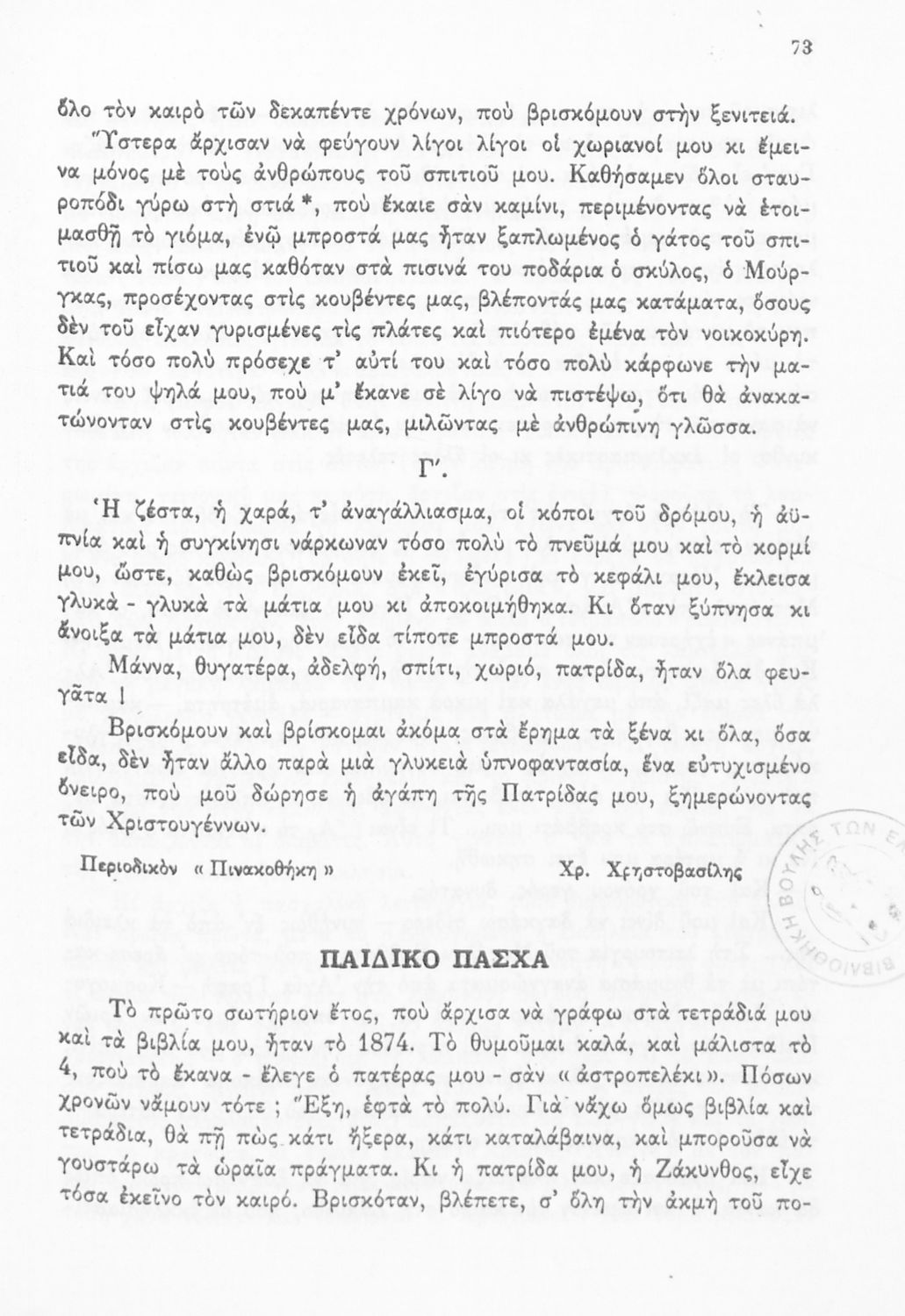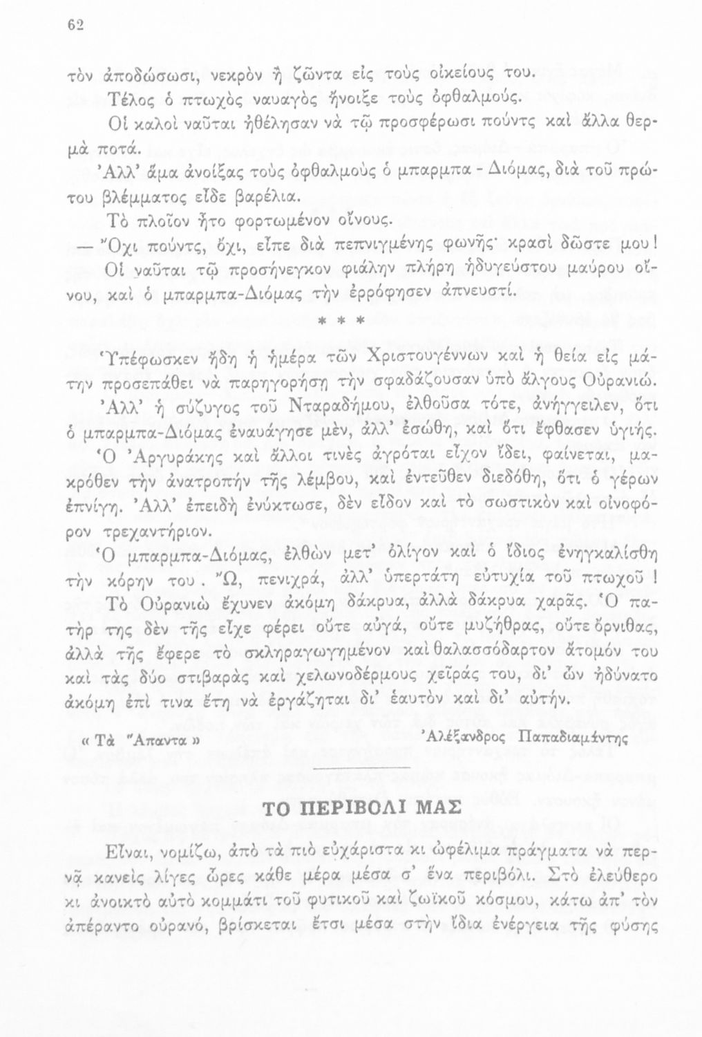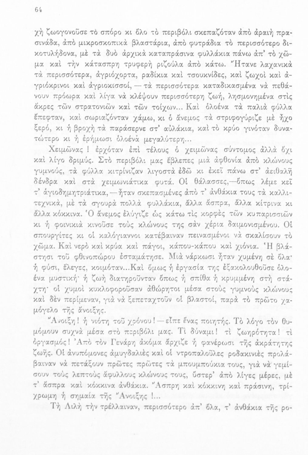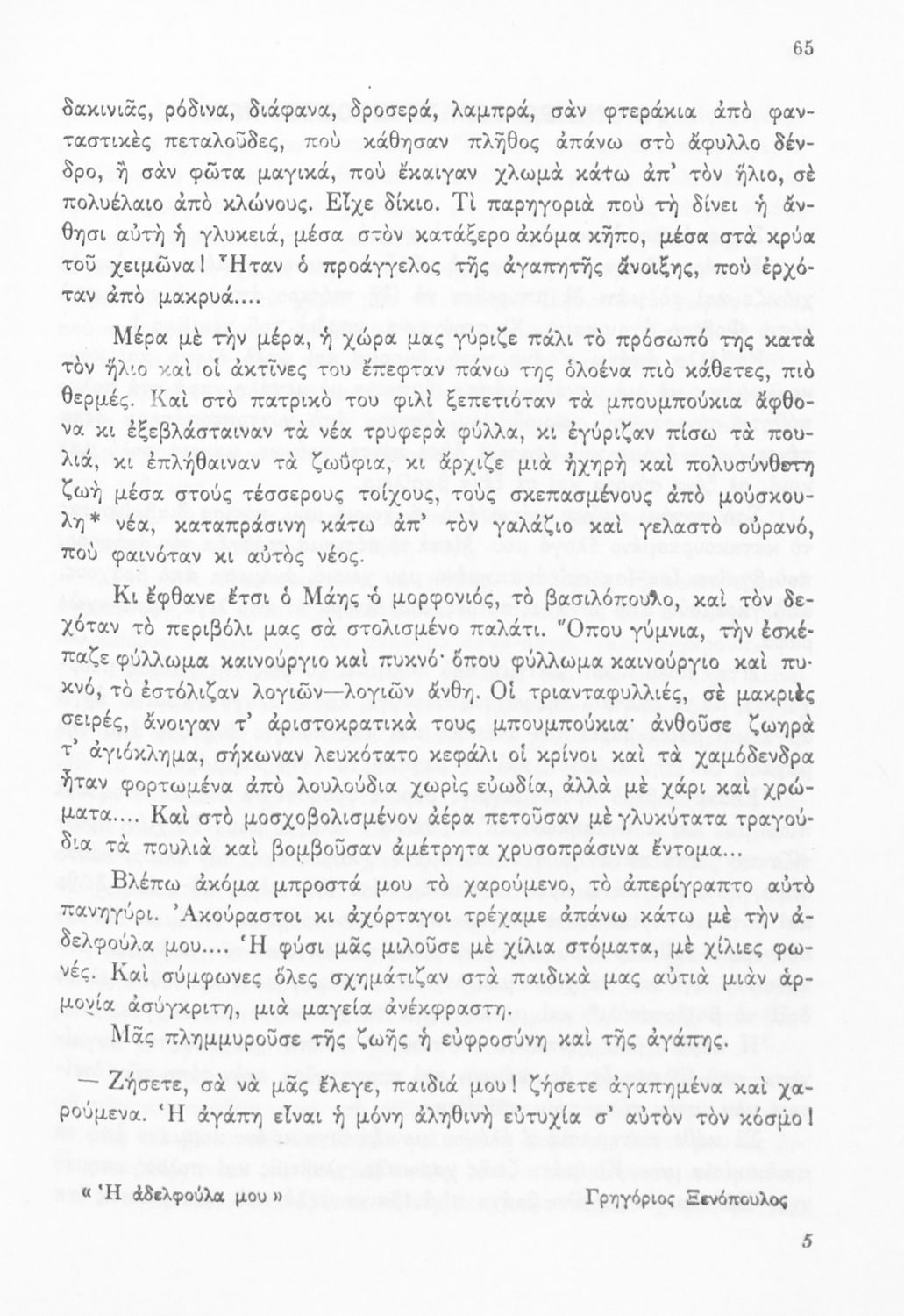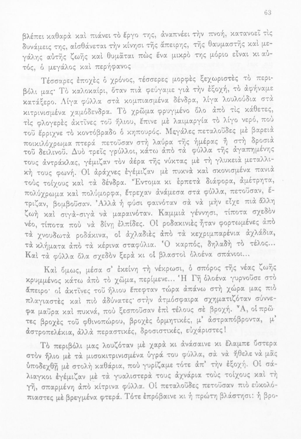 Σχολικό εγχειρίδιο Νέων Ελληνικών Γ΄ Γυμνασίου που περιέχει ποιήματα και πεζά Ελλήνων συγγραφέων εμπνευσμένα από τη θρησκευτική, οικογενειακή και κοινωνική ζωή, την σύγχρονή ελληνική ιστορία και την ελληνική φύση. Περιέχει παράρτημα με βιογραφίες των συγγραφέων και λεξιλόγιο. Φέρει το σύμβολο της δικτατορίας.