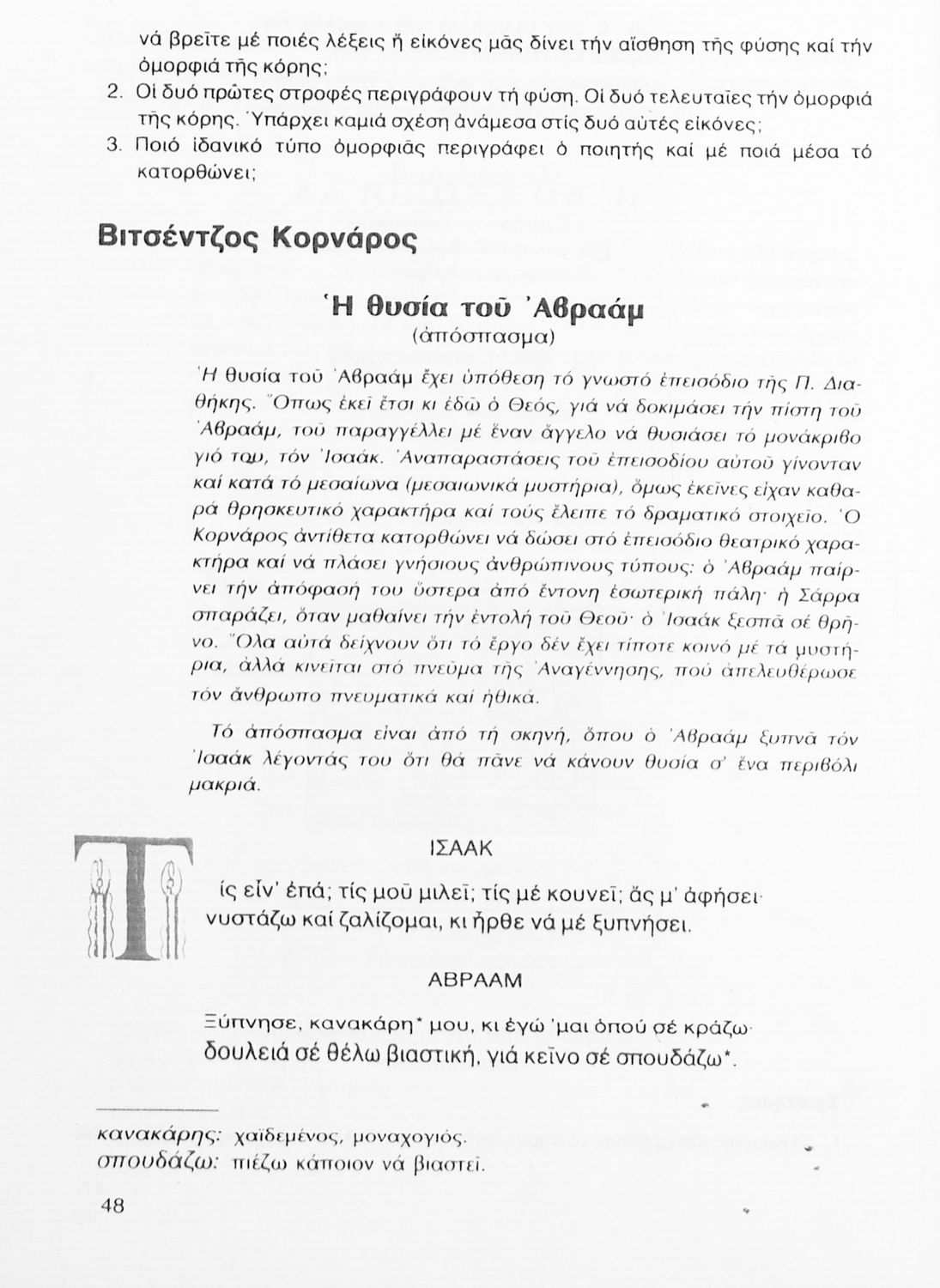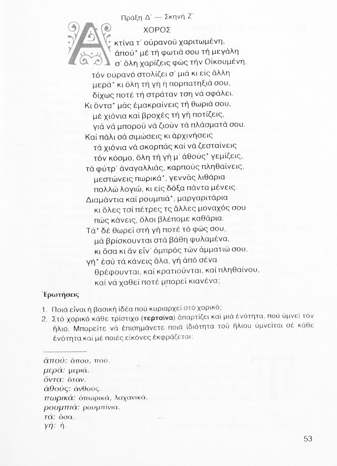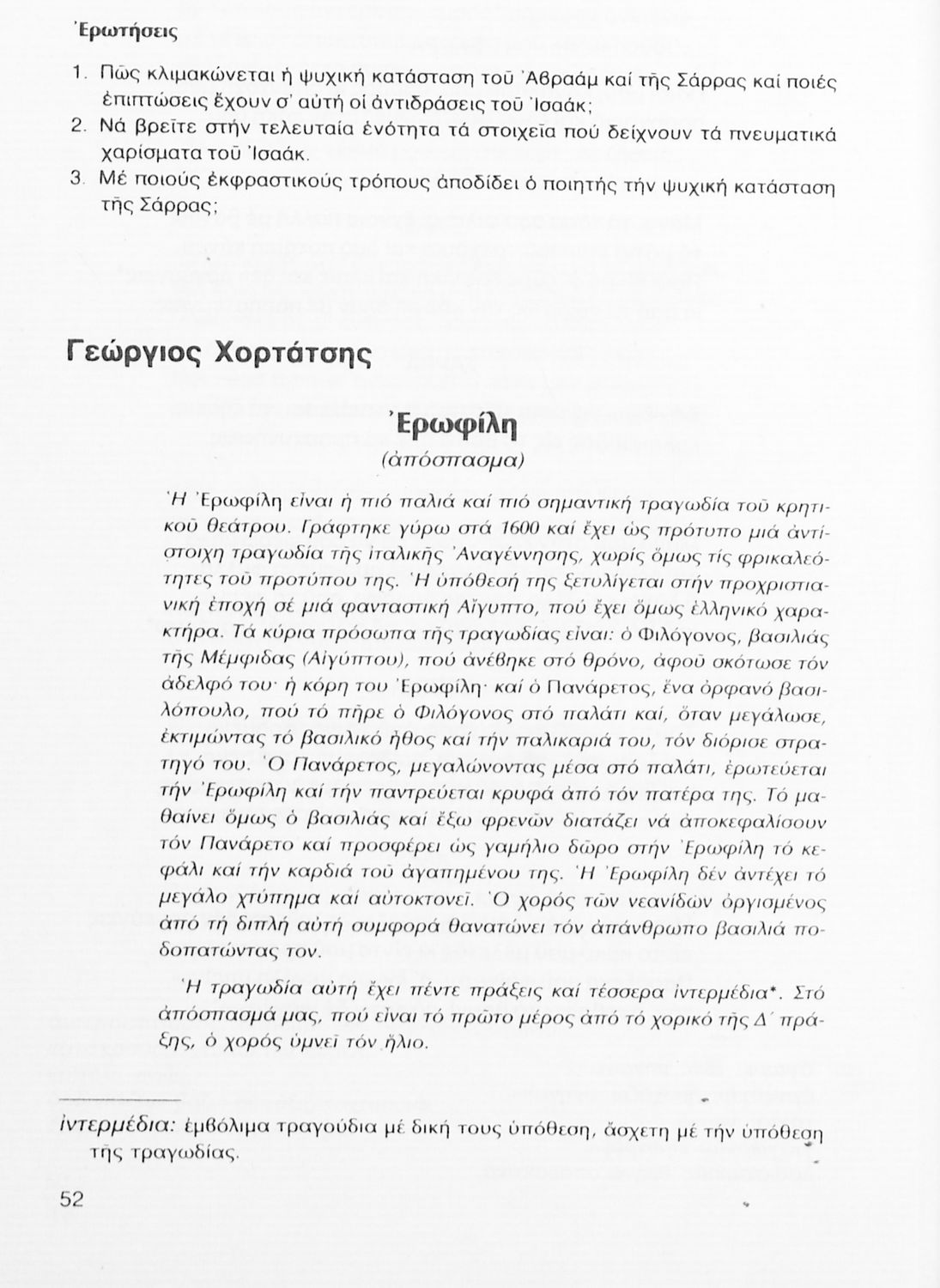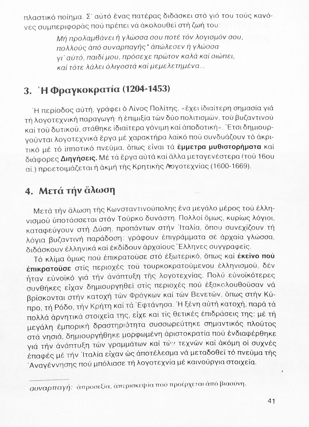Σχολικό εγχειρίδιο Νέων Ελληνικών Γ΄ Γυμνασίου που περιλαμβάνει δημοτικά τραγούδια, και χαρακτηριστικά δείγματα της κρητικής λογοτεχνίας, της επτανησιακής και ρομαντικής σχολής, της Νέας Αθηναϊκής Σχολής και της νεότερης και μεταπολεμικής λογοτεχνίας. Περιέχει και έργα σύγχρονων ξένων συγγραφέων, βιογραφικά και εισαγωγικά σημειώματα.