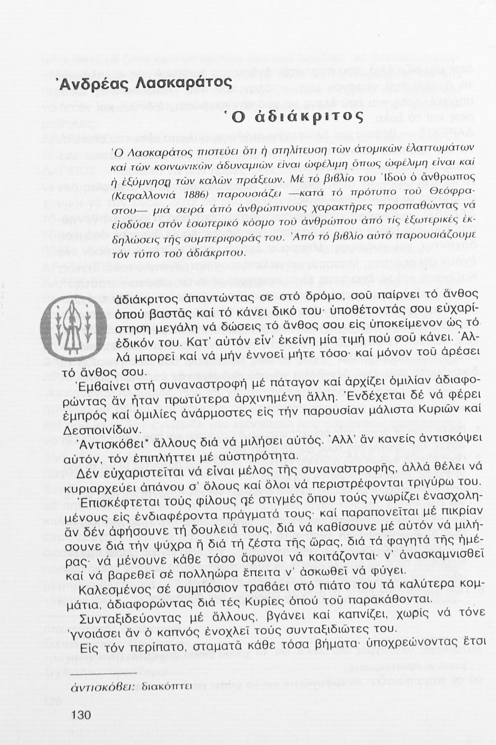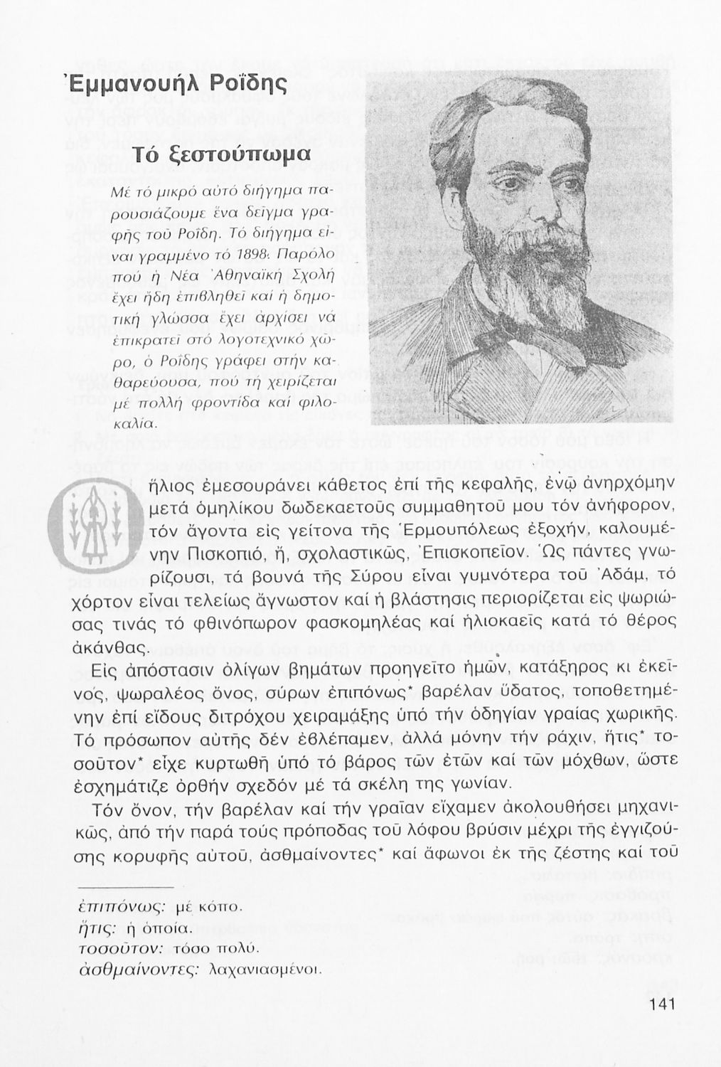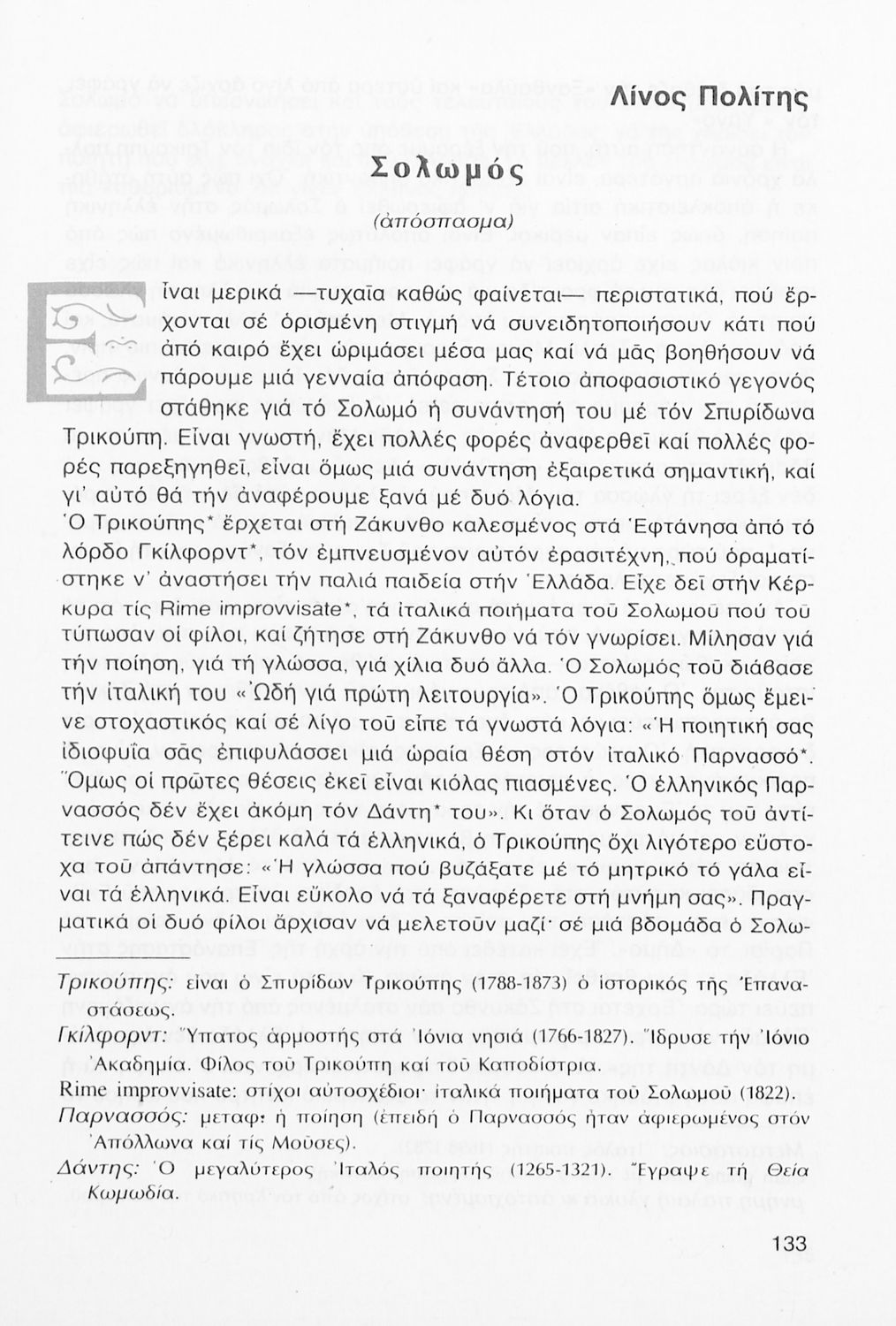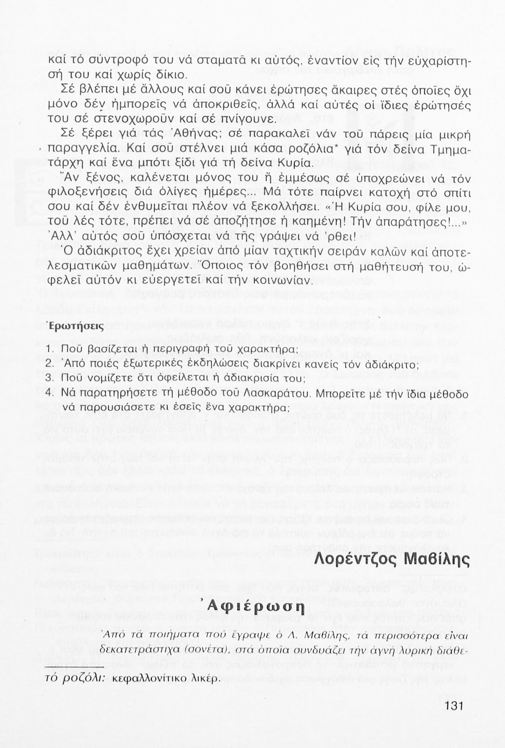 Σχολικό εγχειρίδιο Νέων Ελληνικών Γ΄ Γυμνασίου που περιλαμβάνει δημοτικά τραγούδια, και χαρακτηριστικά δείγματα της κρητικής λογοτεχνίας, της επτανησιακής και ρομαντικής σχολής, της Νέας Αθηναϊκής Σχολής και της νεότερης και μεταπολεμικής λογοτεχνίας. Περιέχει και έργα σύγχρονων ξένων συγγραφέων, βιογραφικά και εισαγωγικά σημειώματα.