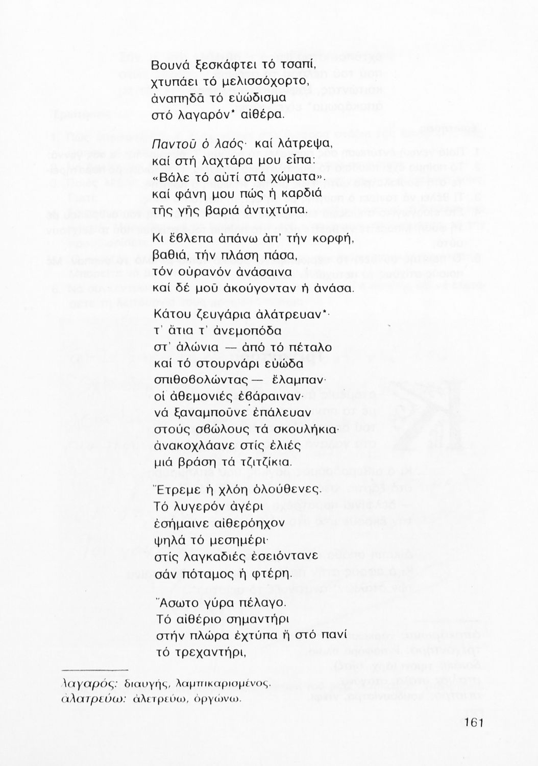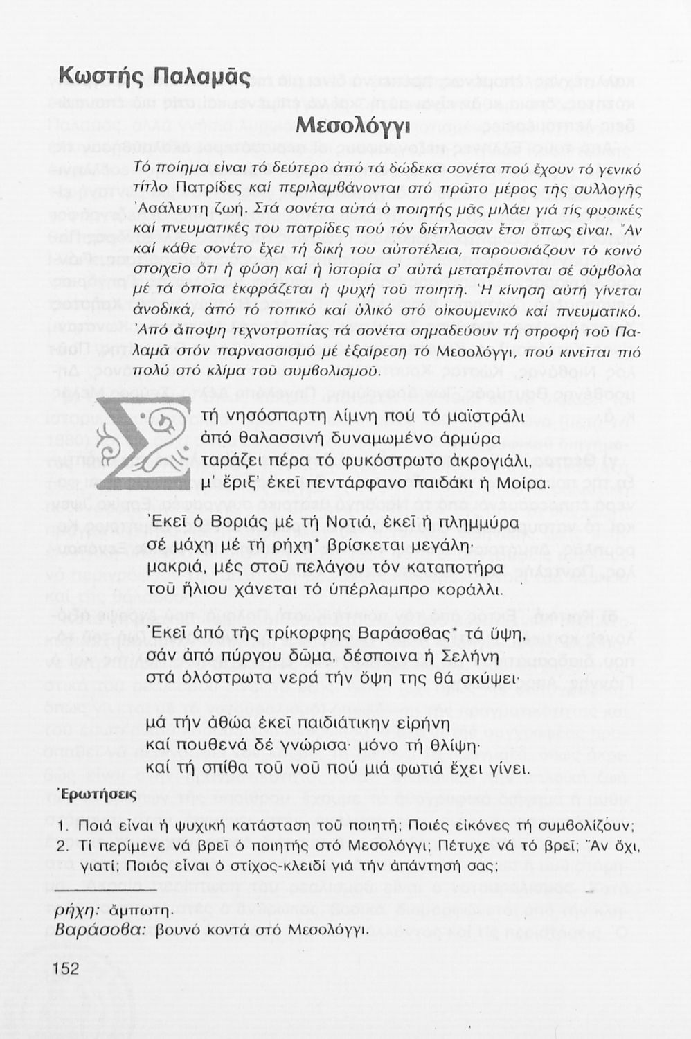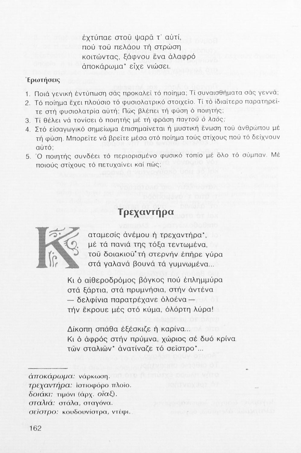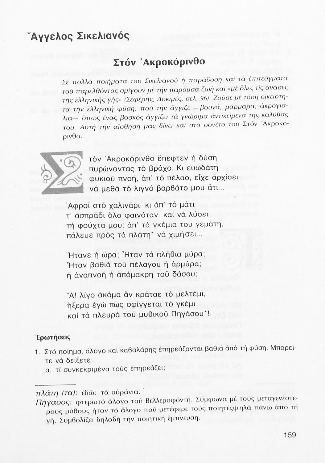 Σχολικό εγχειρίδιο Νέων Ελληνικών Γ΄ Γυμνασίου που περιλαμβάνει δημοτικά τραγούδια, και χαρακτηριστικά δείγματα της κρητικής λογοτεχνίας, της επτανησιακής και ρομαντικής σχολής, της Νέας Αθηναϊκής Σχολής και της νεότερης και μεταπολεμικής λογοτεχνίας. Περιέχει και έργα σύγχρονων ξένων συγγραφέων, βιογραφικά και εισαγωγικά σημειώματα.