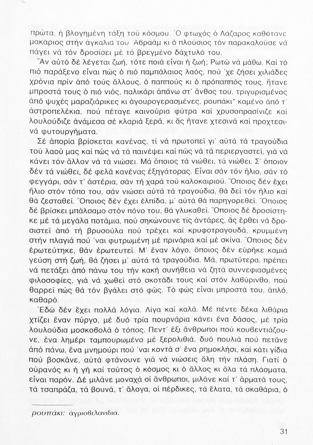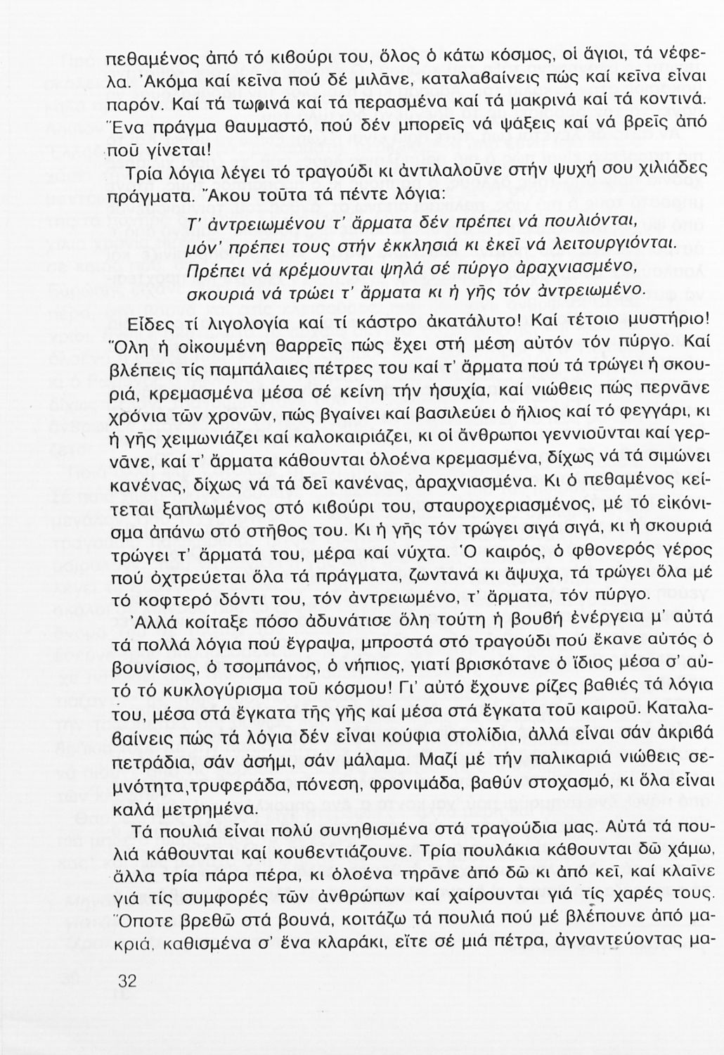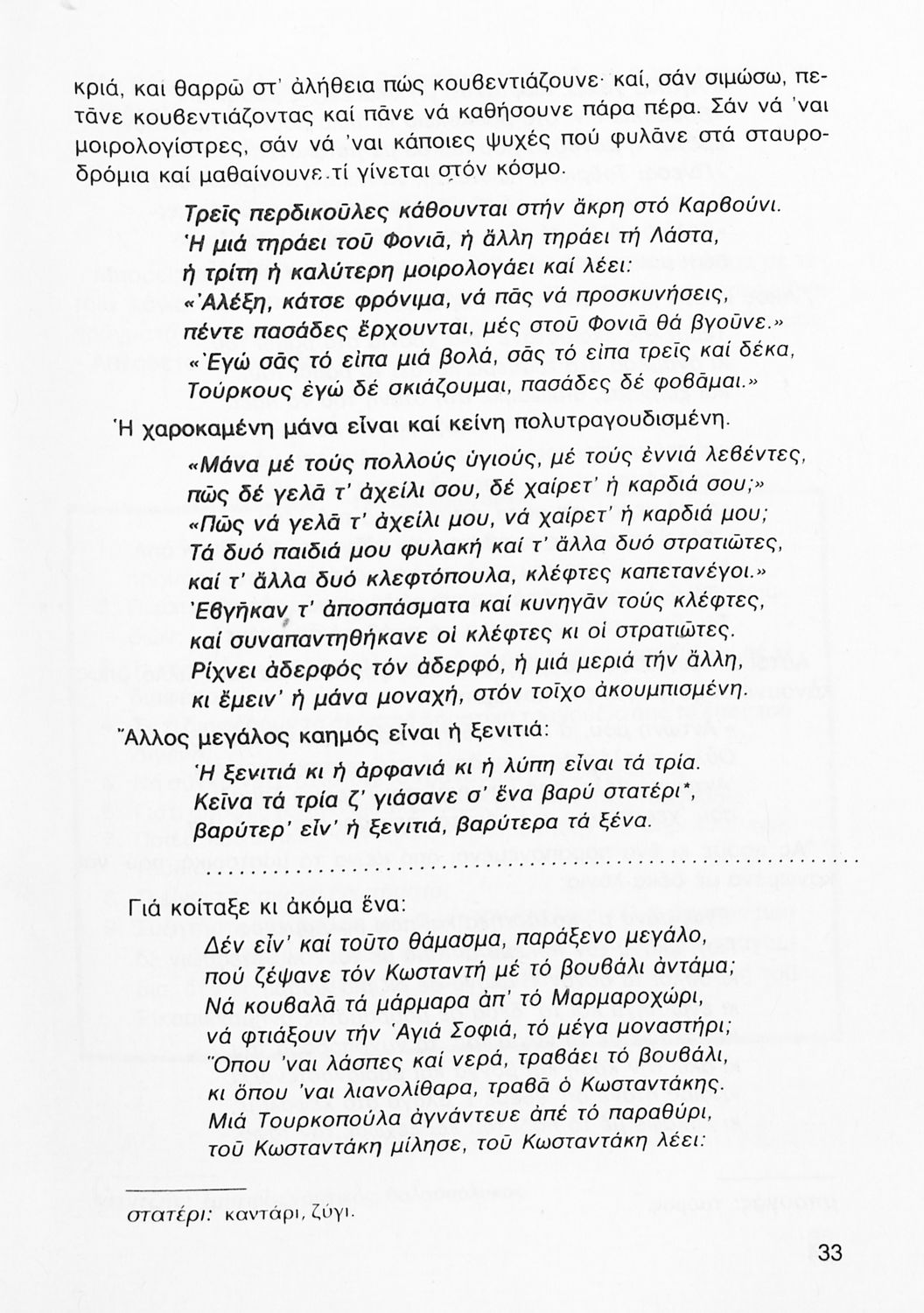 Σχολικό εγχειρίδιο Νέων Ελληνικών Γ΄ Γυμνασίου που περιλαμβάνει δημοτικά τραγούδια, και χαρακτηριστικά δείγματα της κρητικής λογοτεχνίας, της επτανησιακής και ρομαντικής σχολής, της Νέας Αθηναϊκής Σχολής και της νεότερης και μεταπολεμικής λογοτεχνίας. Περιέχει και έργα σύγχρονων ξένων συγγραφέων, βιογραφικά και εισαγωγικά σημειώματα.