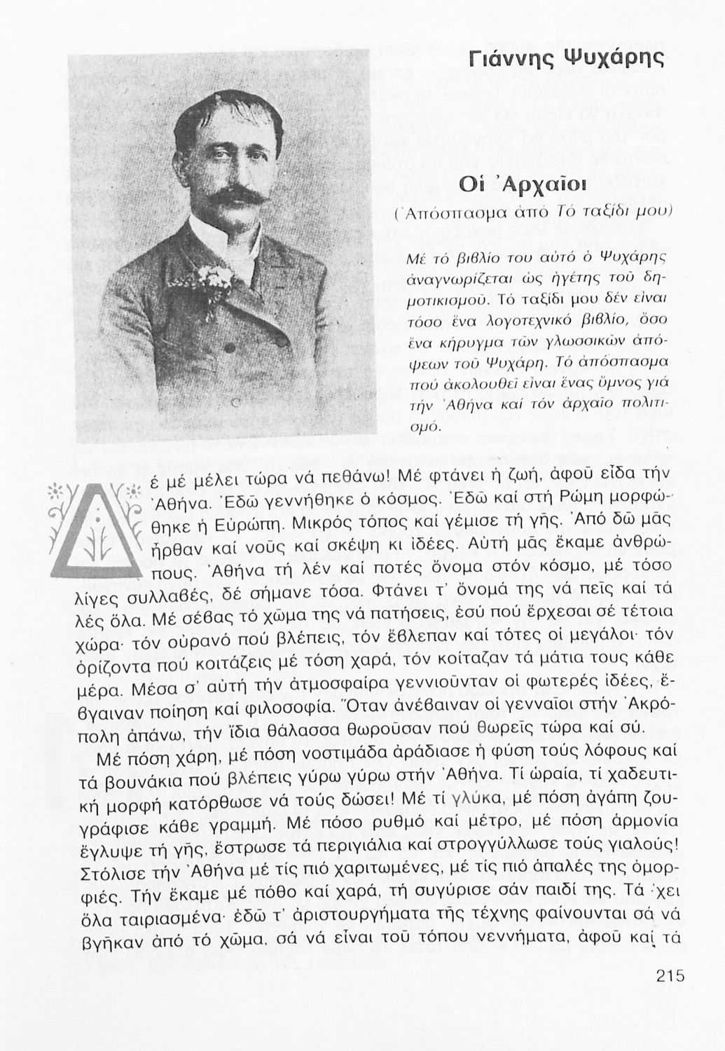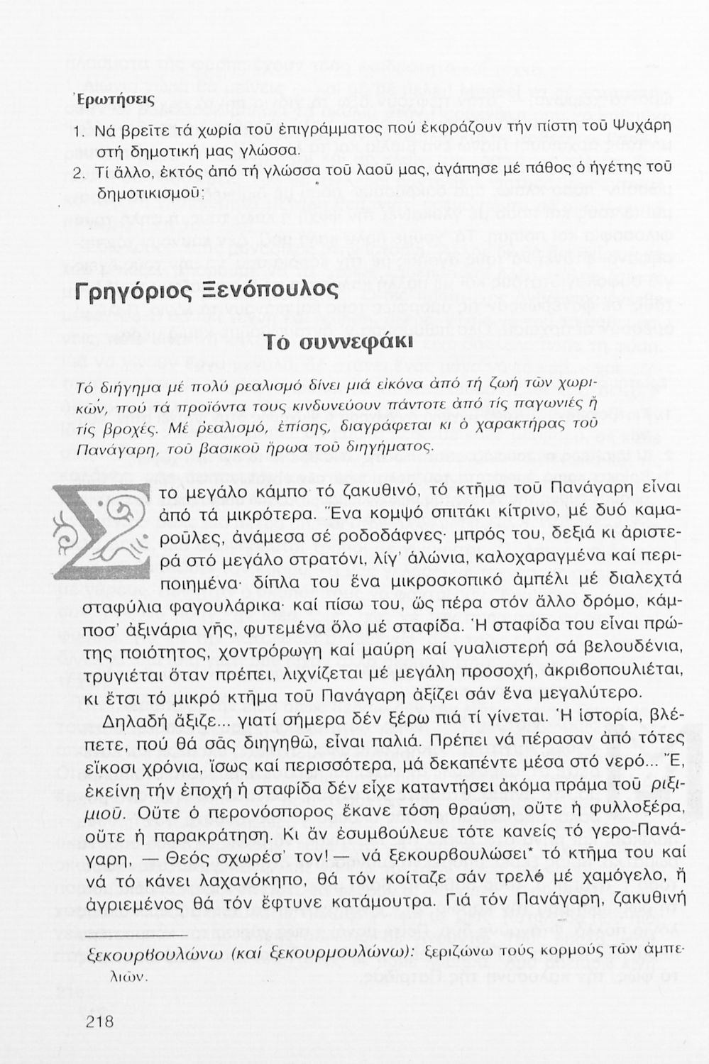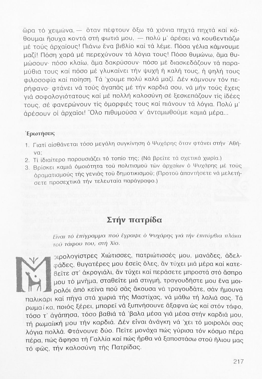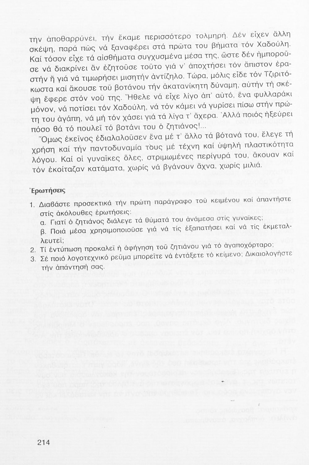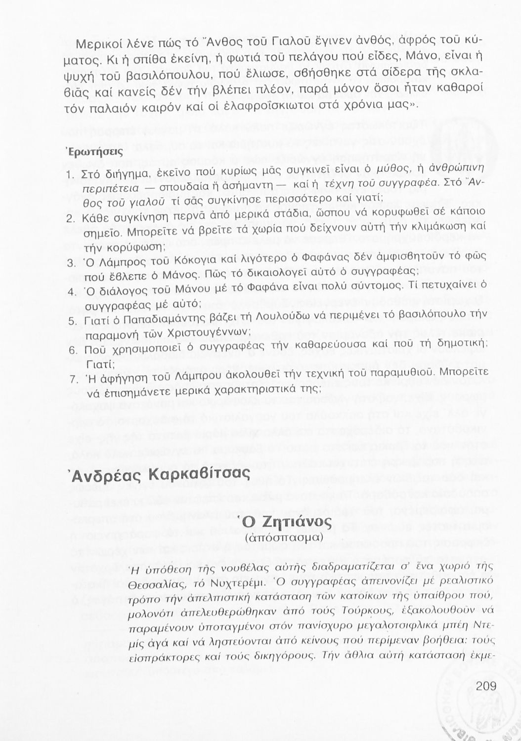 Σχολικό εγχειρίδιο Νέων Ελληνικών Γ΄ Γυμνασίου που περιλαμβάνει δημοτικά τραγούδια, και χαρακτηριστικά δείγματα της κρητικής λογοτεχνίας, της επτανησιακής και ρομαντικής σχολής, της Νέας Αθηναϊκής Σχολής και της νεότερης και μεταπολεμικής λογοτεχνίας. Περιέχει και έργα σύγχρονων ξένων συγγραφέων, βιογραφικά και εισαγωγικά σημειώματα.
