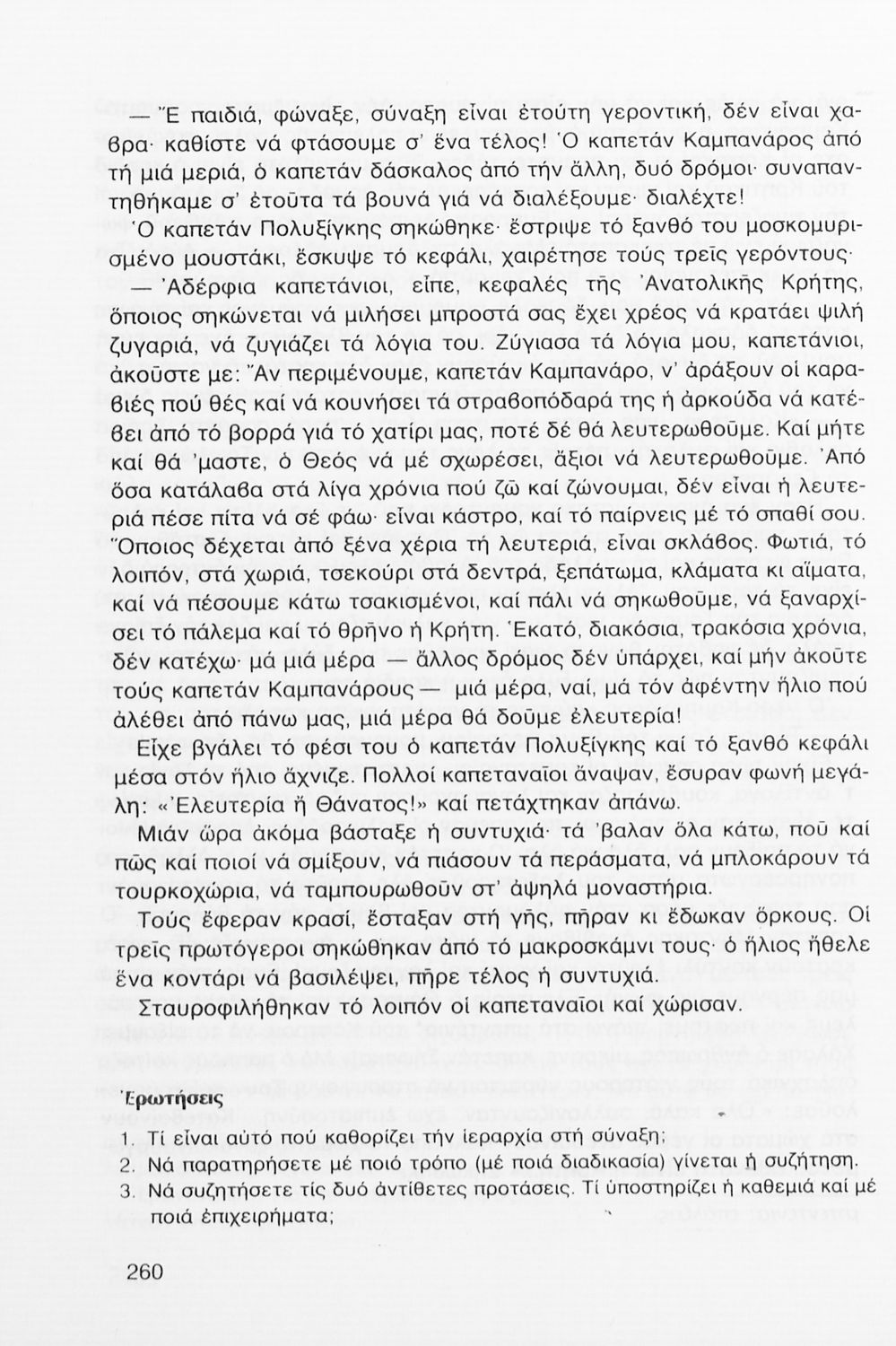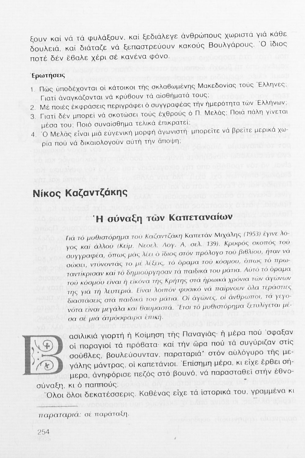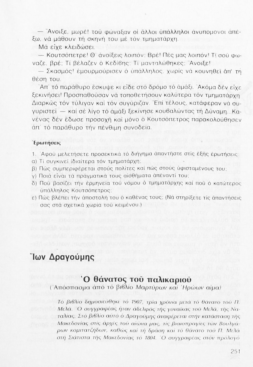 Σχολικό εγχειρίδιο Νέων Ελληνικών Α΄ Γυμνασίου που περιλαμβάνει δοκίμια, πεζά και ποιήματα Ελλήνων συγγραφέων και δημοτικά τραγούδια εμπνευσμένα από τη θρησκευτική, εθνική και κοινωνική ζωή, τη "δοκιμασία της ...