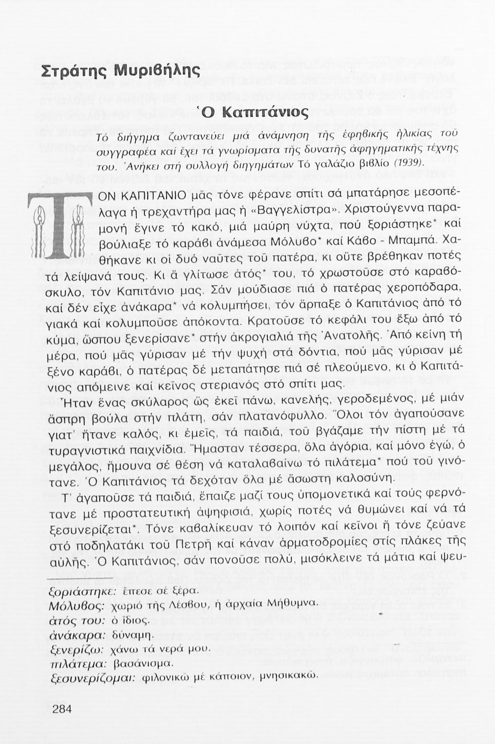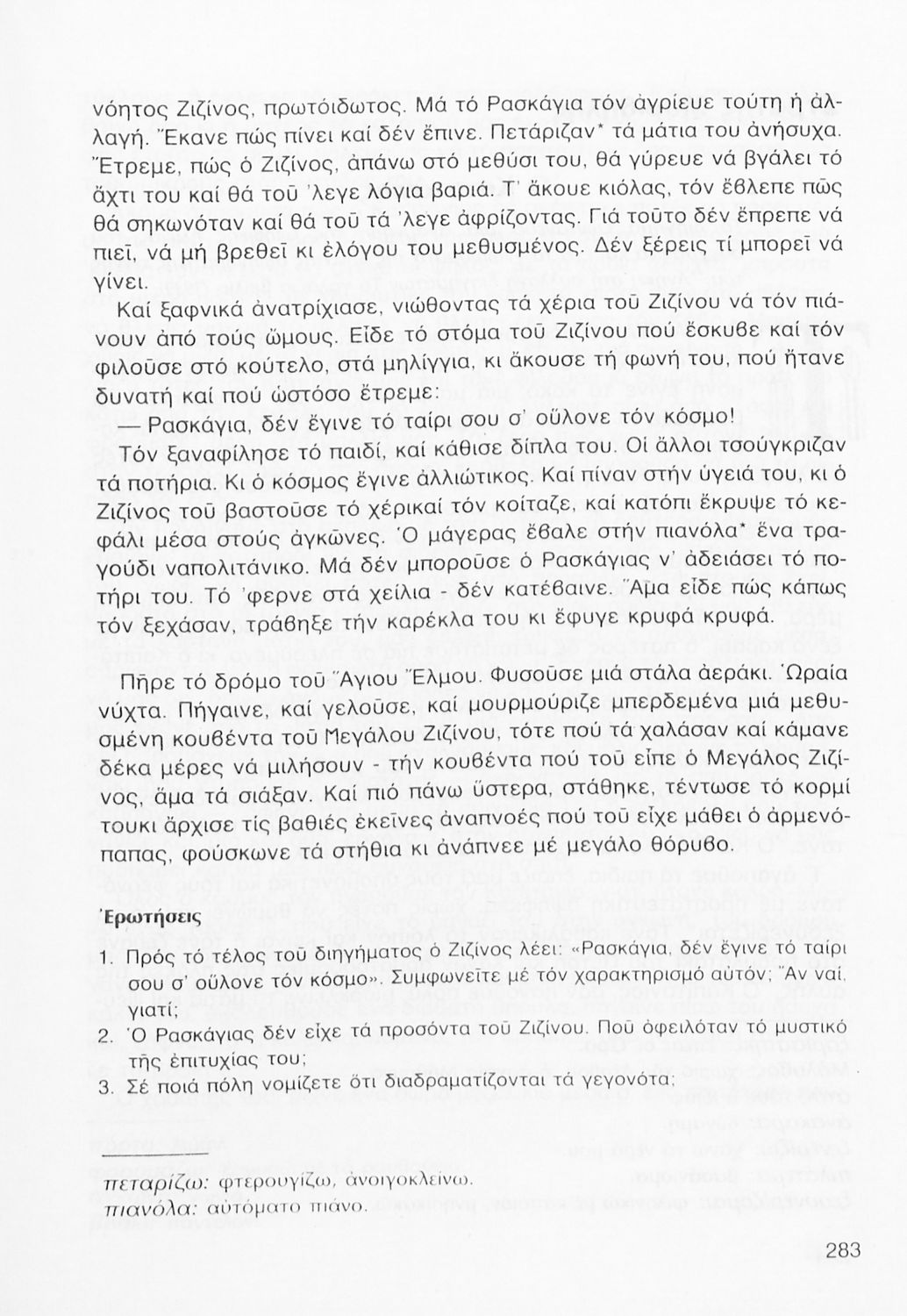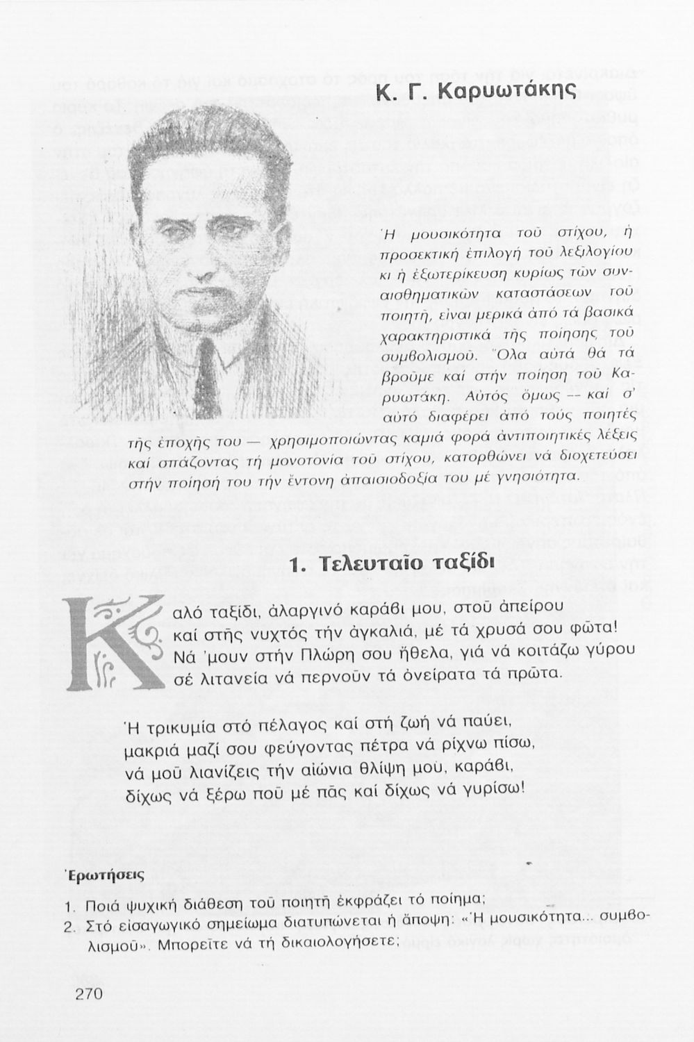 Σχολικό εγχειρίδιο Νέων Ελληνικών Γ΄ Γυμνασίου που περιλαμβάνει δημοτικά τραγούδια, και χαρακτηριστικά δείγματα της κρητικής λογοτεχνίας, της επτανησιακής και ρομαντικής σχολής, της Νέας Αθηναϊκής Σχολής και της νεότερης και μεταπολεμικής λογοτεχνίας. Περιέχει και έργα σύγχρονων ξένων συγγραφέων, βιογραφικά και εισαγωγικά σημειώματα.