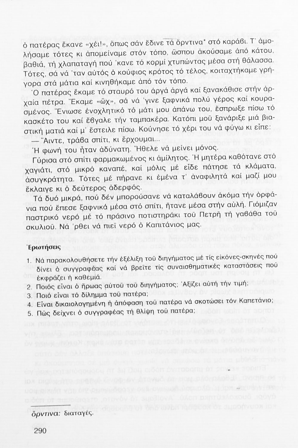 Σχολικό εγχειρίδιο Νέων Ελληνικών Α΄ Γυμνασίου που περιλαμβάνει δοκίμια, πεζά και ποιήματα Ελλήνων συγγραφέων και δημοτικά τραγούδια εμπνευσμένα από τη θρησκευτική, εθνική και κοινωνική ζωή, τη "δοκιμασία της ...