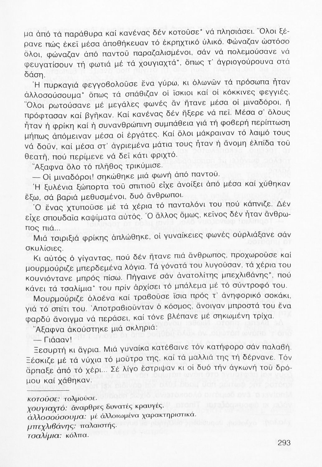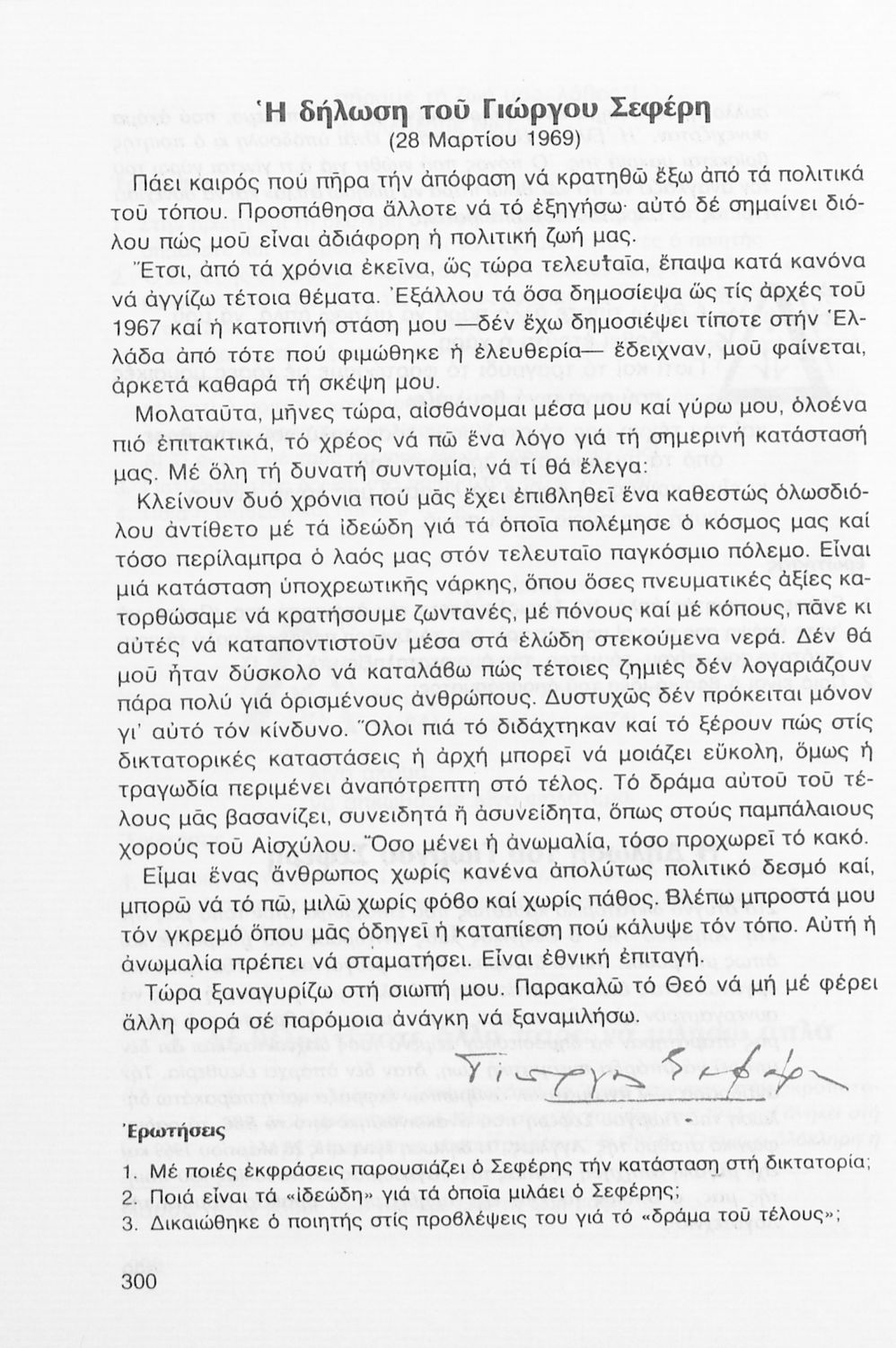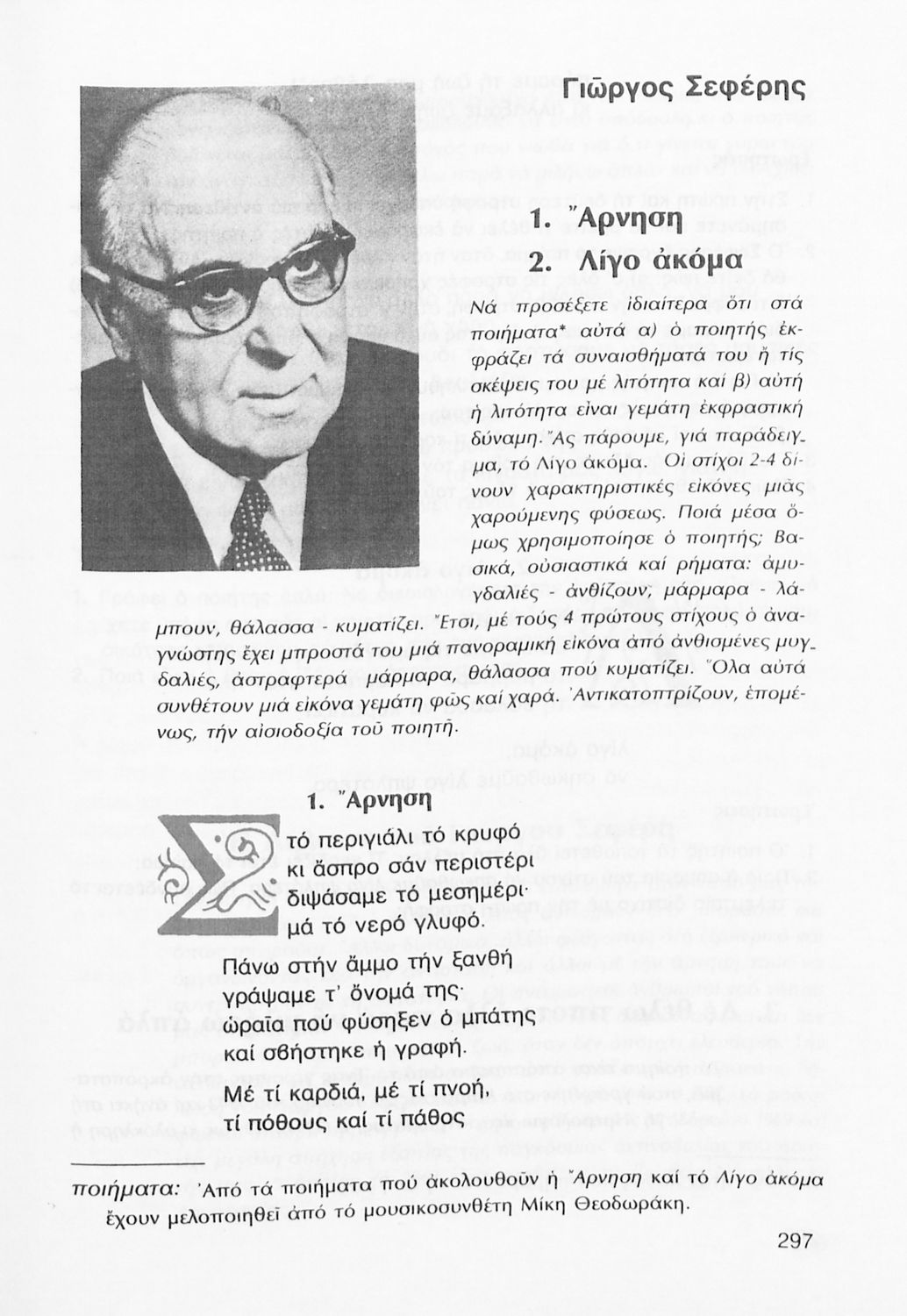 Σχολικό εγχειρίδιο Νέων Ελληνικών Γ΄ Γυμνασίου που περιλαμβάνει δημοτικά τραγούδια, και χαρακτηριστικά δείγματα της κρητικής λογοτεχνίας, της επτανησιακής και ρομαντικής σχολής, της Νέας Αθηναϊκής Σχολής και της νεότερης και μεταπολεμικής λογοτεχνίας. Περιέχει και έργα σύγχρονων ξένων συγγραφέων, βιογραφικά και εισαγωγικά σημειώματα.