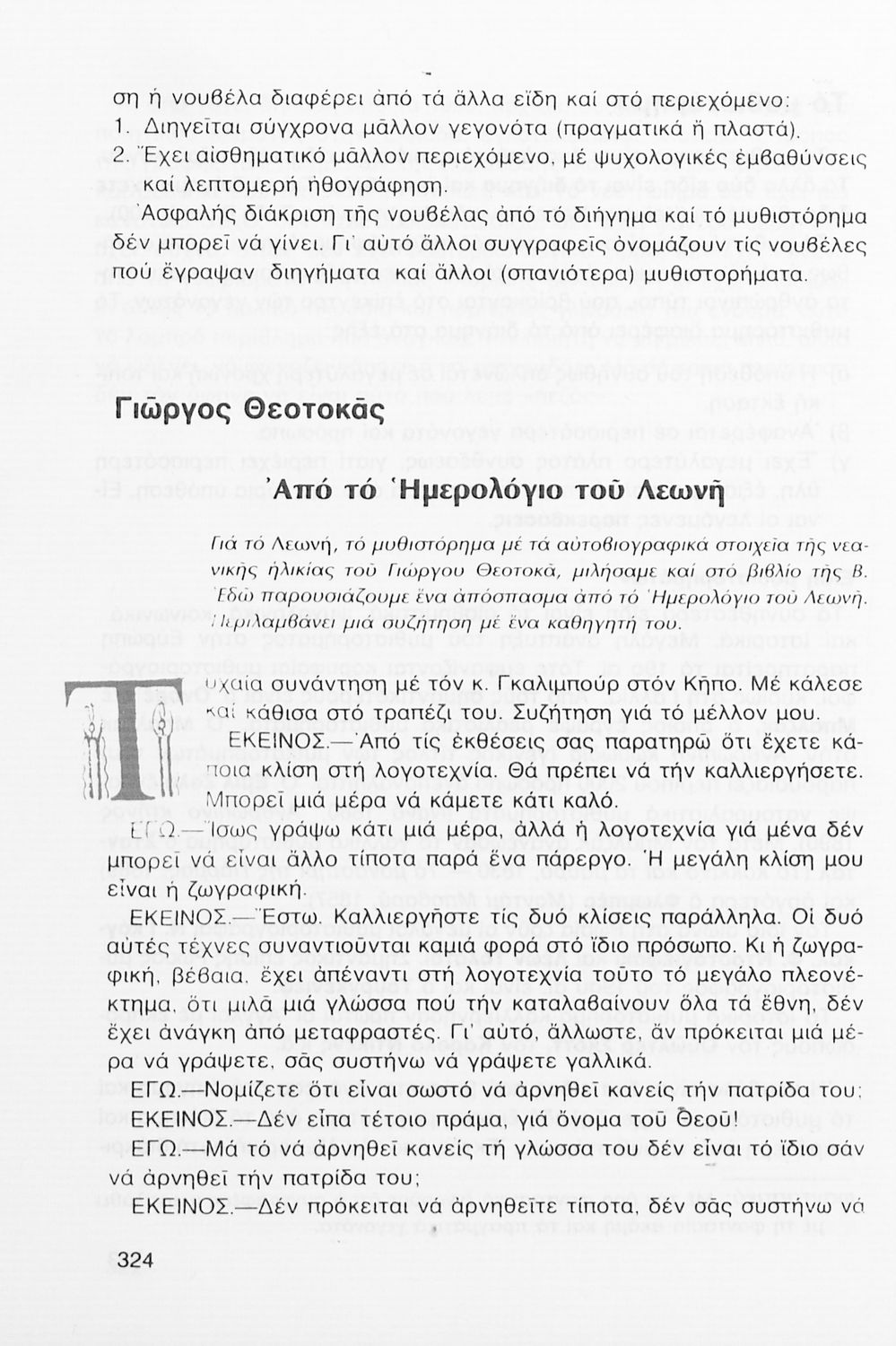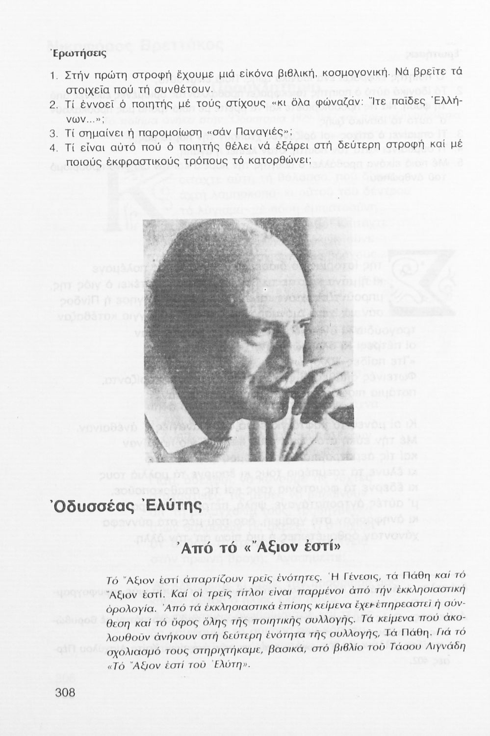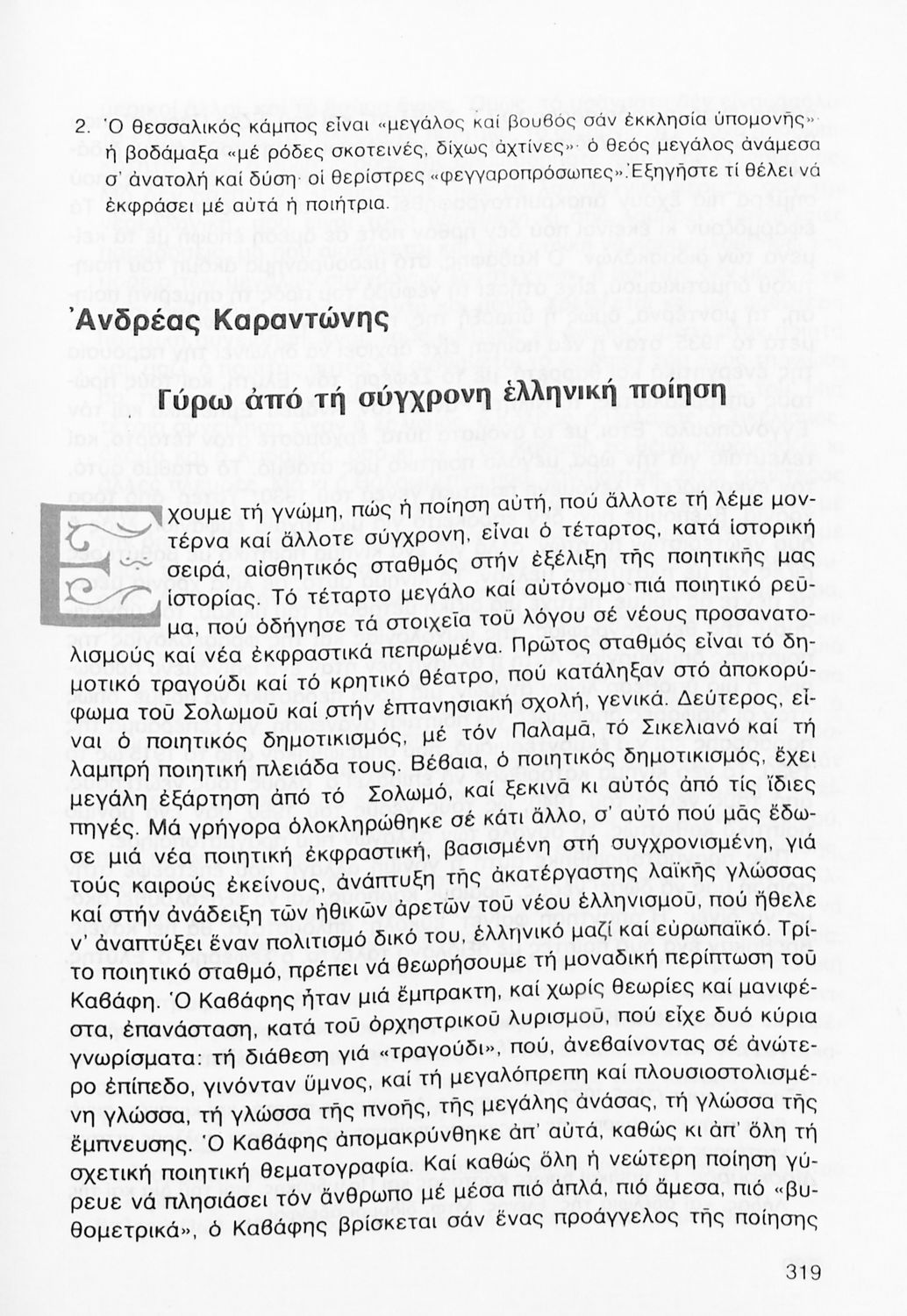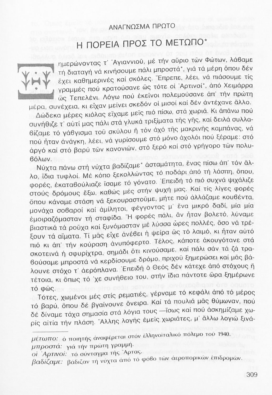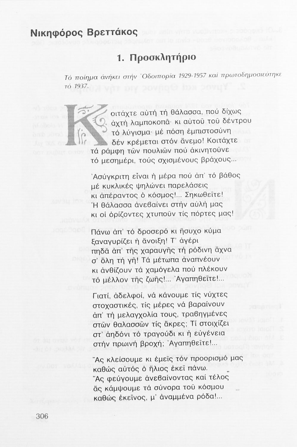 Σχολικό εγχειρίδιο Νέων Ελληνικών Γ΄ Γυμνασίου που περιλαμβάνει δημοτικά τραγούδια, και χαρακτηριστικά δείγματα της κρητικής λογοτεχνίας, της επτανησιακής και ρομαντικής σχολής, της Νέας Αθηναϊκής Σχολής και της νεότερης και μεταπολεμικής λογοτεχνίας. Περιέχει και έργα σύγχρονων ξένων συγγραφέων, βιογραφικά και εισαγωγικά σημειώματα.