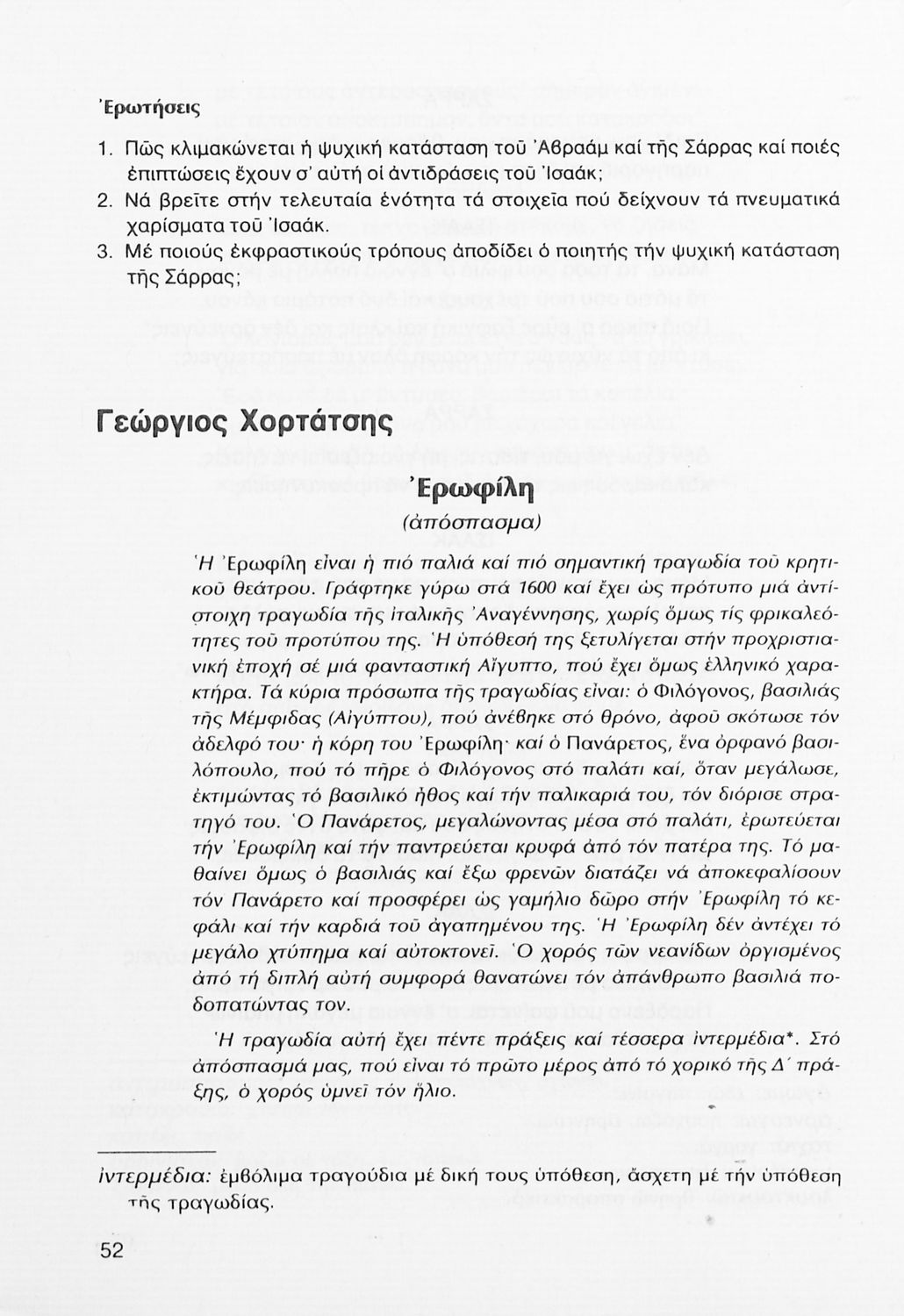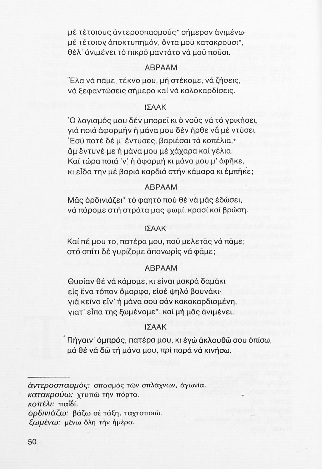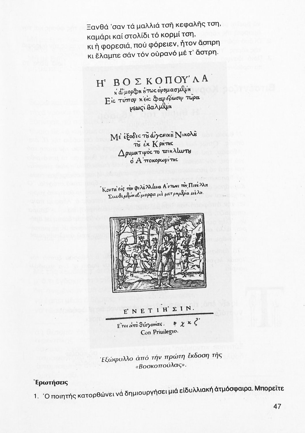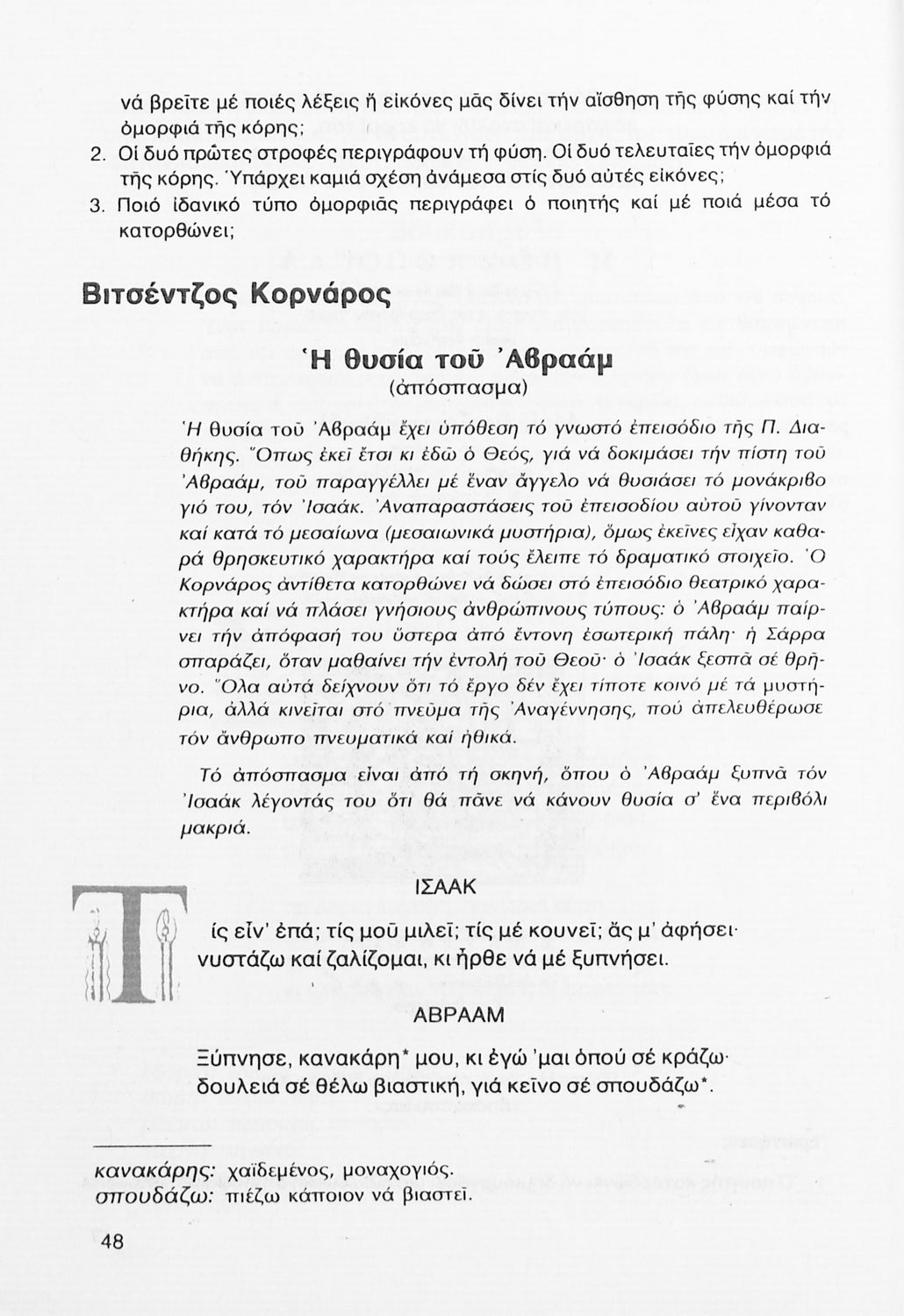 Σχολικό εγχειρίδιο Νέων Ελληνικών Γ΄ Γυμνασίου που περιλαμβάνει δημοτικά τραγούδια, και χαρακτηριστικά δείγματα της κρητικής λογοτεχνίας, της επτανησιακής και ρομαντικής σχολής, της Νέας Αθηναϊκής Σχολής και της νεότερης και μεταπολεμικής λογοτεχνίας. Περιέχει και έργα σύγχρονων ξένων συγγραφέων, βιογραφικά και εισαγωγικά σημειώματα.