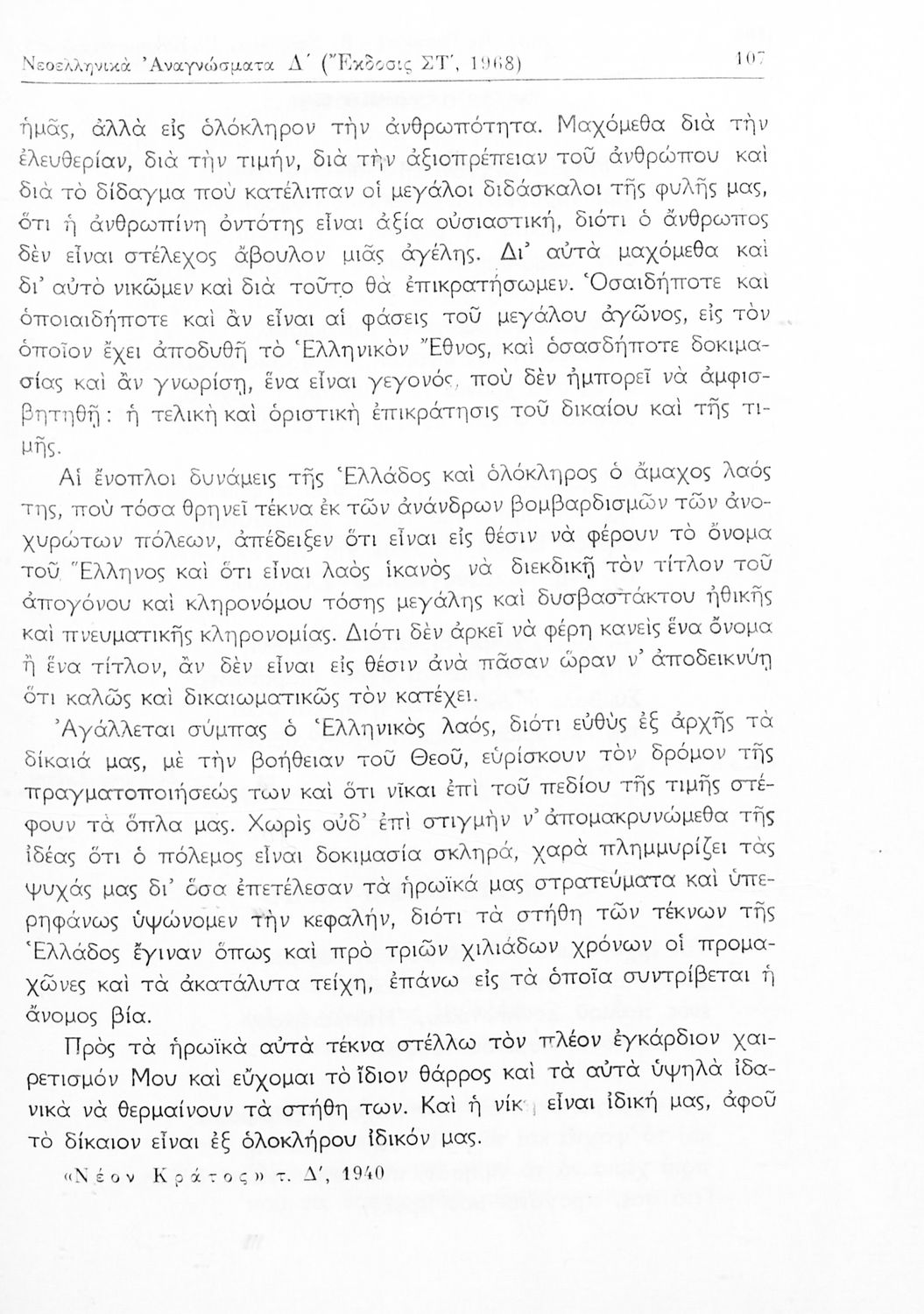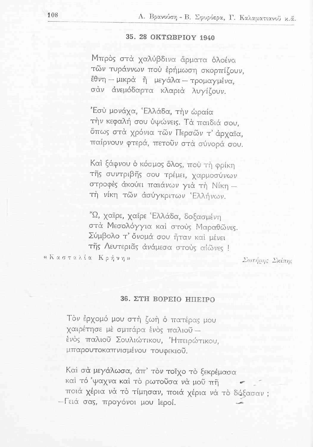 Σχολικό εγχειρίδιο Νέων Ελληνικών Δ΄ Γυμνασίου Θηλέων που περιλαμβάνει πεζά, ποιήματα και δημοτικά τραγούδια εμπνευσμένα από την σύγχρονη ελληνική ιστορία και την οικογενειακή και θρησκευτική ζωή. Περιέχει και