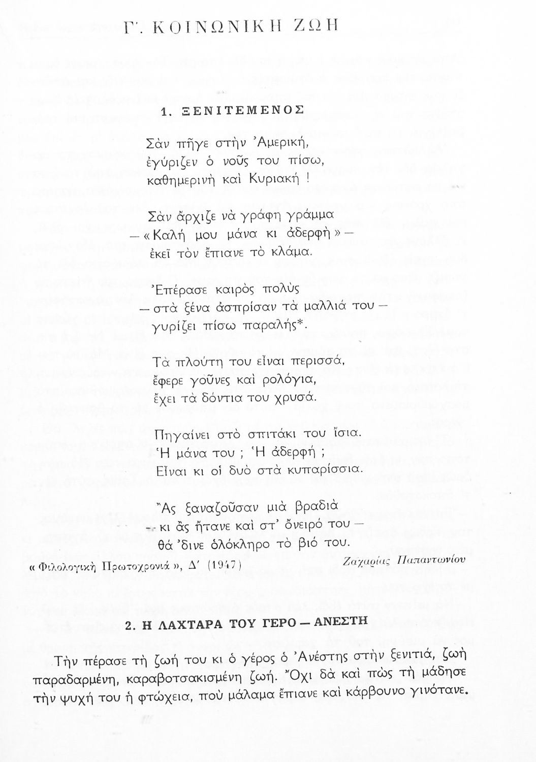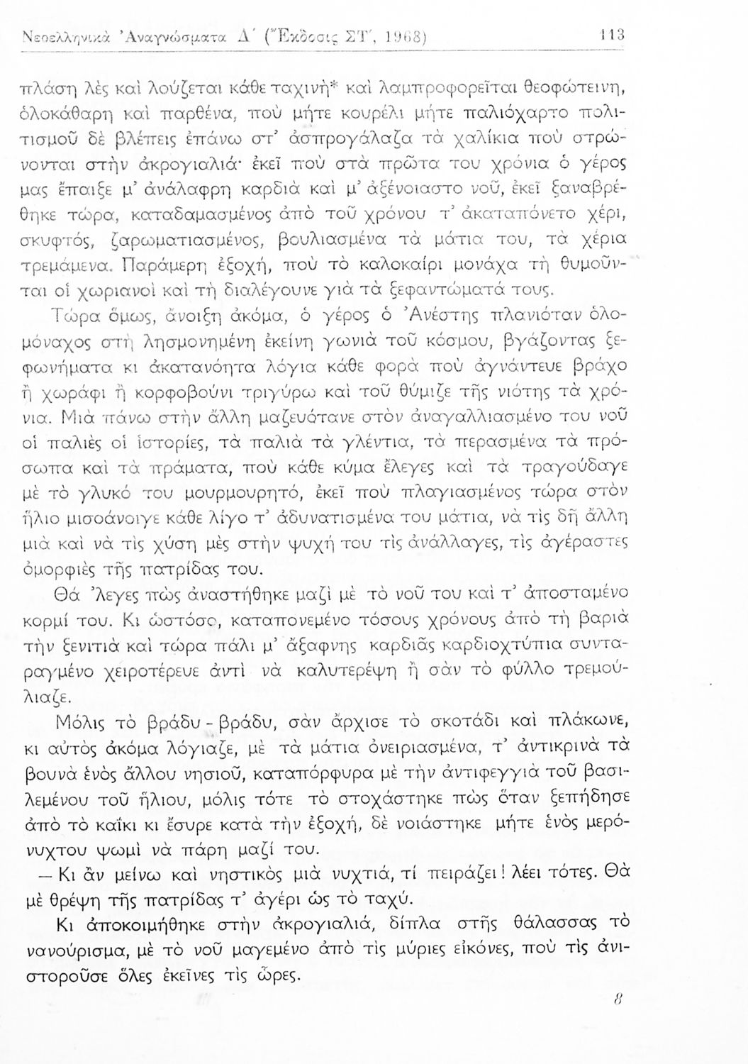 Σχολικό εγχειρίδιο Νέων Ελληνικών Δ΄ Γυμνασίου και Β΄ Αστικού Σχολείου που περιέχει πεζά και ποιήματα Ελλήνων συγγραφέων εμπνευσμένα από τη θρησκευτική και κοινωνική ζωή, την ελληνική μυθολογία, την αρχαία και