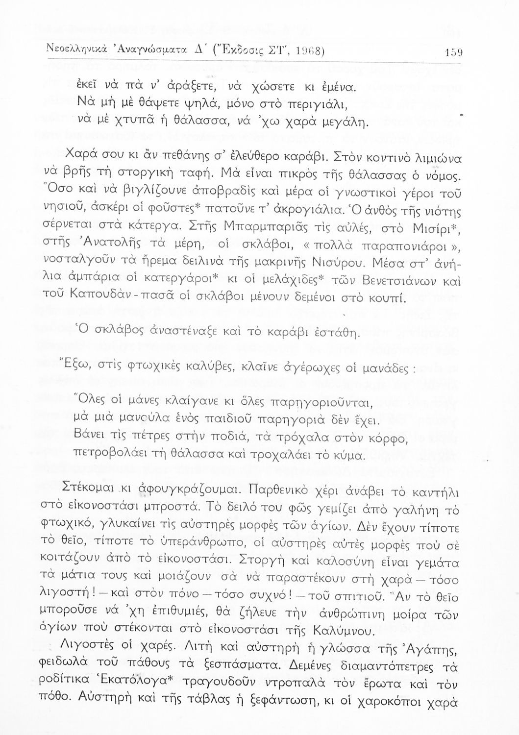 Σχολικό εγχειρίδιο Νέων Ελληνικών Δ΄ Γυμνασίου και Β΄ Αστικού Σχολείου που περιέχει πεζά και ποιήματα Ελλήνων συγγραφέων εμπνευσμένα από τη θρησκευτική και κοινωνική ζωή, την ελληνική μυθολογία, την αρχαία και