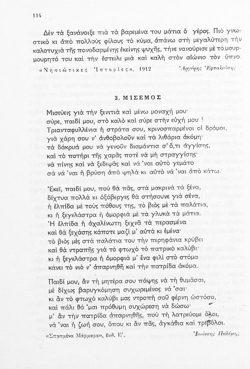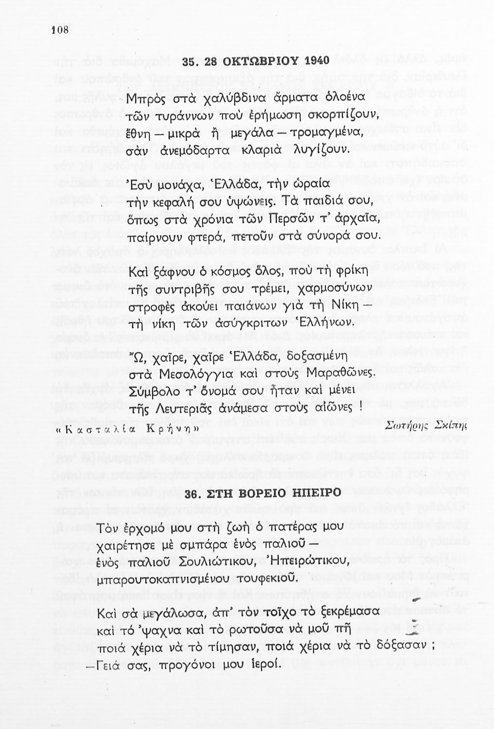 Σχολικό εγχειρίδιο Νέων Ελληνικών Δ΄ Γυμνασίου Θηλέων που περιλαμβάνει πεζά, ποιήματα και δημοτικά τραγούδια εμπνευσμένα από την σύγχρονη ελληνική ιστορία και την οικογενειακή και θρησκευτική ζωή. Περιέχει και