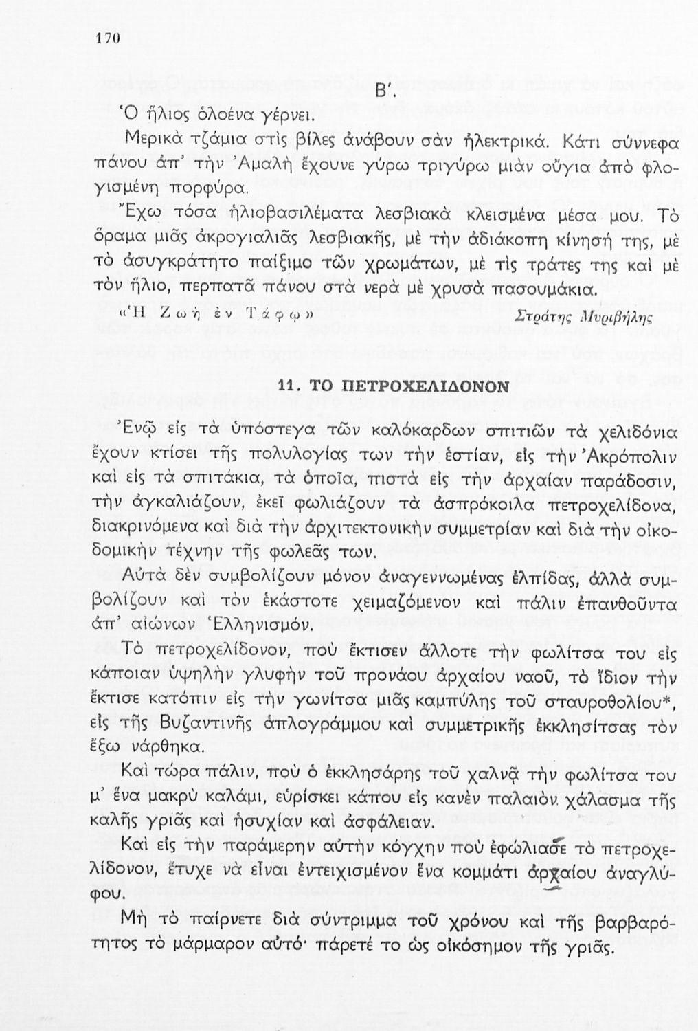 Σχολικό εγχειρίδιο Νέων Ελληνικών Δ΄ Γυμνασίου Θηλέων που περιλαμβάνει πεζά, ποιήματα και δημοτικά τραγούδια εμπνευσμένα από την σύγχρονη ελληνική ιστορία και την οικογενειακή και θρησκευτική ζωή. Περιέχει και