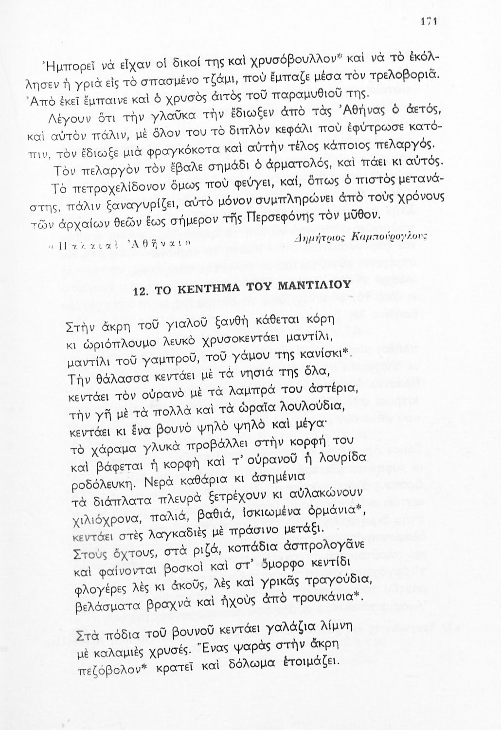 Σχολικό εγχειρίδιο Νέων Ελληνικών Δ΄ Γυμνασίου και Β΄ Αστικού Σχολείου που περιέχει πεζά και ποιήματα Ελλήνων συγγραφέων εμπνευσμένα από τη θρησκευτική και κοινωνική ζωή, την ελληνική μυθολογία, την αρχαία και
