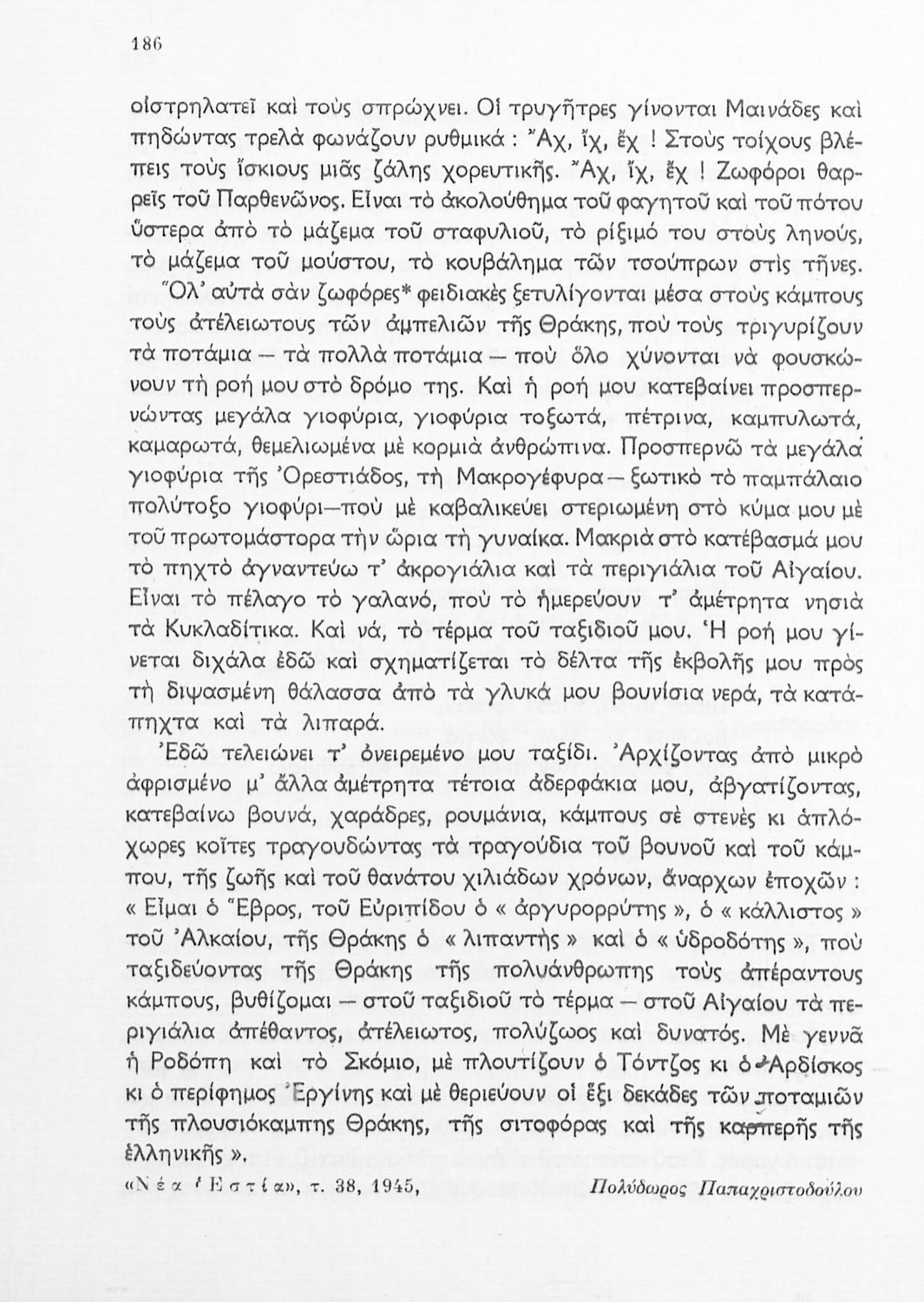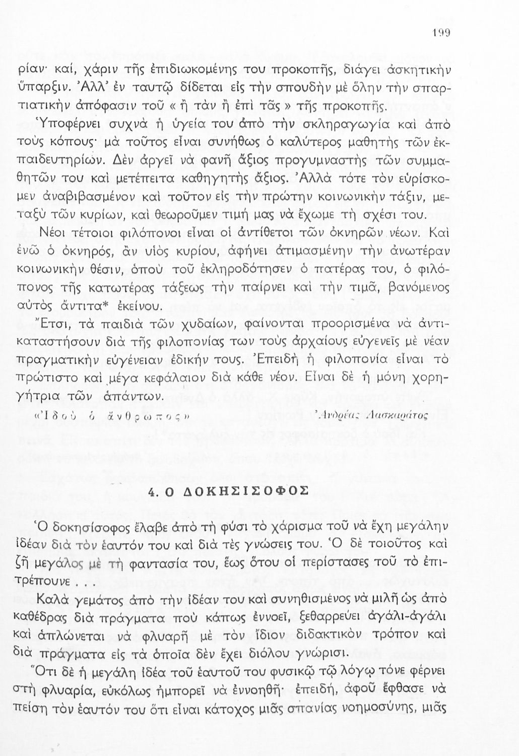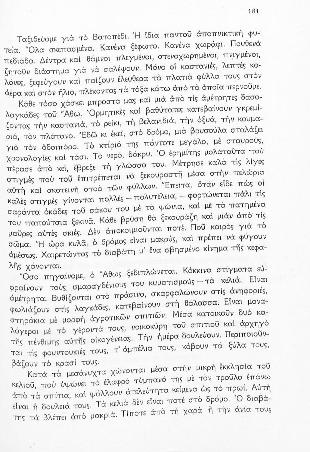 Σχολικό εγχειρίδιο Νέων Ελληνικών Δ' Γυμνασίου που περιλαμβάνει πεζά, ποιήματα και παροιμίες Ελλήνων συγγραφέων εμπνευσμένα από την θρησκευτική και κοινωνική ζωή, τη βυζαντινή ιστορία, την αρχαία και σύγχρονη ελληνική ιστορία, και την ελληνική φύση. Περιέχει παράρτημα με βιογραφίες των συγγραφέων και λεξιλόγιο. Φέρει το σύμβολο της δικτατορίας.