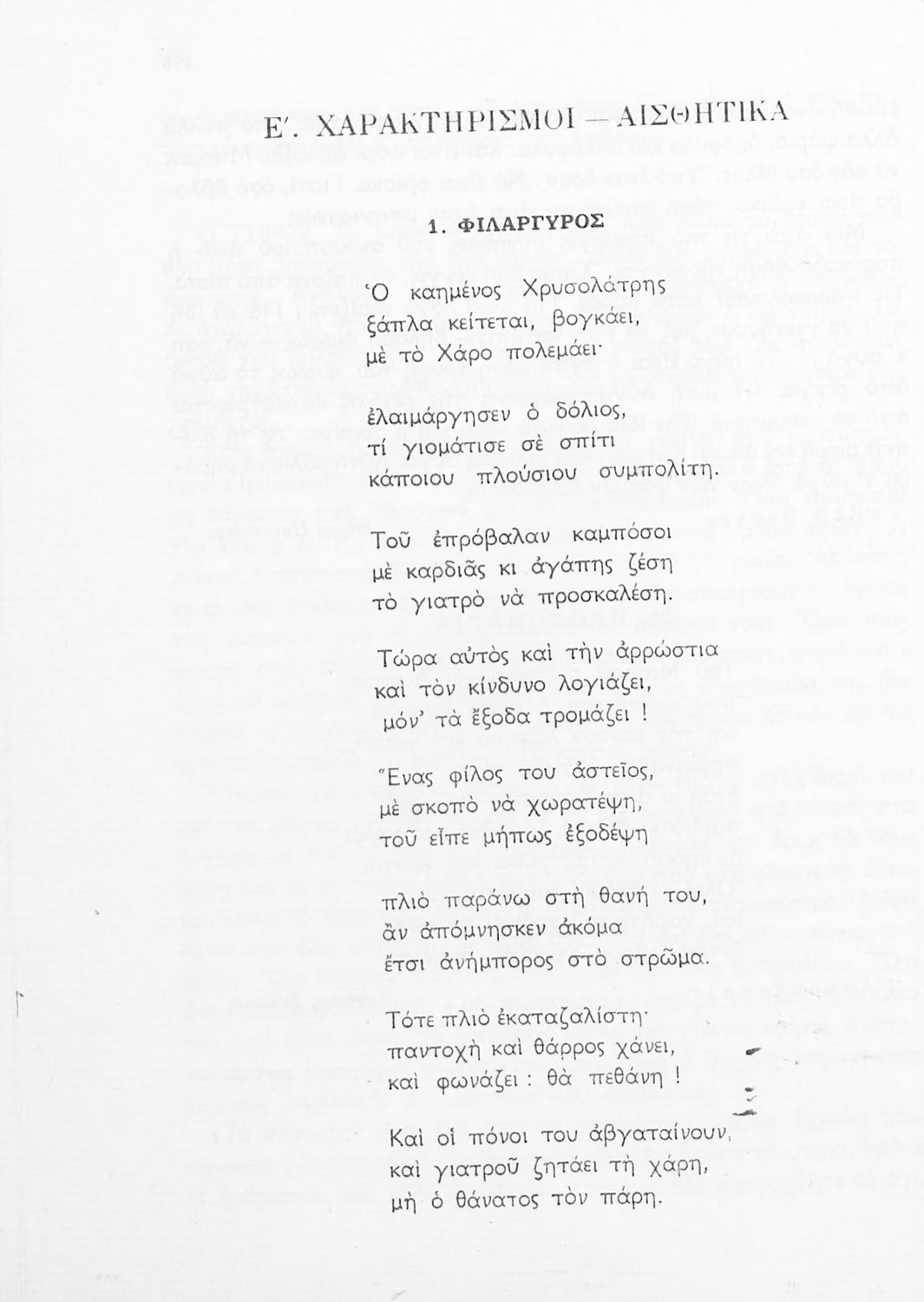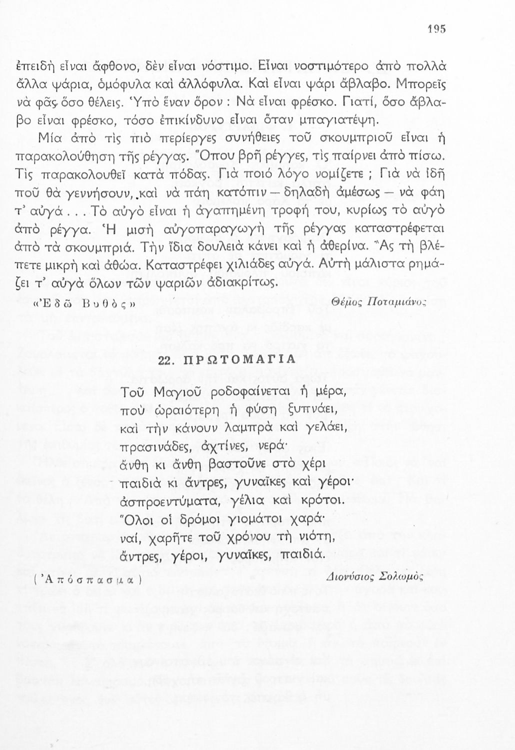 Σχολικό εγχειρίδιο Νέων Ελληνικών Δ΄ Γυμνασίου και Β΄ Αστικού Σχολείου που περιέχει πεζά και ποιήματα Ελλήνων συγγραφέων εμπνευσμένα από τη θρησκευτική και κοινωνική ζωή, την ελληνική μυθολογία, την αρχαία και