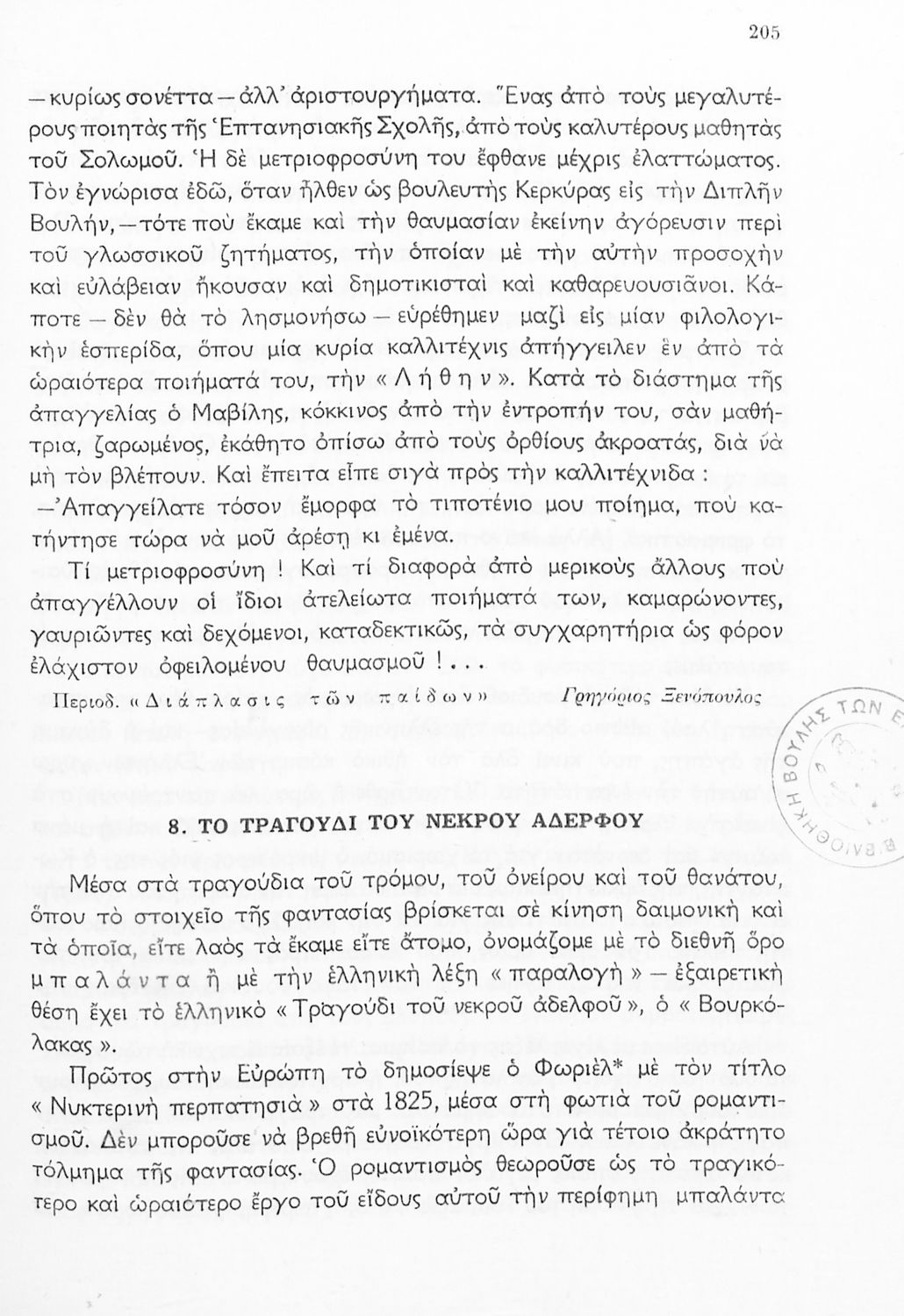 LDR 01571 2200217 4500 035 ## _a03-20556177 040 ## _aΒιβλιοθήκη της Βουλής των Ελλήνων 041 ## _ael 100 ## _aΛ. Βρανούσης _aΒ. Σφυρόερας _aΓ. Καλαματιανός _aΚ. Ρωμαίος _aΠ. Πάρρης 110 ## _a20556177 245 0# _aΝεοελληνικά αναγνώσματα Δ΄ Γυμνασίου 250 ## _a8η Έκδοση 260 ## _aΑθήνα _bΟργανισμός Εκδόσεως Διδακτικών Βιβλίων _c1970 300 ## _a274 _c20 520 ## _aΣχολικό εγχειρίδιο Νέων Ελληνικών Δ' Γυμνασίου που περιλαμβάνει πεζά, ποιήματα και παροιμίες Ελλήνων συγγραφέων εμπνευσμένα από την θρησκευτική και κοινωνική ζωή, τη βυζαντινή ιστορία, την αρχαία και σύγχρονη ελληνική ιστορία, και την ελληνική φύση. Περιέχει παράρτημα με βιογραφίες των συγγραφέων και λεξιλόγιο. Φέρει το σύμβολο της δικτατορίας. 521 ## _aΔ' Γυμνασίου 522 ## _aΕλλάδα 546 ## _aΚαθαρεύουσα / Απλή καθαρεύουσα / Δημοτική 563 ## _aΜαλακό Εξώφυλλο 583 ## _a1989/ 2-4-1970 _c1970 650 #4 _aΠαλαμάς _aΠαπαδιαμάντης _aΠαπαρρηγόπουλος _aΣολωμός