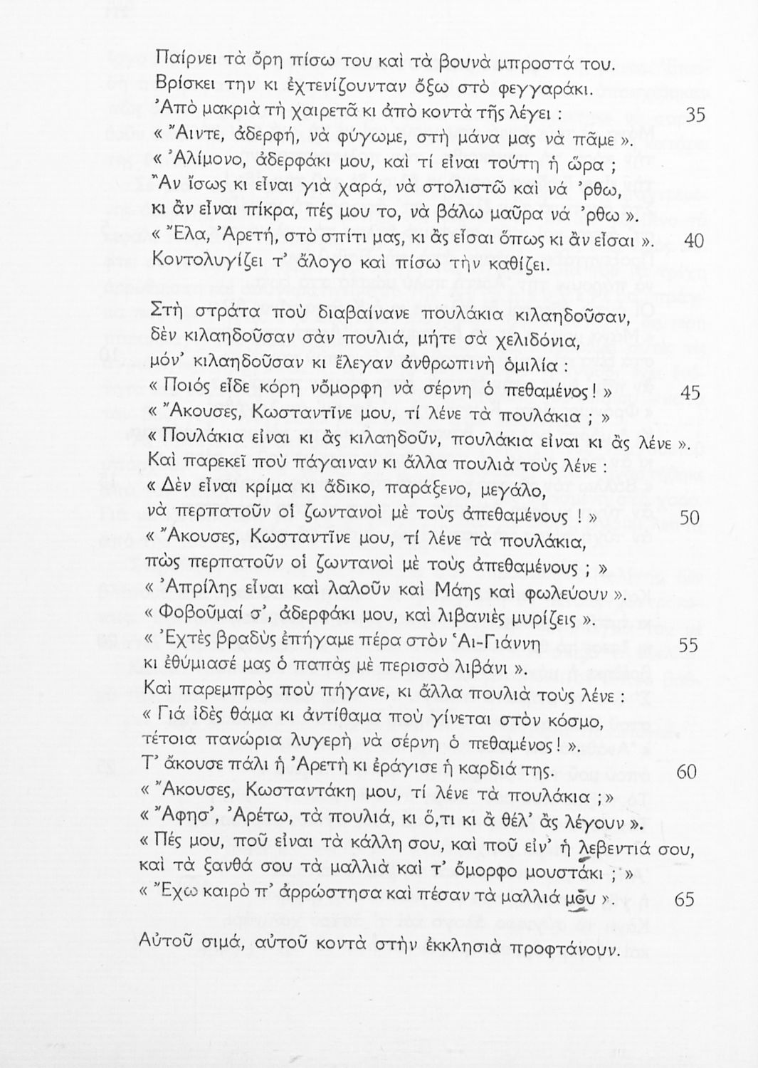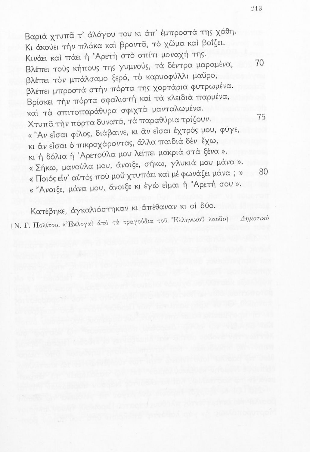 Σχολικό εγχειρίδιο Νέων Ελληνικών Δ' Γυμνασίου που περιλαμβάνει πεζά, ποιήματα και παροιμίες Ελλήνων συγγραφέων εμπνευσμένα από την θρησκευτική και κοινωνική ζωή, τη βυζαντινή ιστορία, την αρχαία και σύγχρονη ελληνική ιστορία, και την ελληνική φύση. Περιέχει παράρτημα με βιογραφίες των συγγραφέων και λεξιλόγιο. Φέρει το σύμβολο της δικτατορίας.