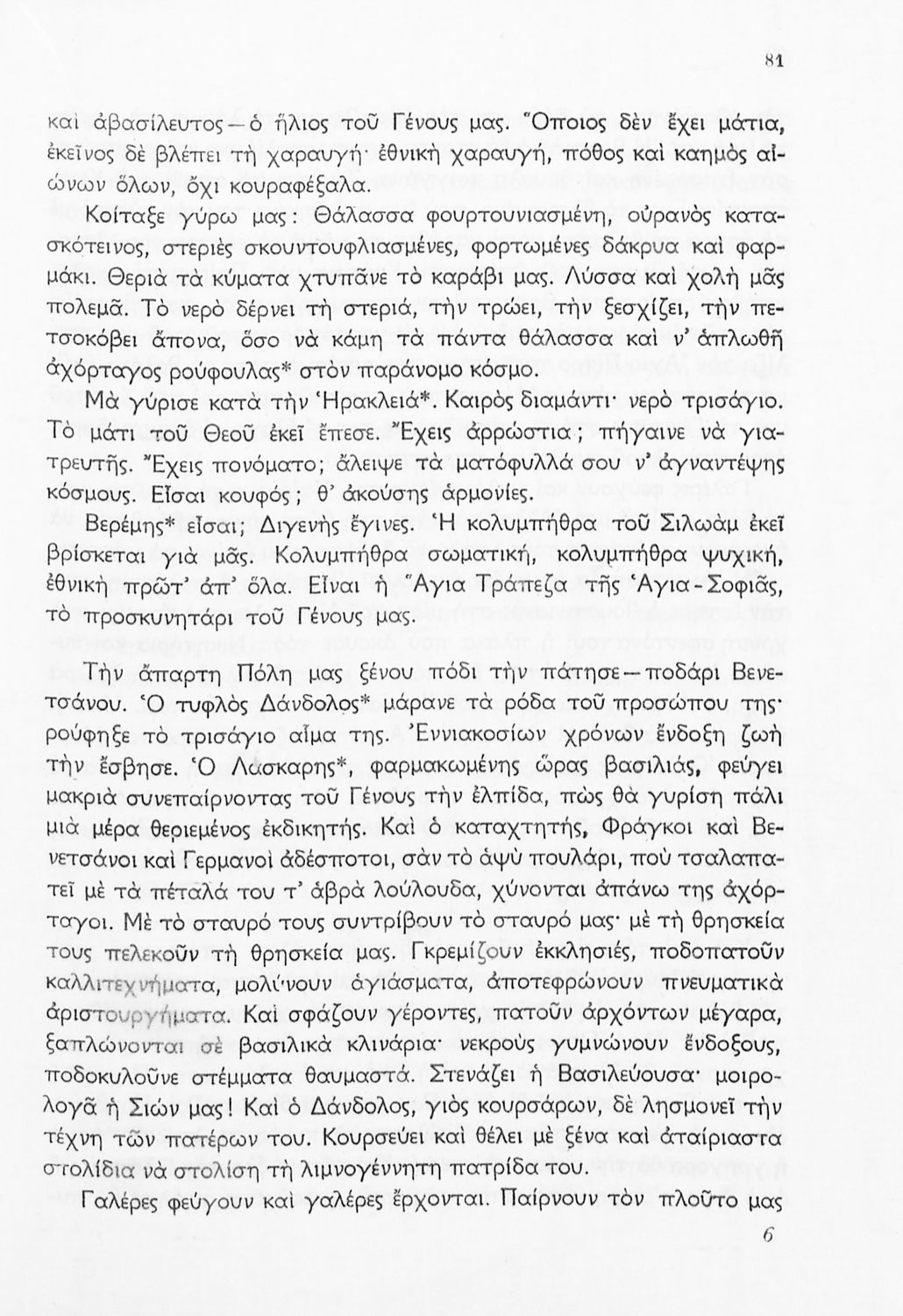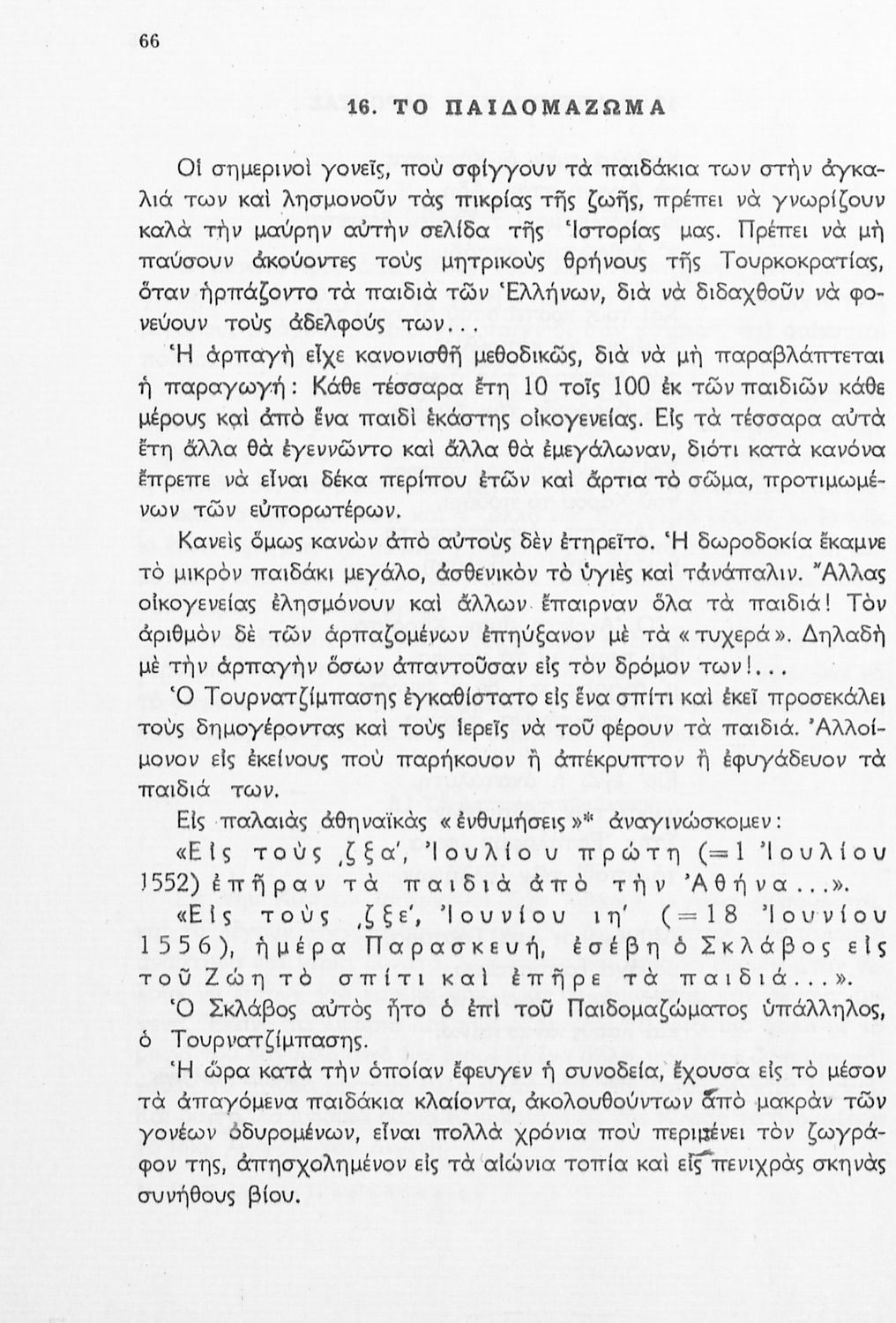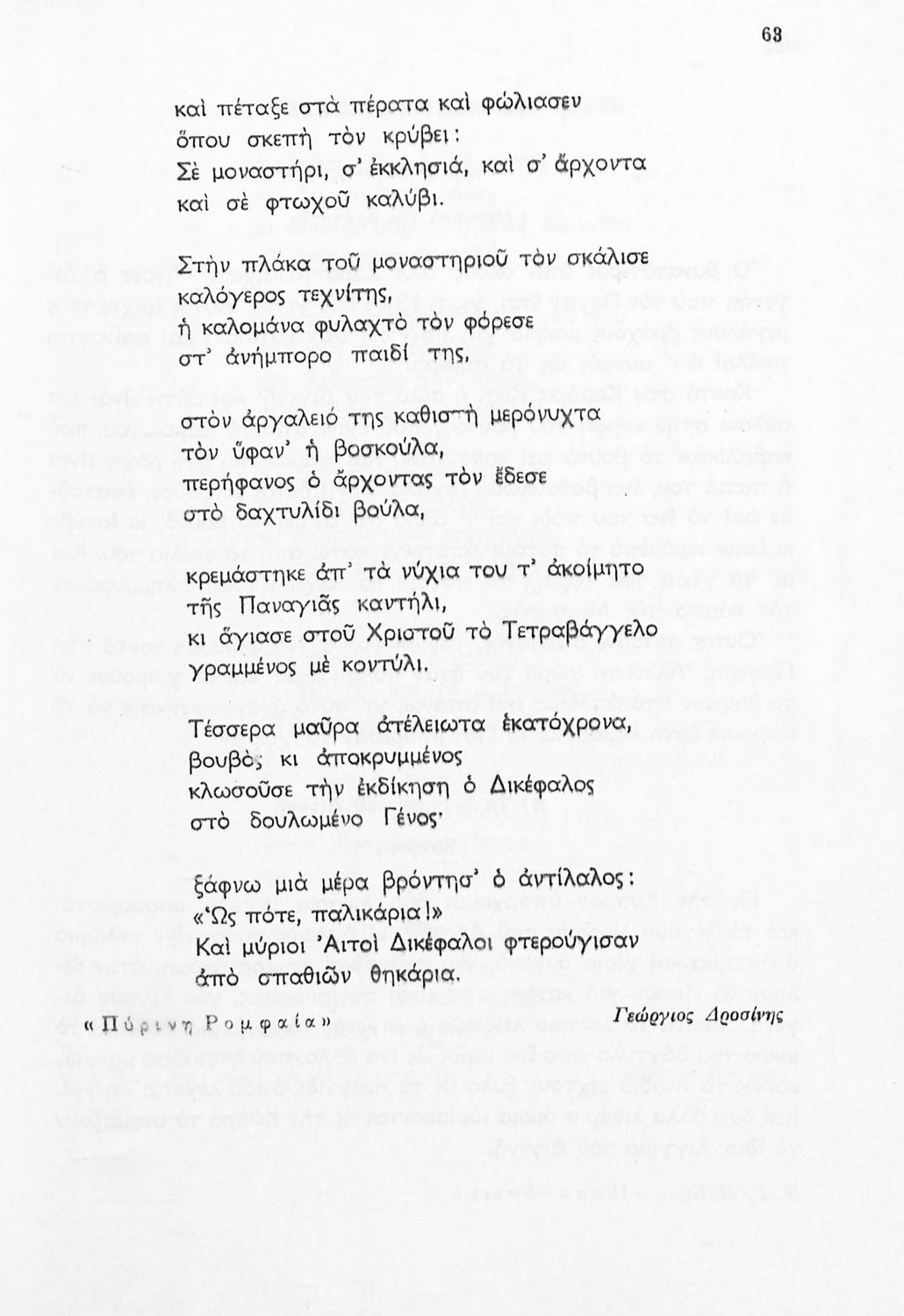 Σχολικό εγχειρίδιο Νέων Ελληνικών Δ' Γυμνασίου που περιλαμβάνει πεζά, ποιήματα και παροιμίες Ελλήνων συγγραφέων εμπνευσμένα από την θρησκευτική και κοινωνική ζωή, τη βυζαντινή ιστορία, την αρχαία και σύγχρονη ελληνική ιστορία, και την ελληνική φύση. Περιέχει παράρτημα με βιογραφίες των συγγραφέων και λεξιλόγιο. Φέρει το σύμβολο της δικτατορίας.