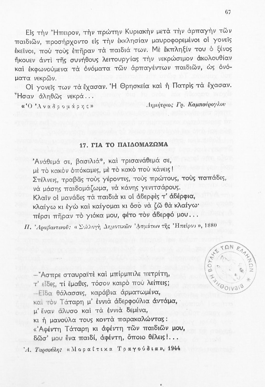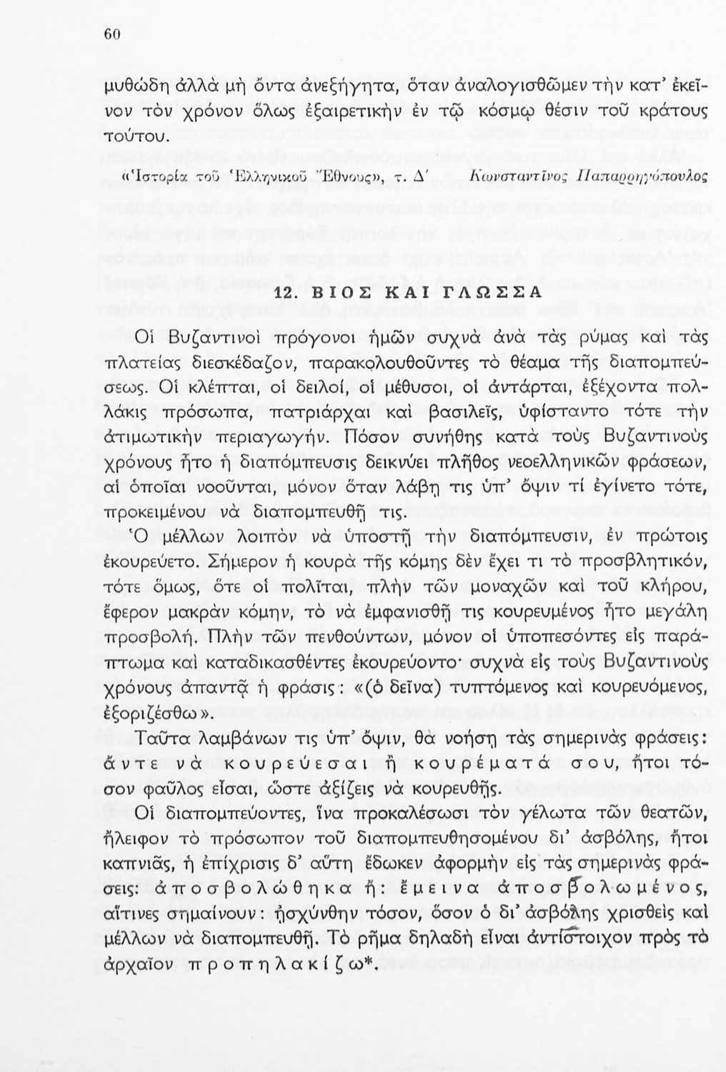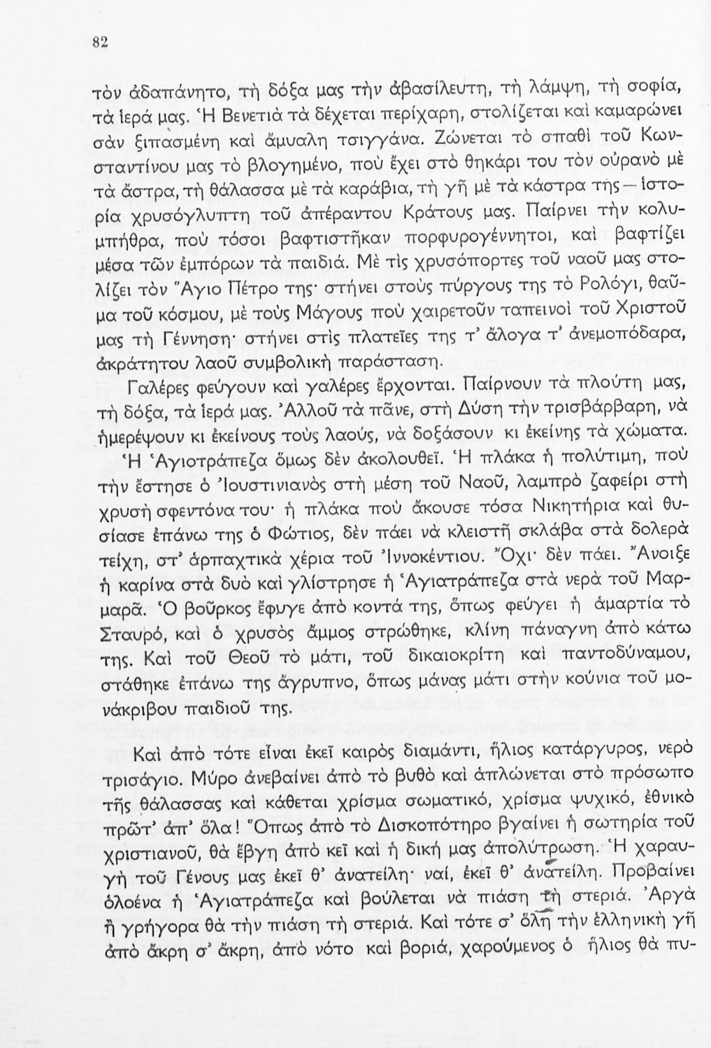 Σχολικό εγχειρίδιο Νέων Ελληνικών Δ' Γυμνασίου που περιλαμβάνει πεζά, ποιήματα και παροιμίες Ελλήνων συγγραφέων εμπνευσμένα από την θρησκευτική και κοινωνική ζωή, τη βυζαντινή ιστορία, την αρχαία και σύγχρονη ελληνική ιστορία, και την ελληνική φύση. Περιέχει παράρτημα με βιογραφίες των συγγραφέων και λεξιλόγιο. Φέρει το σύμβολο της δικτατορίας.