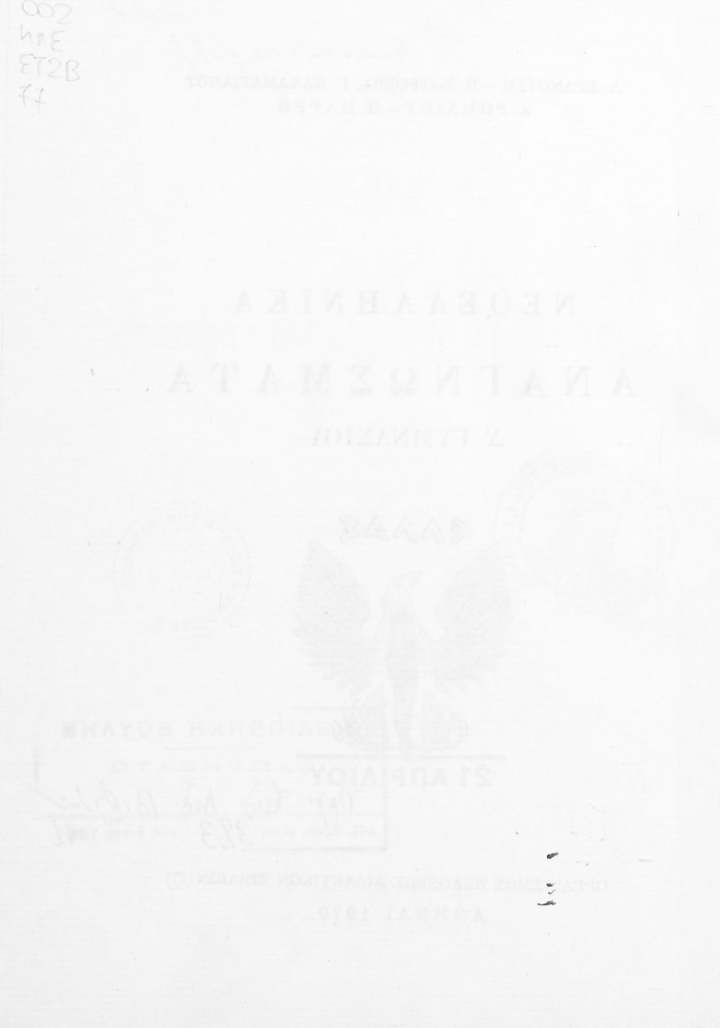 Εντοπισμός πρωτοτύπου: Βιβλιοθήκη της Βουλής των Ελλήνων Κωδικός βιβλιοθήκης: 20556177 |