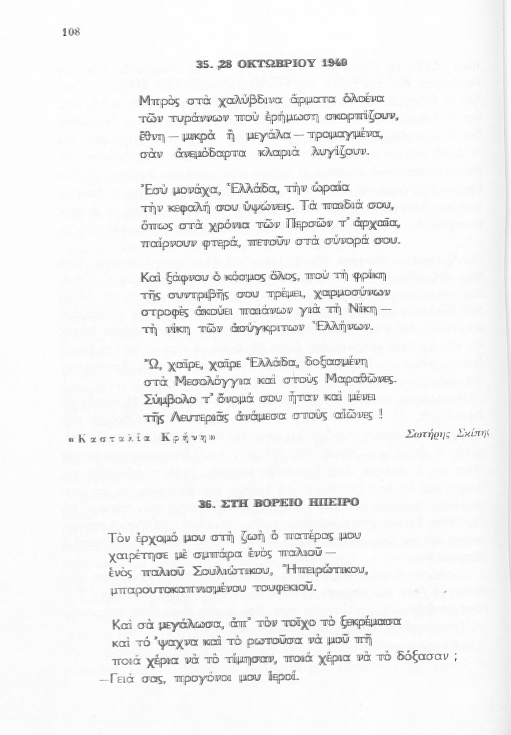 Σχολικό εγχειρίδιο Νέων Ελληνικών Δ΄ Γυμνασίου Θηλέων που περιλαμβάνει πεζά, ποιήματα και δημοτικά τραγούδια εμπνευσμένα από την σύγχρονη ελληνική ιστορία και την οικογενειακή και θρησκευτική ζωή. Περιέχει και