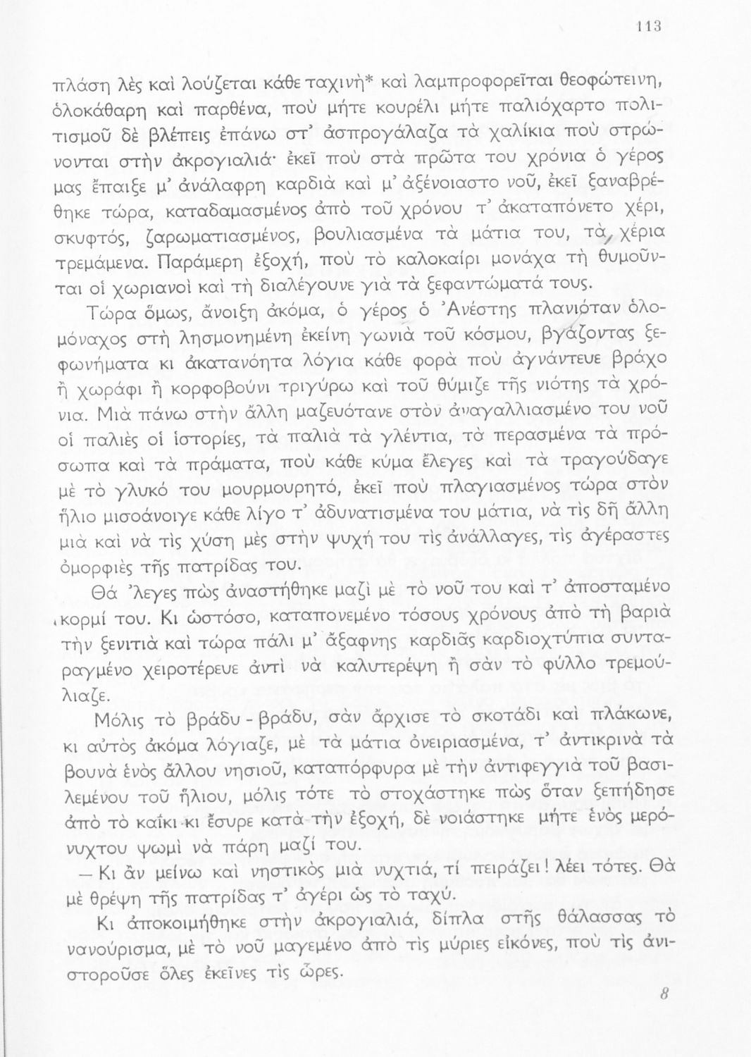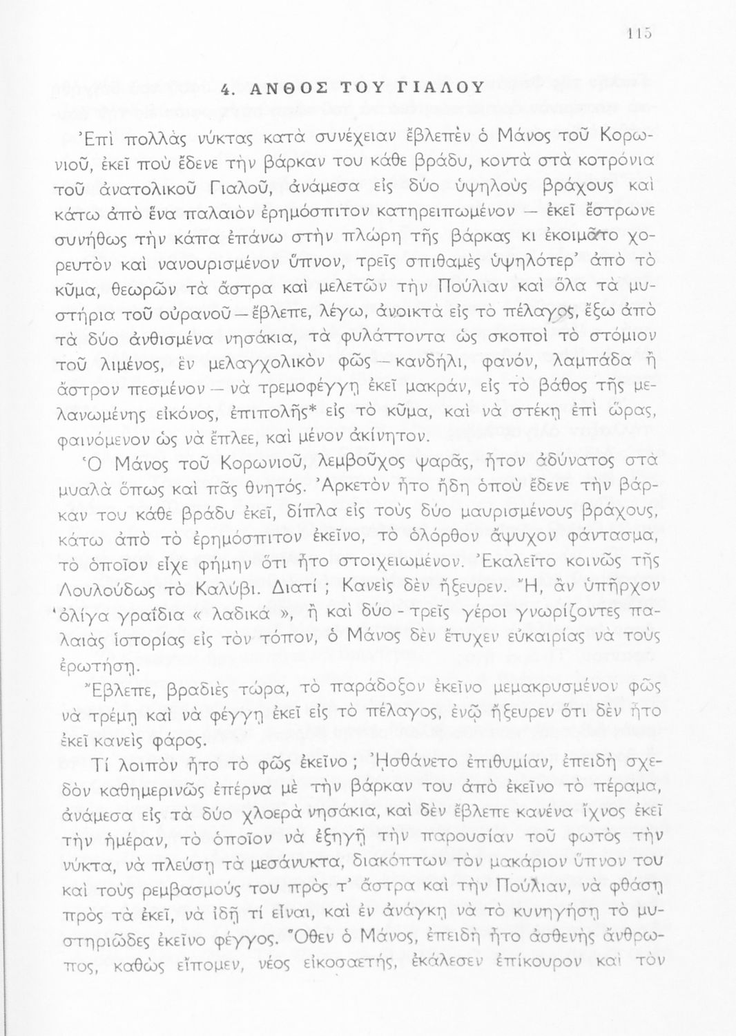 Σχολικό εγχειρίδιο Νέων Ελληνικών Δ' Γυμνασίου που περιλαμβάνει πεζά, ποιήματα και παροιμίες Ελλήνων συγγραφέων εμπνευσμένα από την θρησκευτική και κοινωνική ζωή, τη βυζαντινή ιστορία, την αρχαία και σύγχρονη ελληνική ιστορία, και την ελληνική φύση. Περιέχει παράρτημα με βιογραφίες των συγγραφέων και λεξιλόγιο. Φέρει το σύμβολο της δικτατορίας.