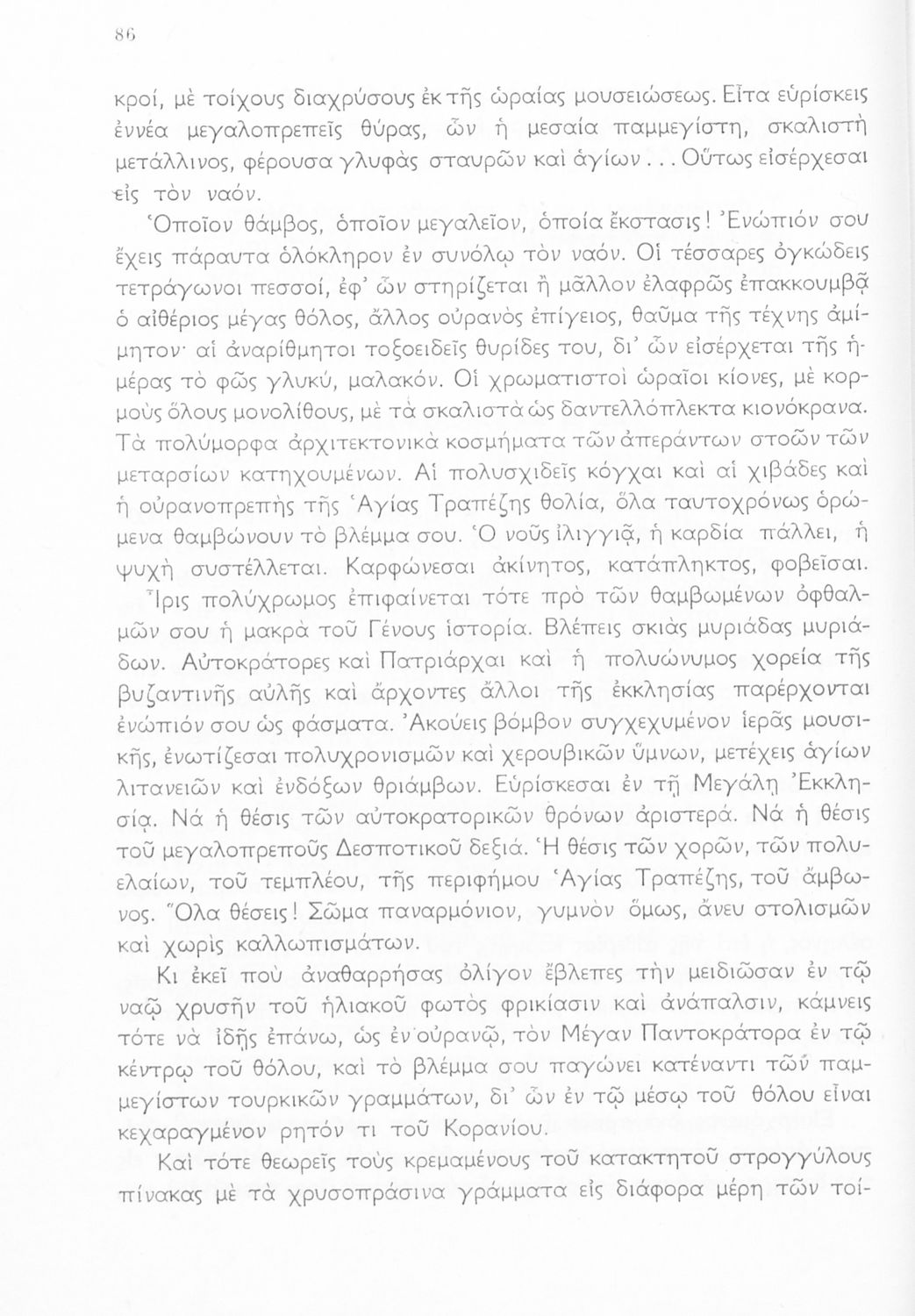 Σχολικό εγχειρίδιο Νέων Ελληνικών Δ' Γυμνασίου που περιλαμβάνει πεζά, ποιήματα και παροιμίες Ελλήνων συγγραφέων εμπνευσμένα από την θρησκευτική και κοινωνική ζωή, τη βυζαντινή ιστορία, την αρχαία και σύγχρονη ελληνική ιστορία, και την ελληνική φύση. Περιέχει παράρτημα με βιογραφίες των συγγραφέων και λεξιλόγιο. Φέρει το σύμβολο της δικτατορίας.