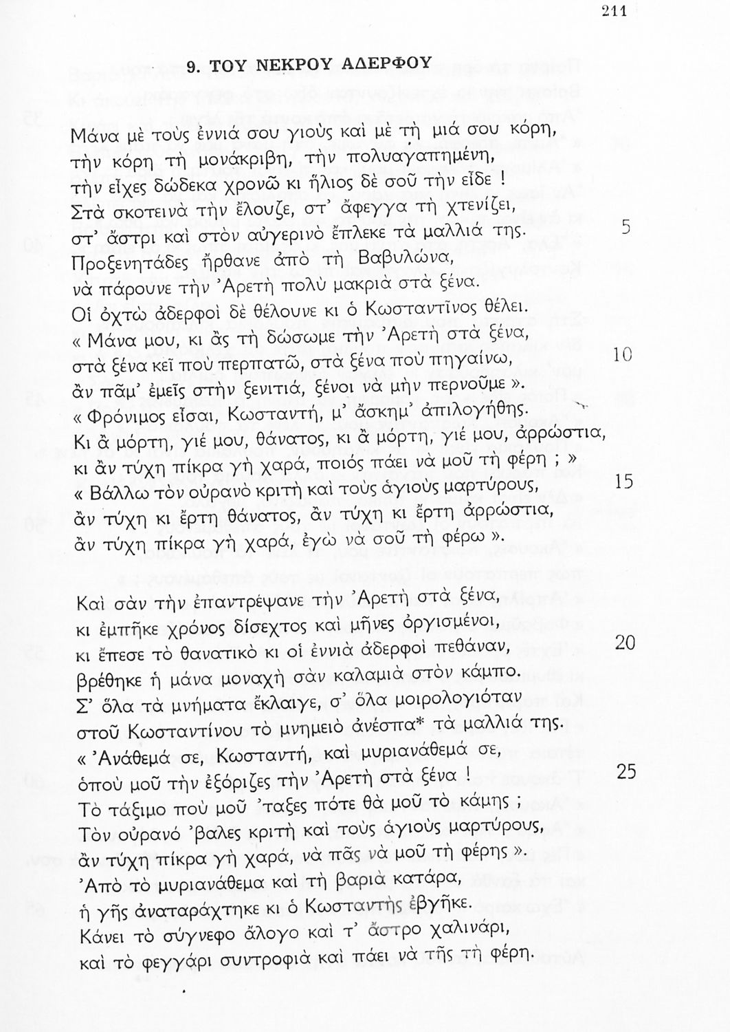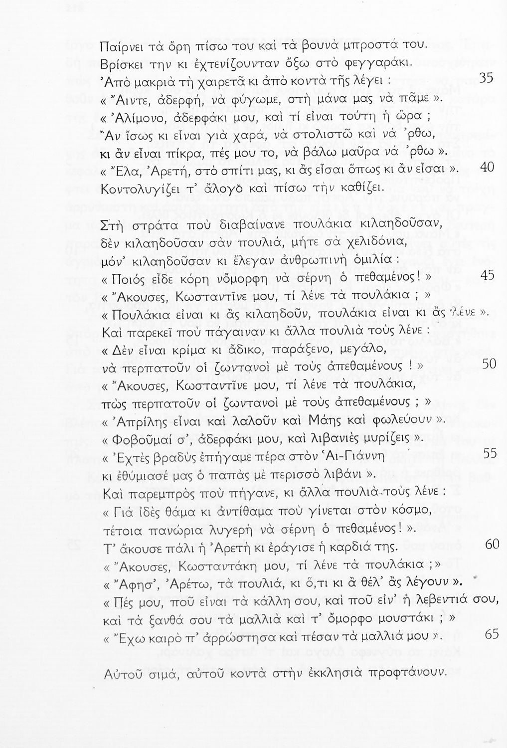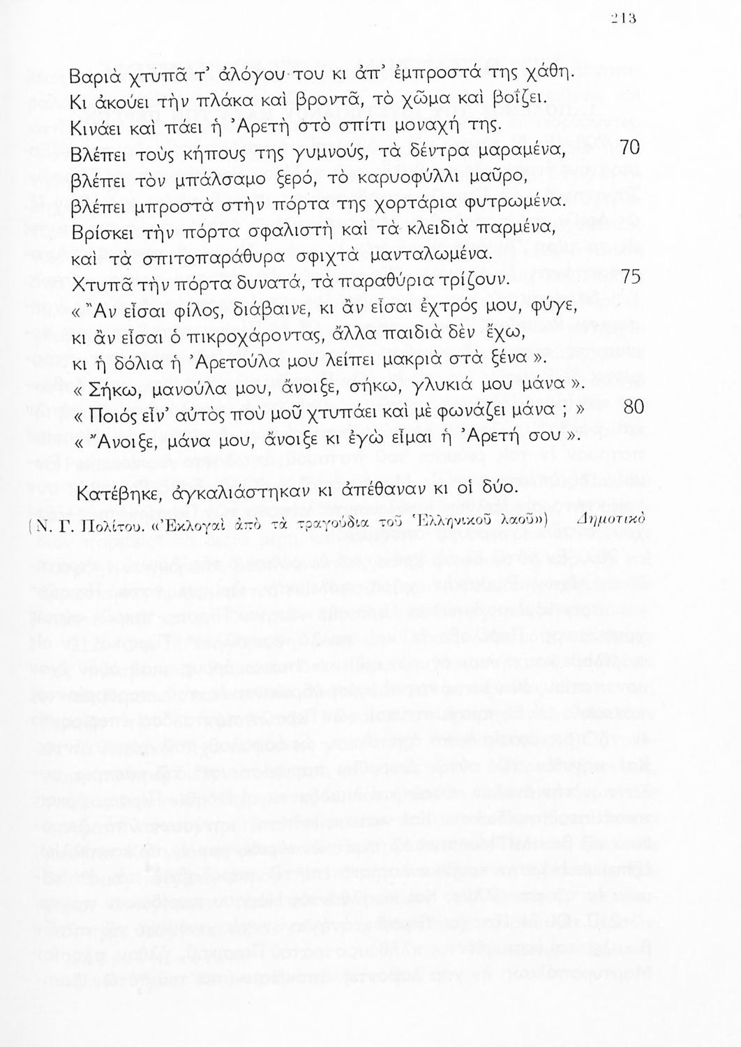 Σχολικό εγχειρίδιο Νέων Ελληνικών Δ΄ Γυμνασίου Θηλέων που περιλαμβάνει πεζά, ποιήματα και δημοτικά τραγούδια εμπνευσμένα από την σύγχρονη ελληνική ιστορία και την οικογενειακή και θρησκευτική ζωή. Περιέχει και