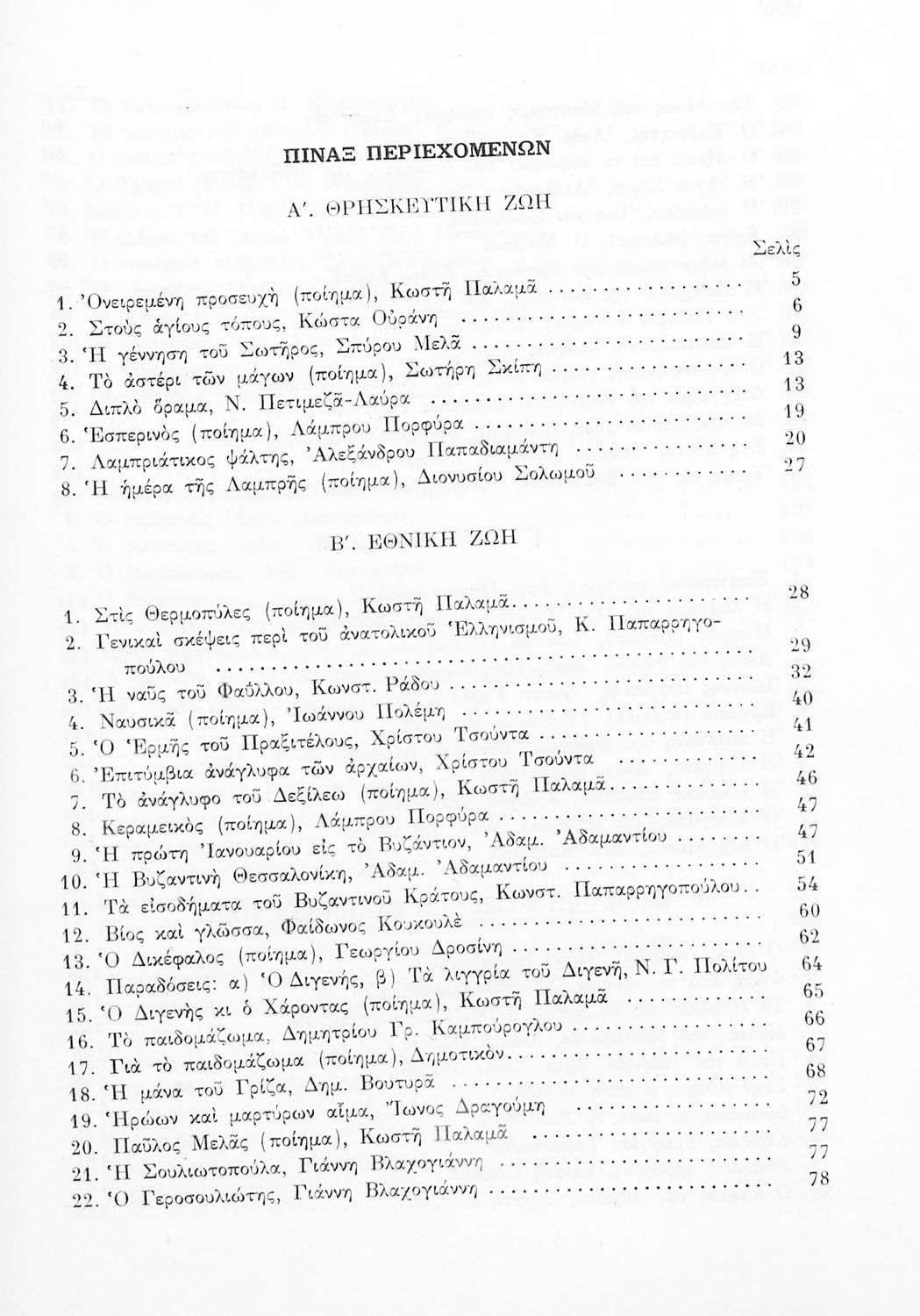 Σχολικό εγχειρίδιο Νέων Ελληνικών Δ΄ Γυμνασίου και Β΄ Αστικού Σχολείου που περιέχει πεζά και ποιήματα Ελλήνων συγγραφέων εμπνευσμένα από τη θρησκευτική και κοινωνική ζωή, την ελληνική μυθολογία, την αρχαία και