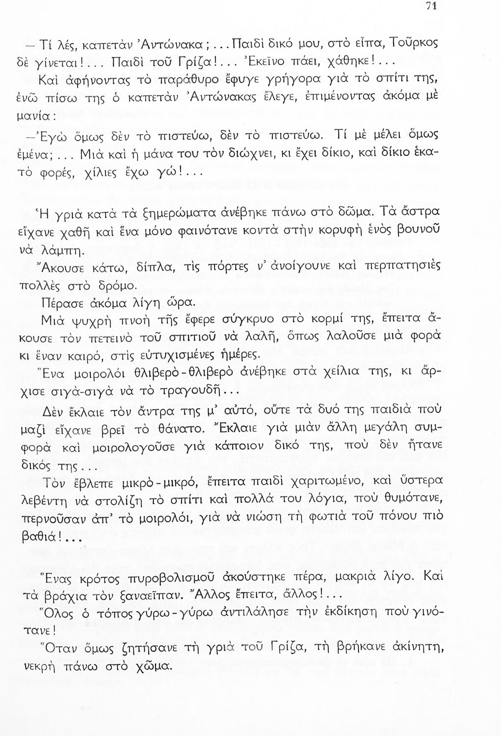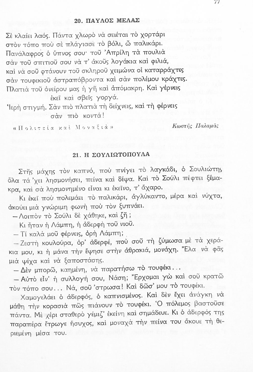 Σχολικό εγχειρίδιο Νέων Ελληνικών Δ΄ Γυμνασίου Θηλέων που περιλαμβάνει πεζά, ποιήματα και δημοτικά τραγούδια εμπνευσμένα από την σύγχρονη ελληνική ιστορία και την οικογενειακή και θρησκευτική ζωή. Περιέχει και