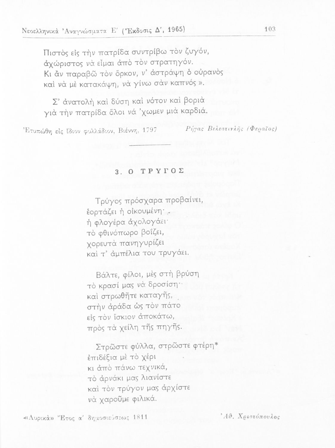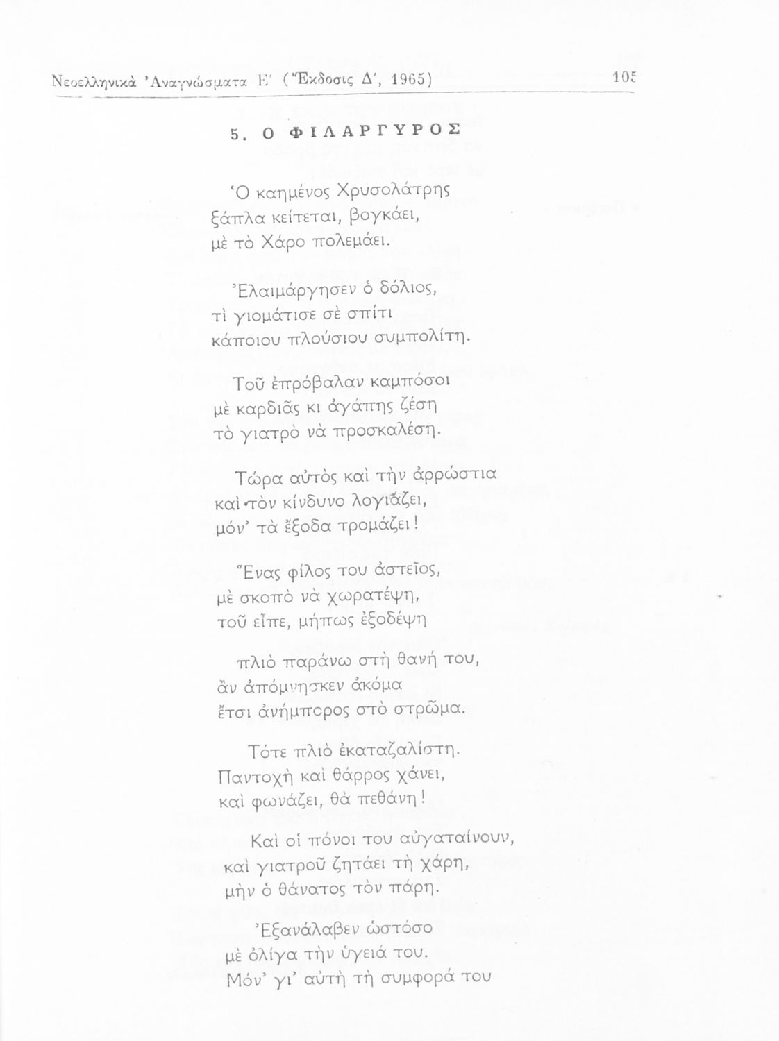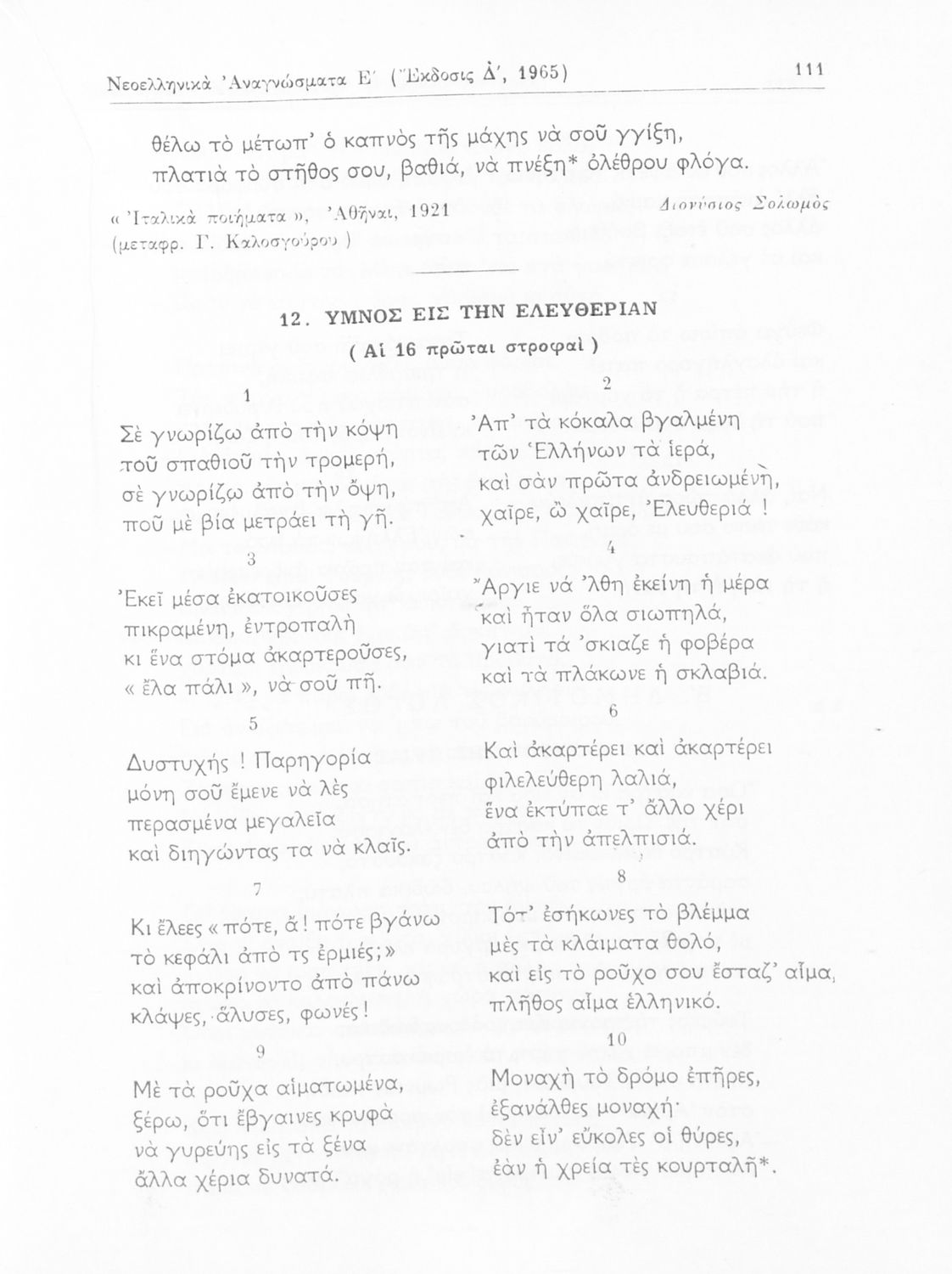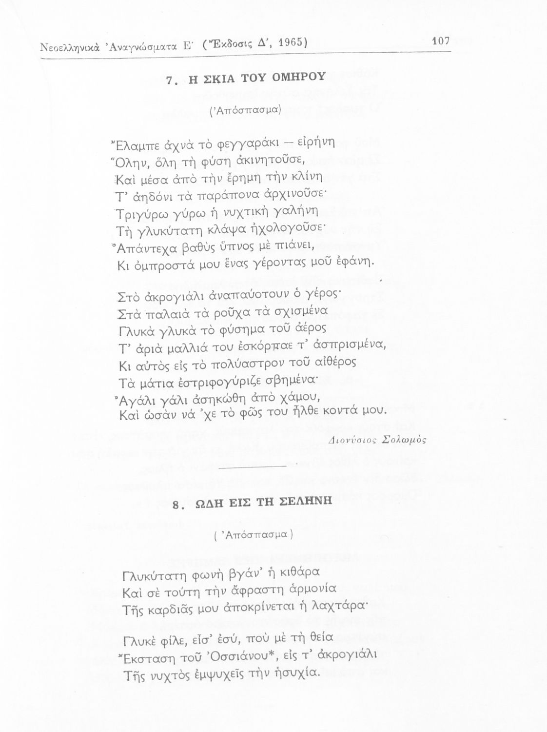 Σχολικό εγχειρίδιο Νέων Ελληνικών Ε΄ Γυμνασίου που περιέχει πεζά και ποιήματα συγγραφέων της βυζαντινής και μεταβυζαντινής περιόδου πατριωτικού και θρησκευτικού περιεχομένου. Περιλαμβάνει και πεζά και ποιήματα