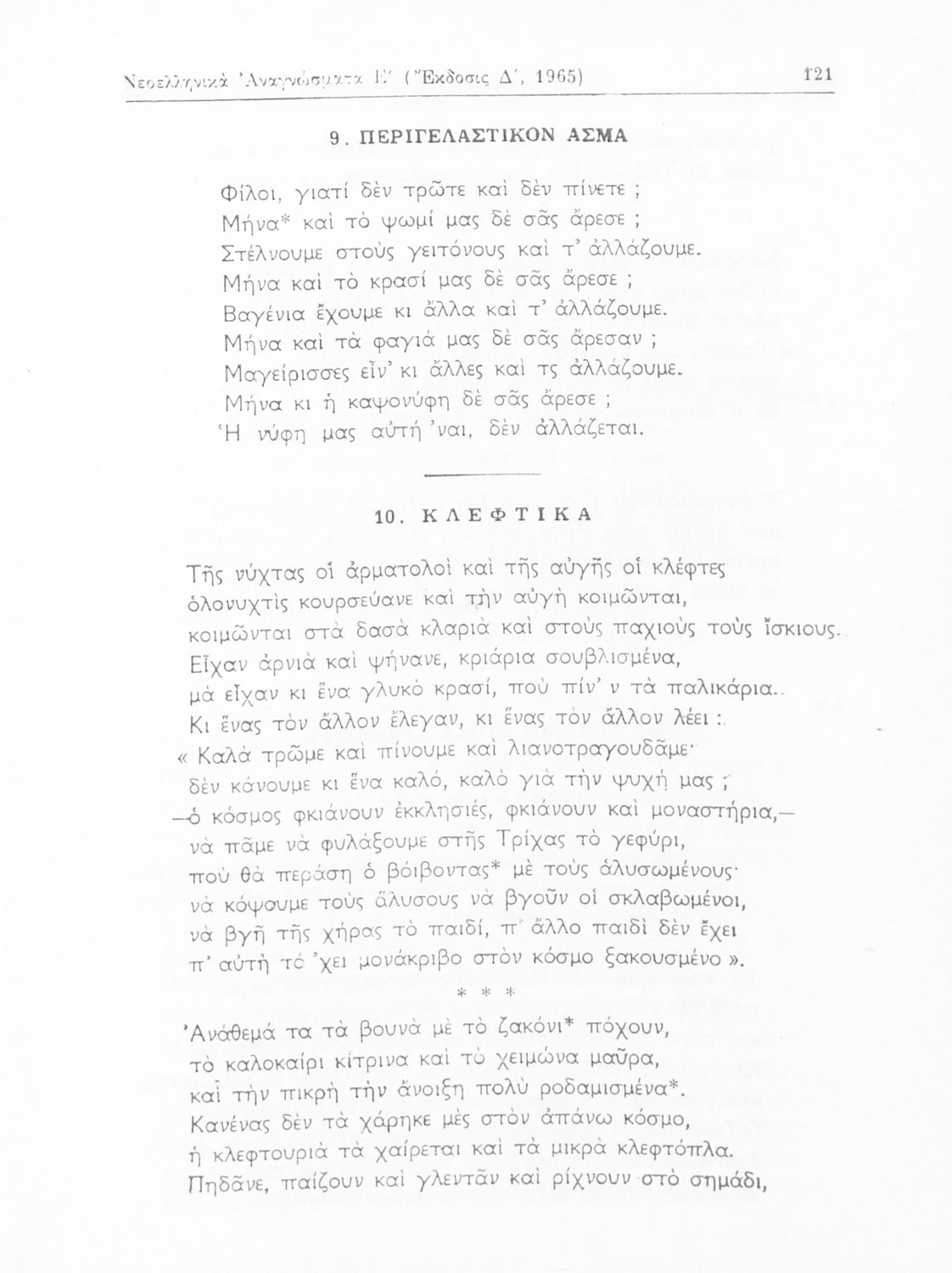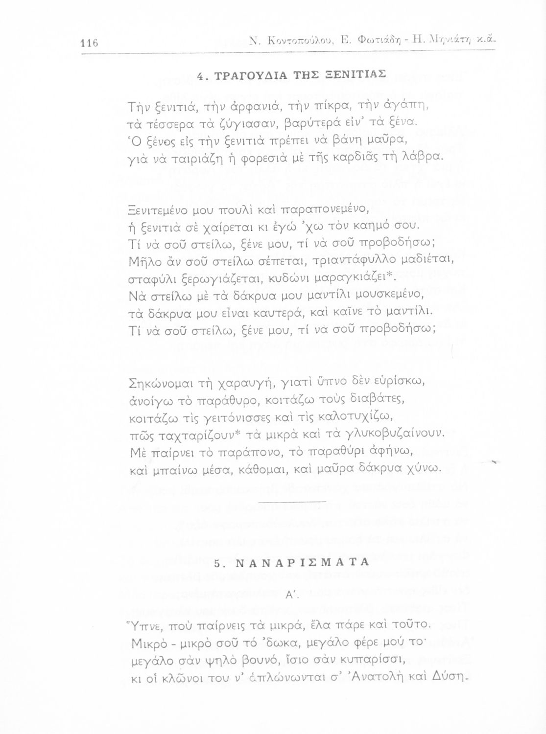 Σχολικό εγχειρίδιο Νέων Ελληνικών Ε΄ Γυμνασίου που περιλαμβάνει κείμενα Ελλήνων συγγραφέων και δημοτικά τραγούδια με θέματα από την σύγχρονη ελληνική ιστορία, τη θρησκευτική παράδοση, την οικογενειακή ζωή, και