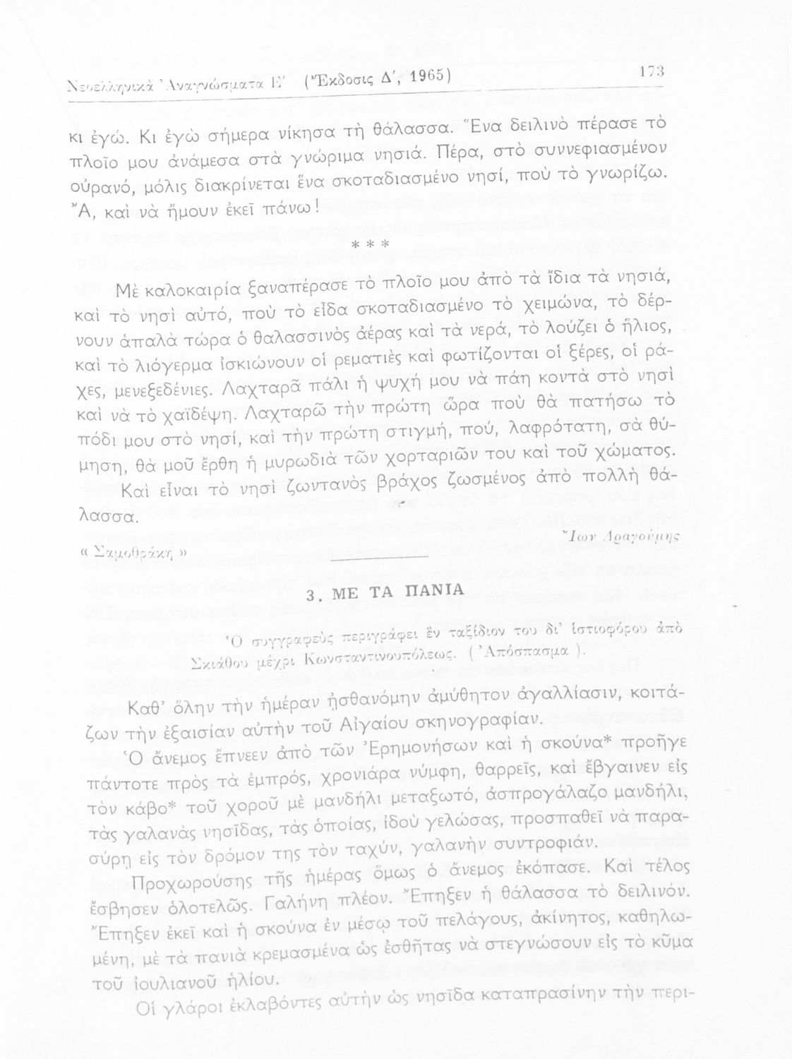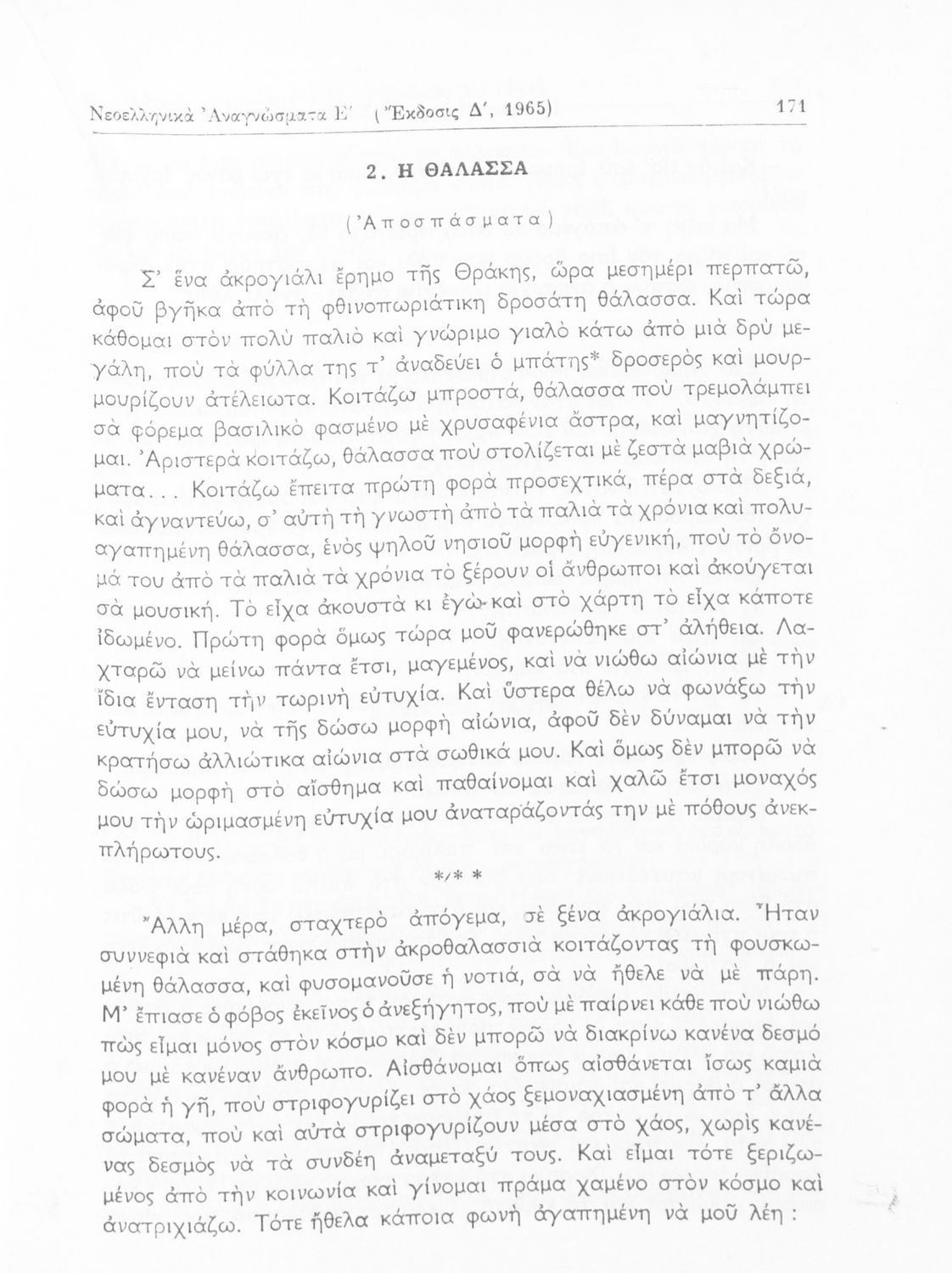 Σχολικό εγχειρίδιο της Ε΄ Γυμνασίου για το μάθημα των Νέων Ελληνικών. Περιέχει πεζά και ποιήματα από Ελλήνων και ξένων λογοτεχνών από τις συλλογές των συγγραφέων. Διαθέτει λεξικό και σύντομα βιογραφικά στοιχεία των Λογοτεχνών.