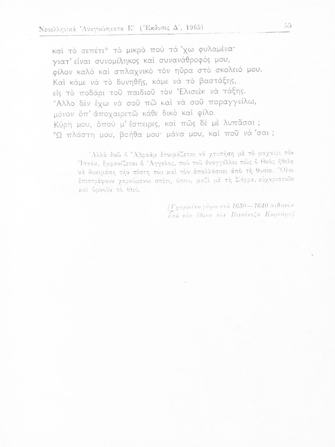 Σχολικό εγχειρίδιο Νέων Ελληνικών Ε΄ Γυμνασίου που περιέχει πεζά και ποιήματα συγγραφέων της βυζαντινής και μεταβυζαντινής περιόδου πατριωτικού και θρησκευτικού περιεχομένου. Περιλαμβάνει και πεζά και ποιήματα