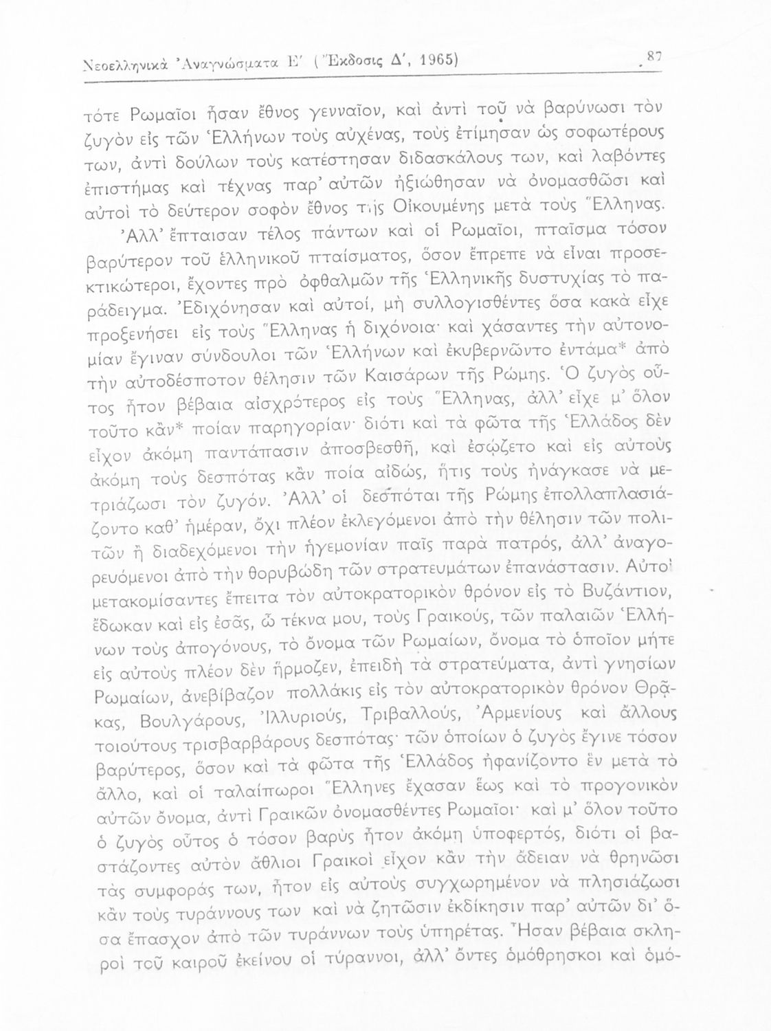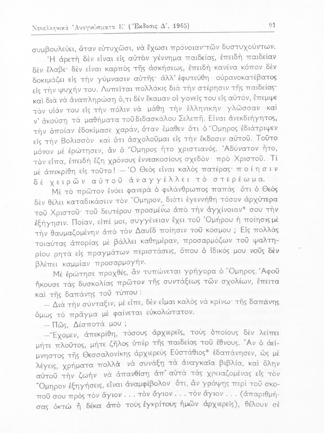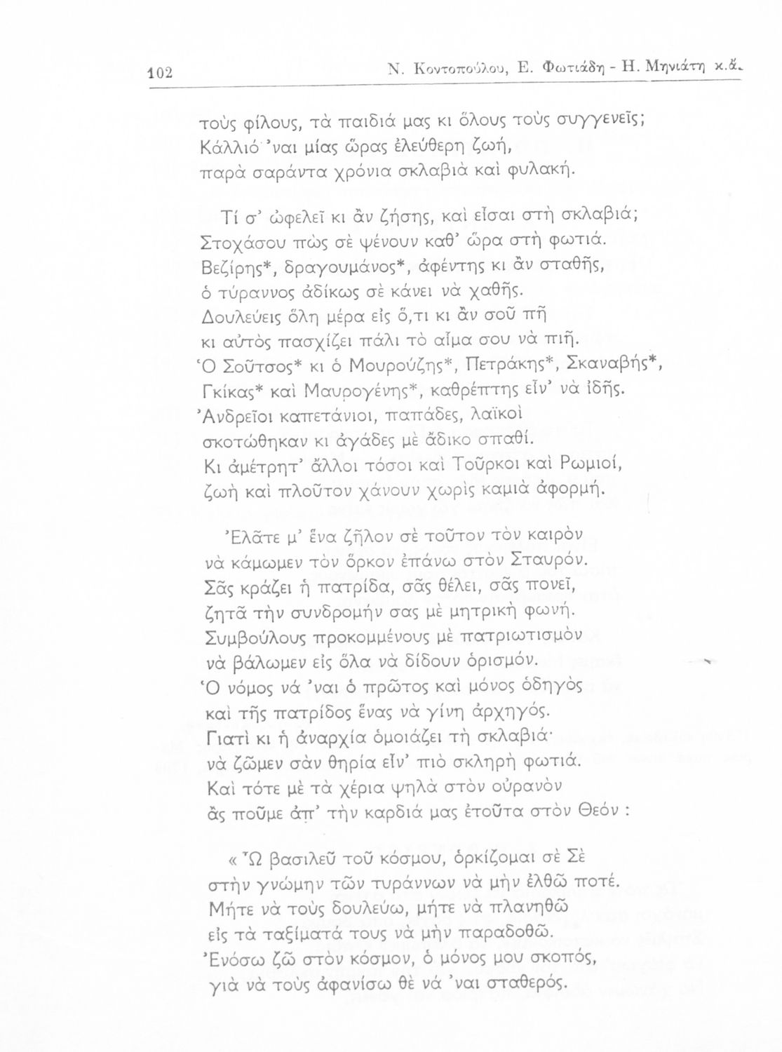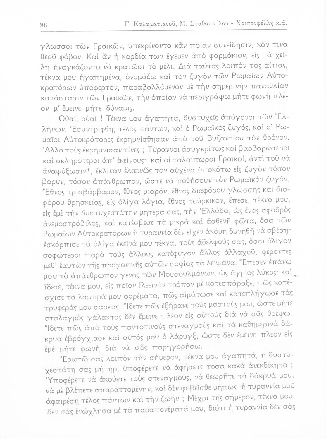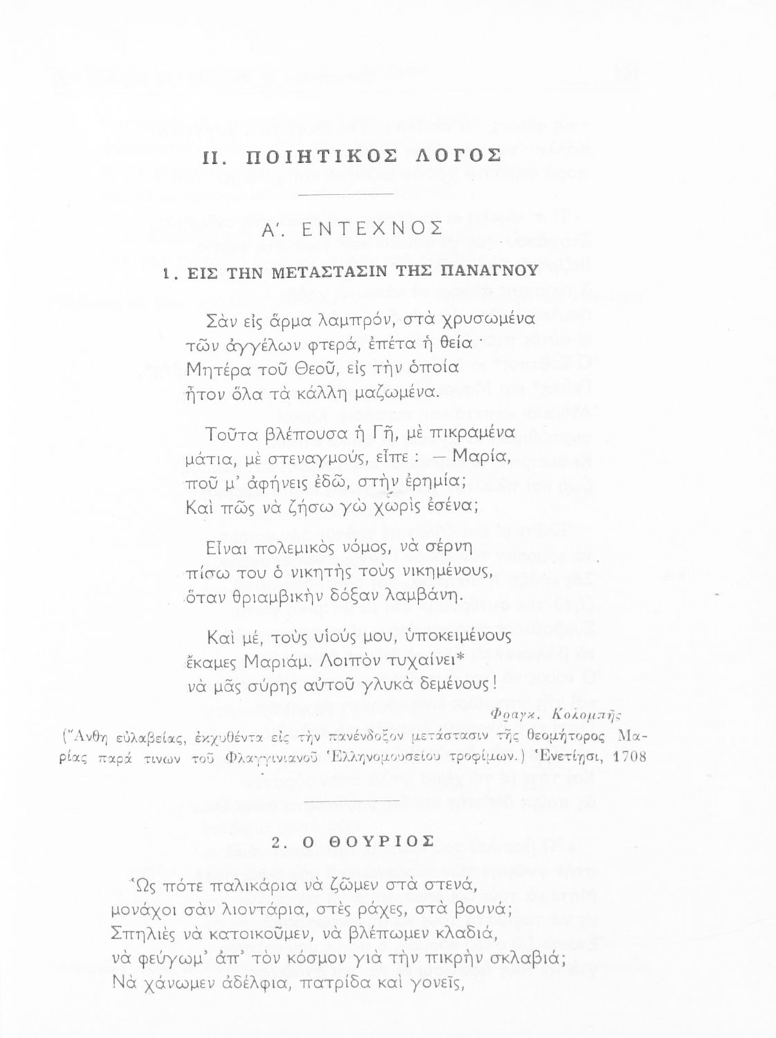 Σχολικό εγχειρίδιο Νέων Ελληνικών Ε΄ Γυμνασίου που περιέχει πεζά και ποιήματα συγγραφέων της βυζαντινής και μεταβυζαντινής περιόδου πατριωτικού και θρησκευτικού περιεχομένου. Περιλαμβάνει και πεζά και ποιήματα