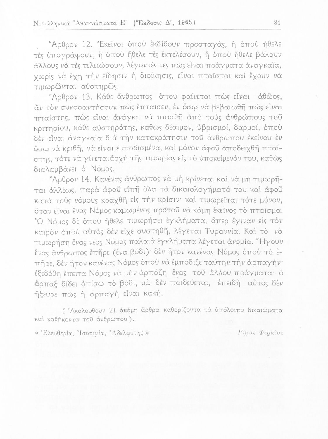 Υπουργική απόφαση / Σύμβαση: 70/9/11-10-1965