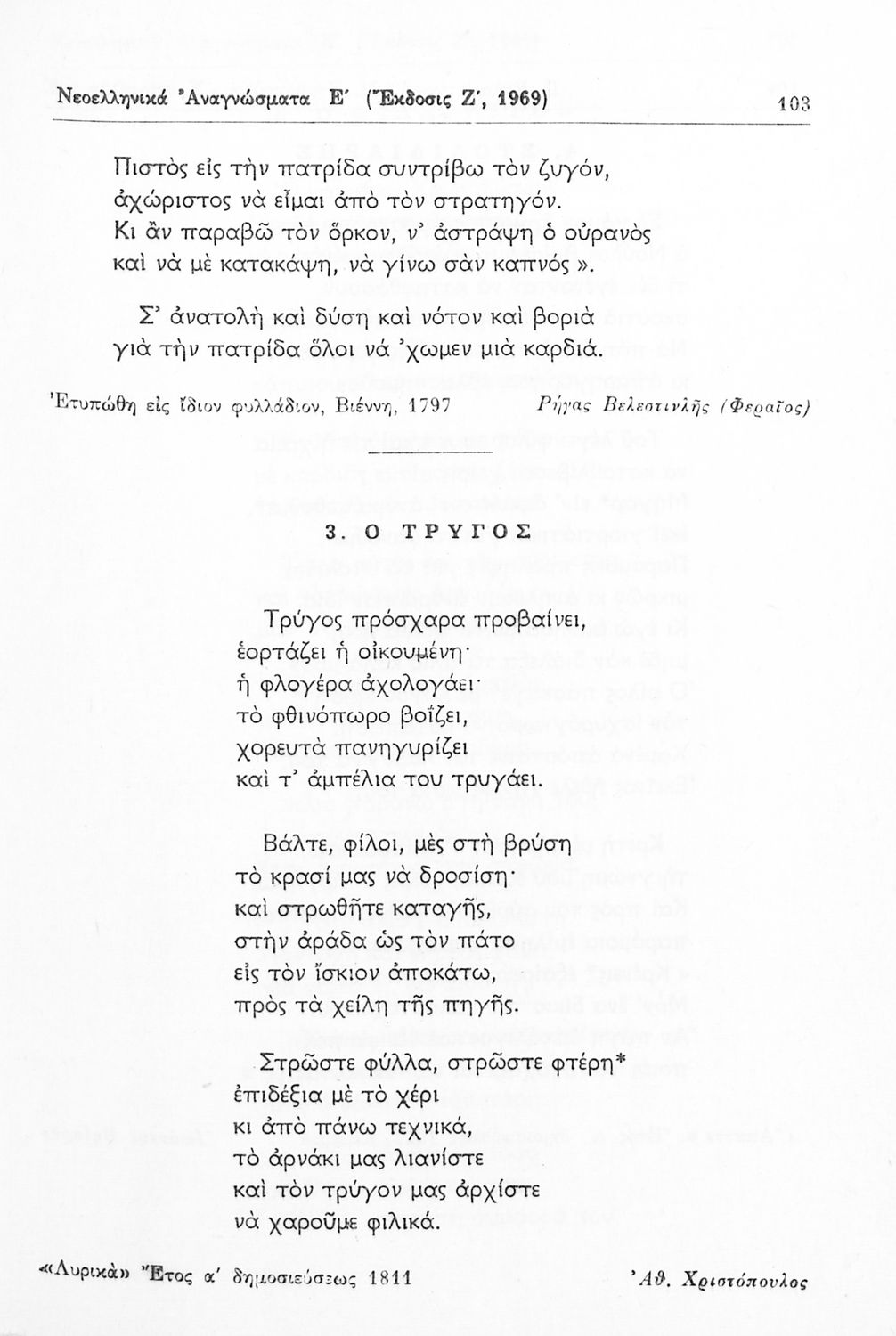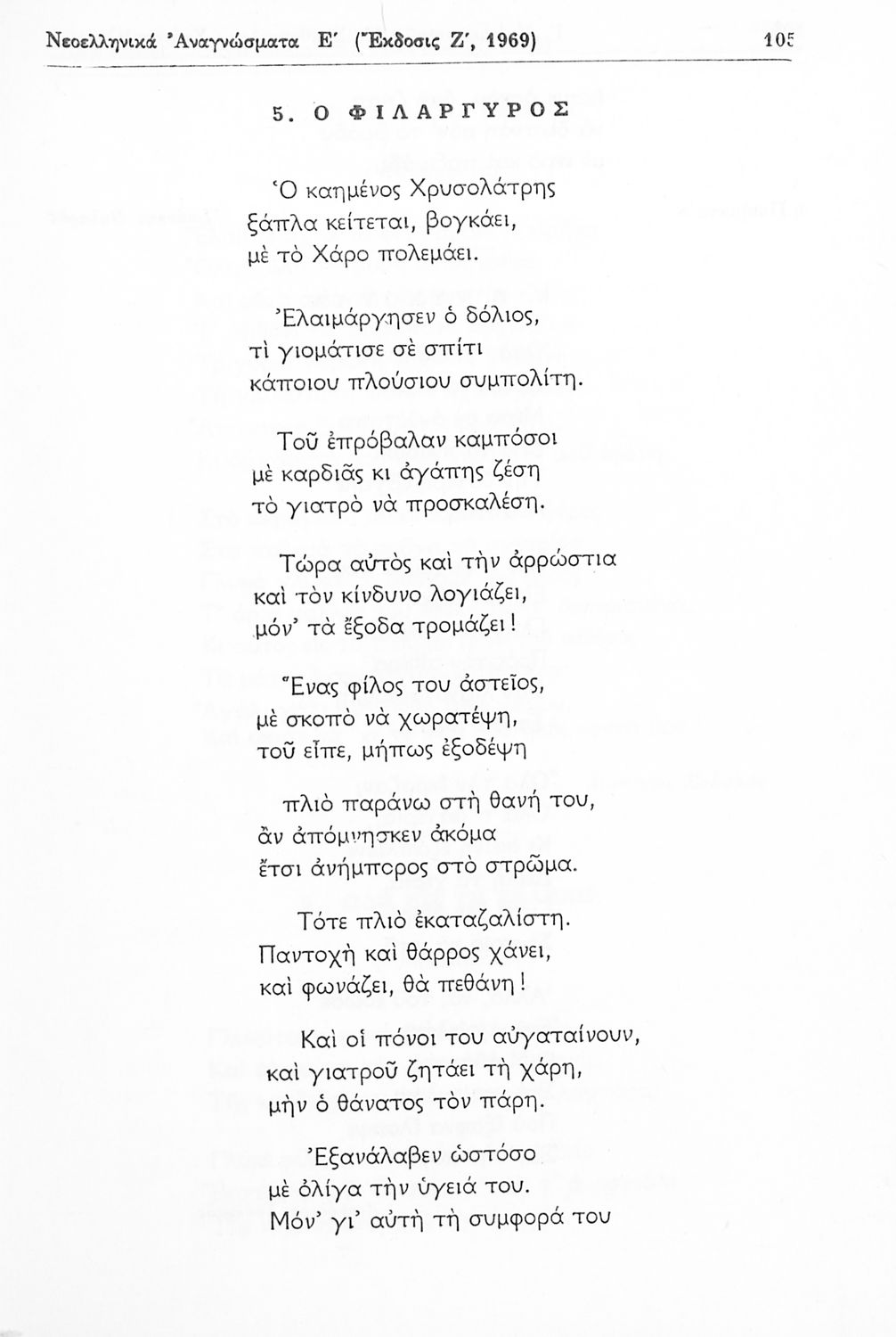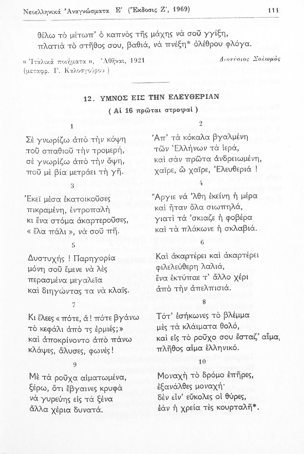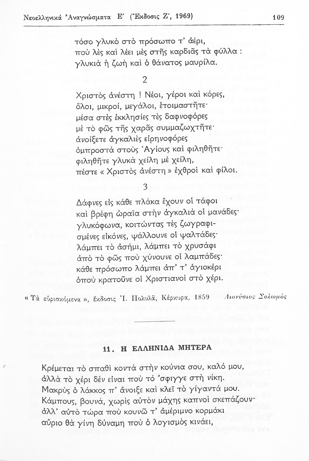 Σχολικό εγχειρίδιο Νέων Ελληνικών Ε΄ Γυμνασίου που περιέχει πεζά και ποιήματα συγγραφέων της βυζαντινής και μεταβυζαντινής περιόδου πατριωτικού και θρησκευτικού περιεχομένου. Περιλαμβάνει και πεζά και ποιήματα
