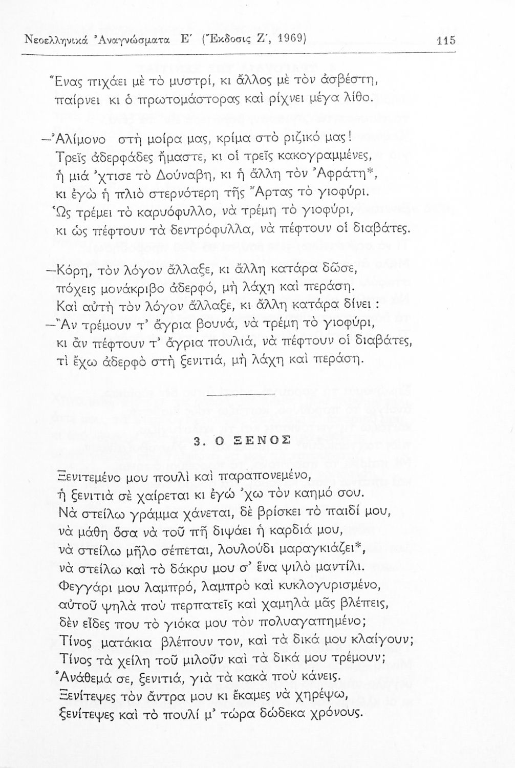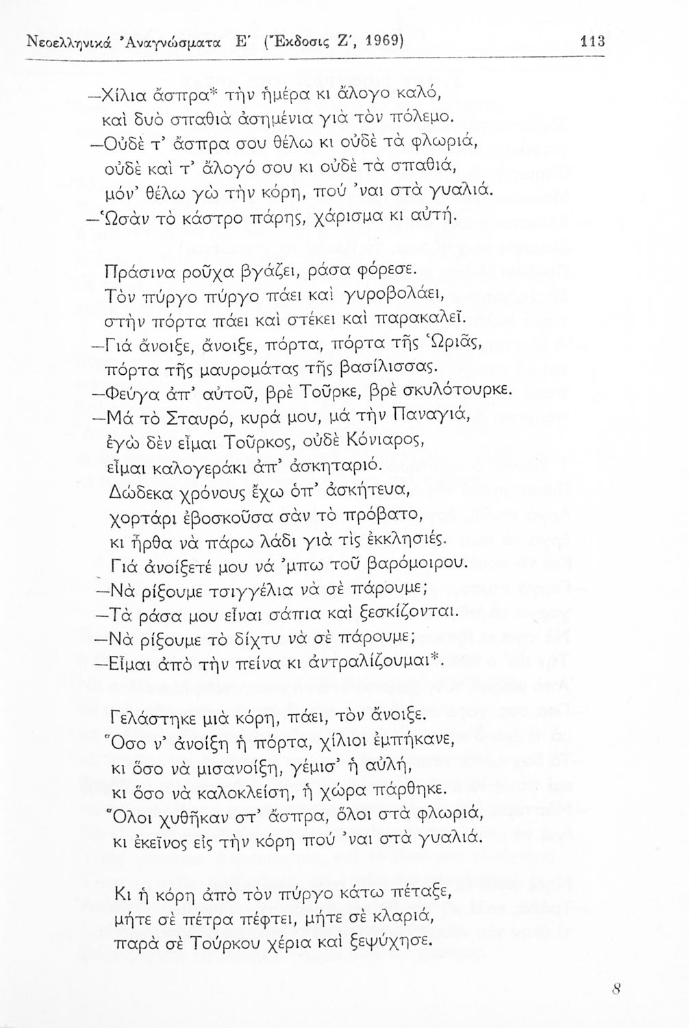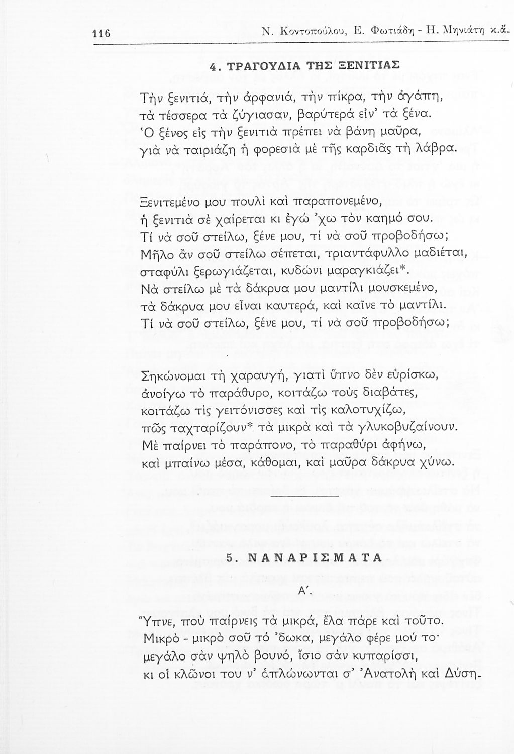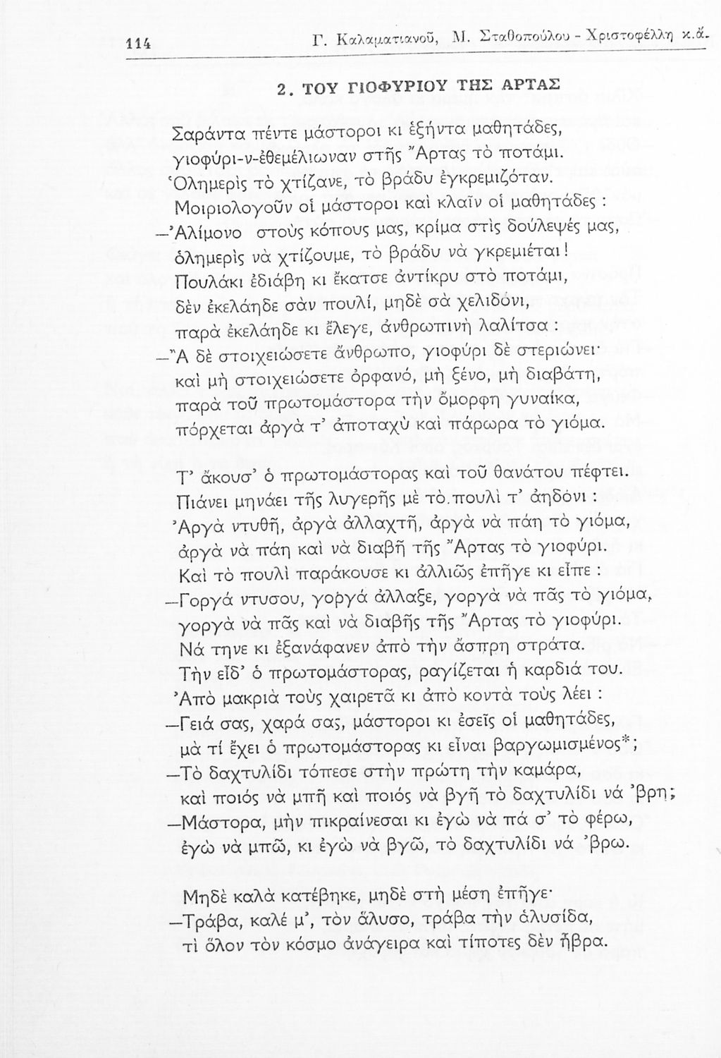 Σχολικό εγχειρίδιο Νέων Ελληνικών Ε΄ Γυμνασίου που περιλαμβάνει κείμενα Ελλήνων συγγραφέων και δημοτικά τραγούδια με θέματα από την σύγχρονη ελληνική ιστορία, τη θρησκευτική παράδοση, την οικογενειακή ζωή, και